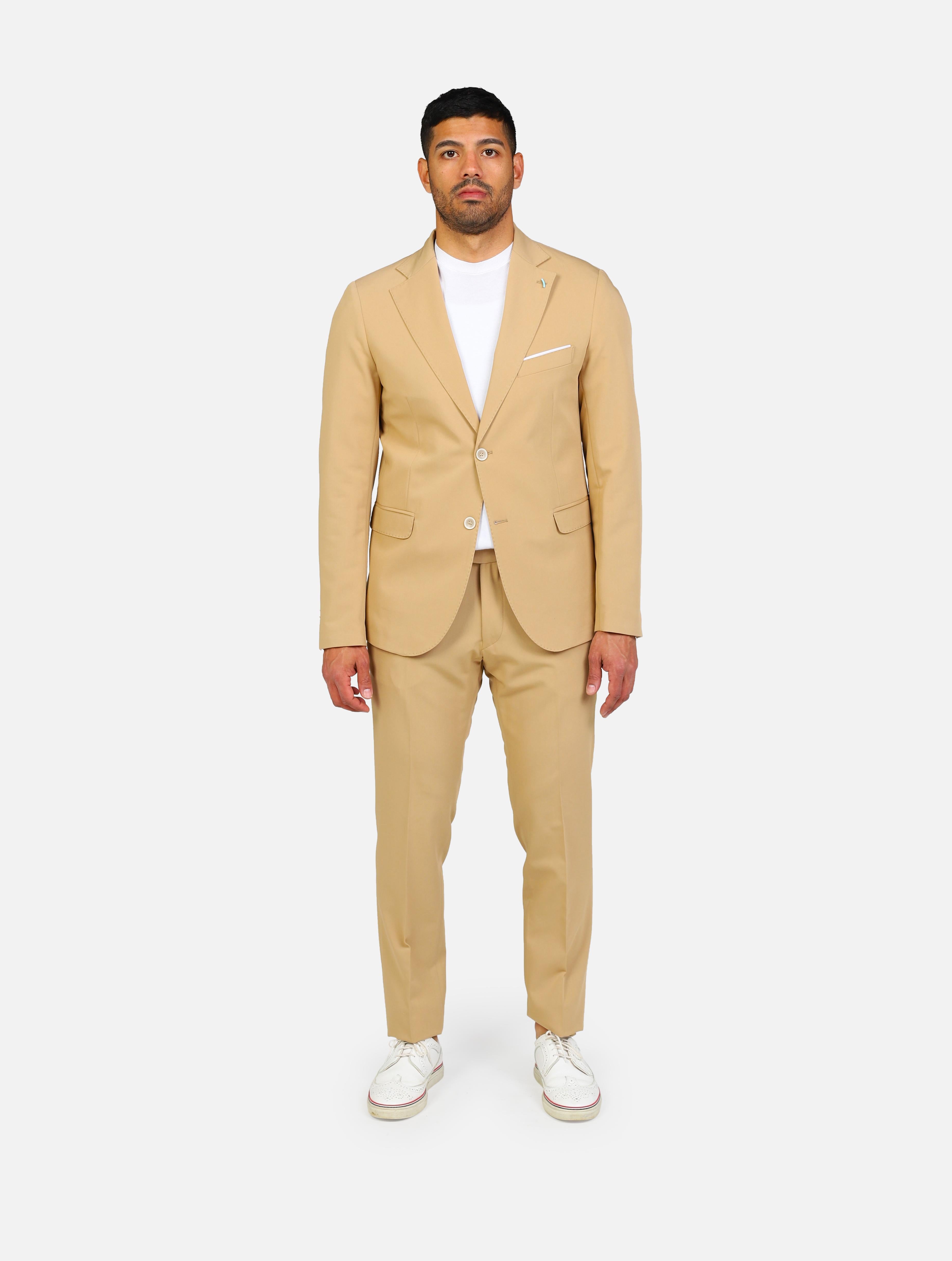 Art oc1s2s5a05: abito con giacca due bottoni tasche filetto cammello man