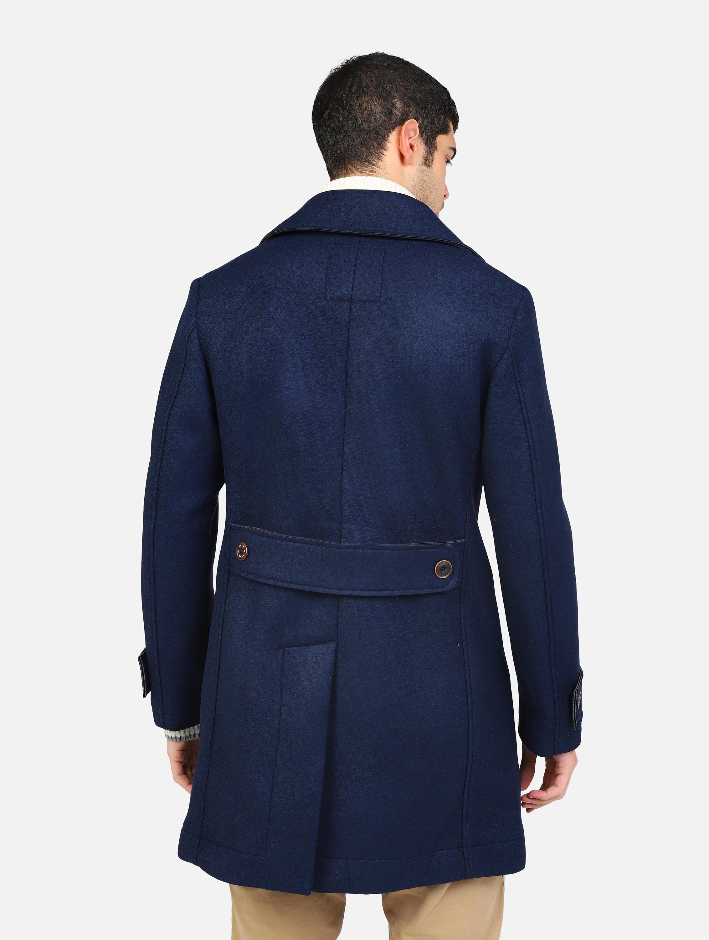 Cappotto doppio petto con tasche a taglio e logo sul colletto blu navy man