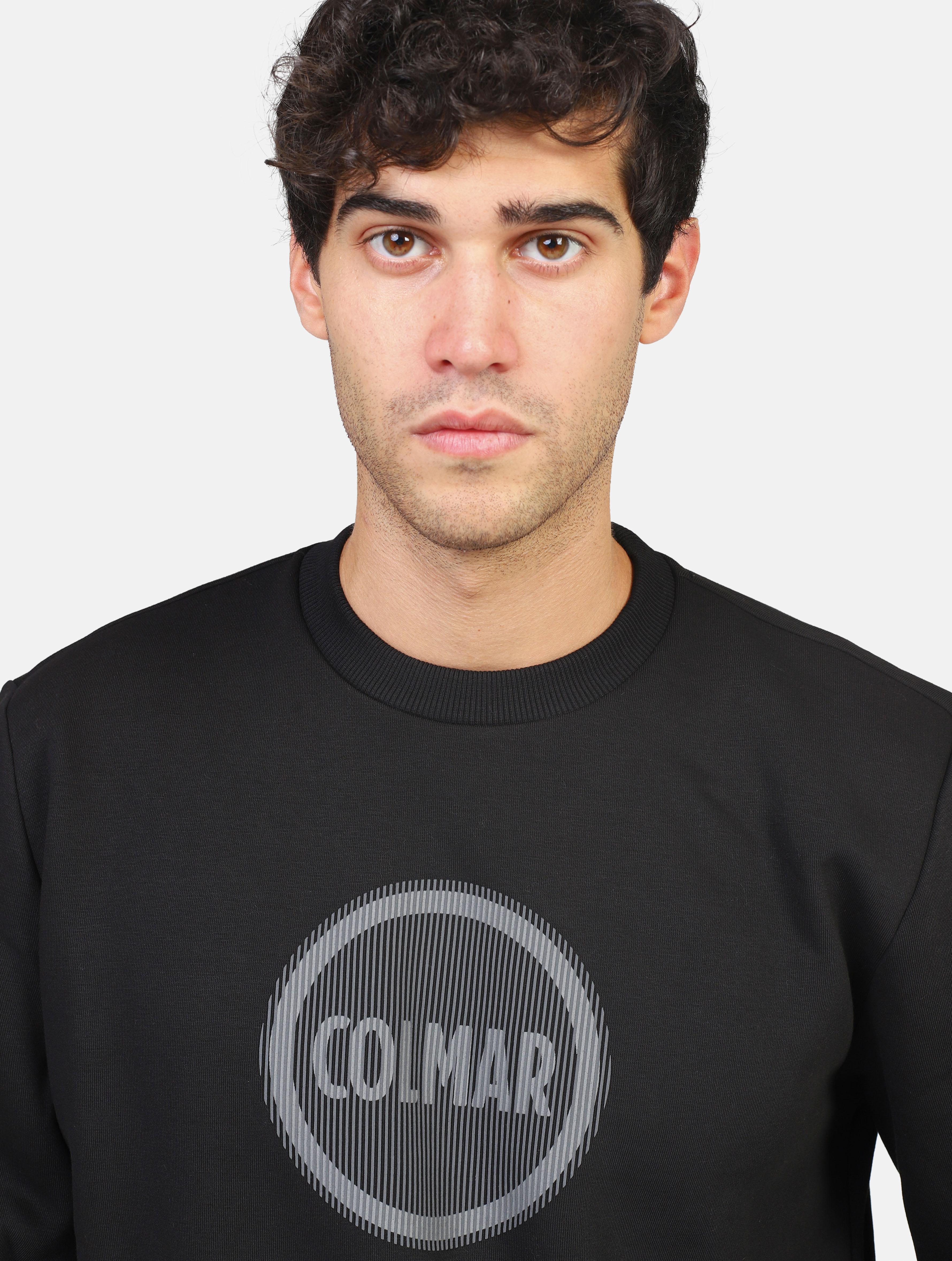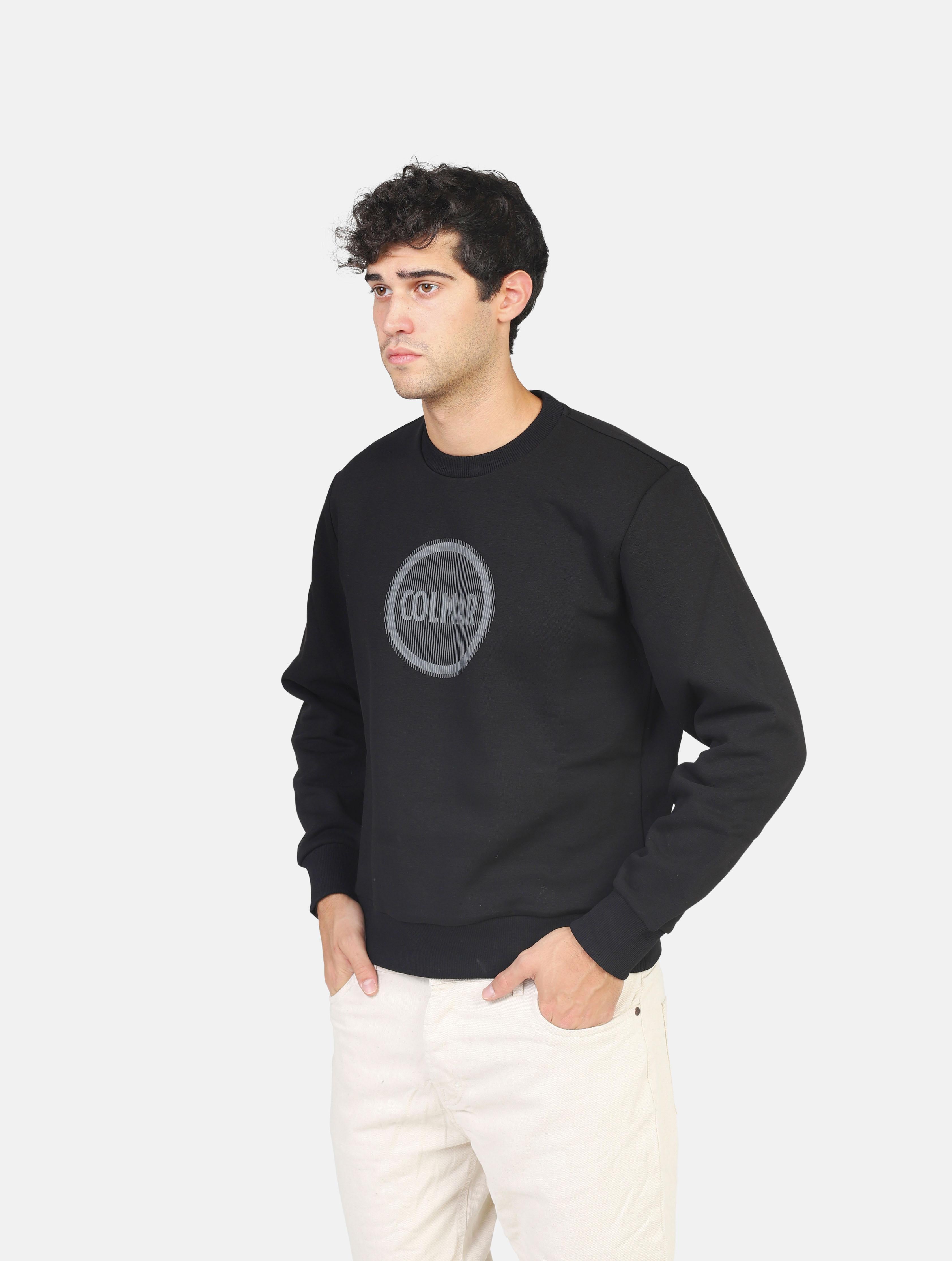 felpa paricollo a costine con logo in rilievo sul petto a maniche lunghe con polsini e balza a costine