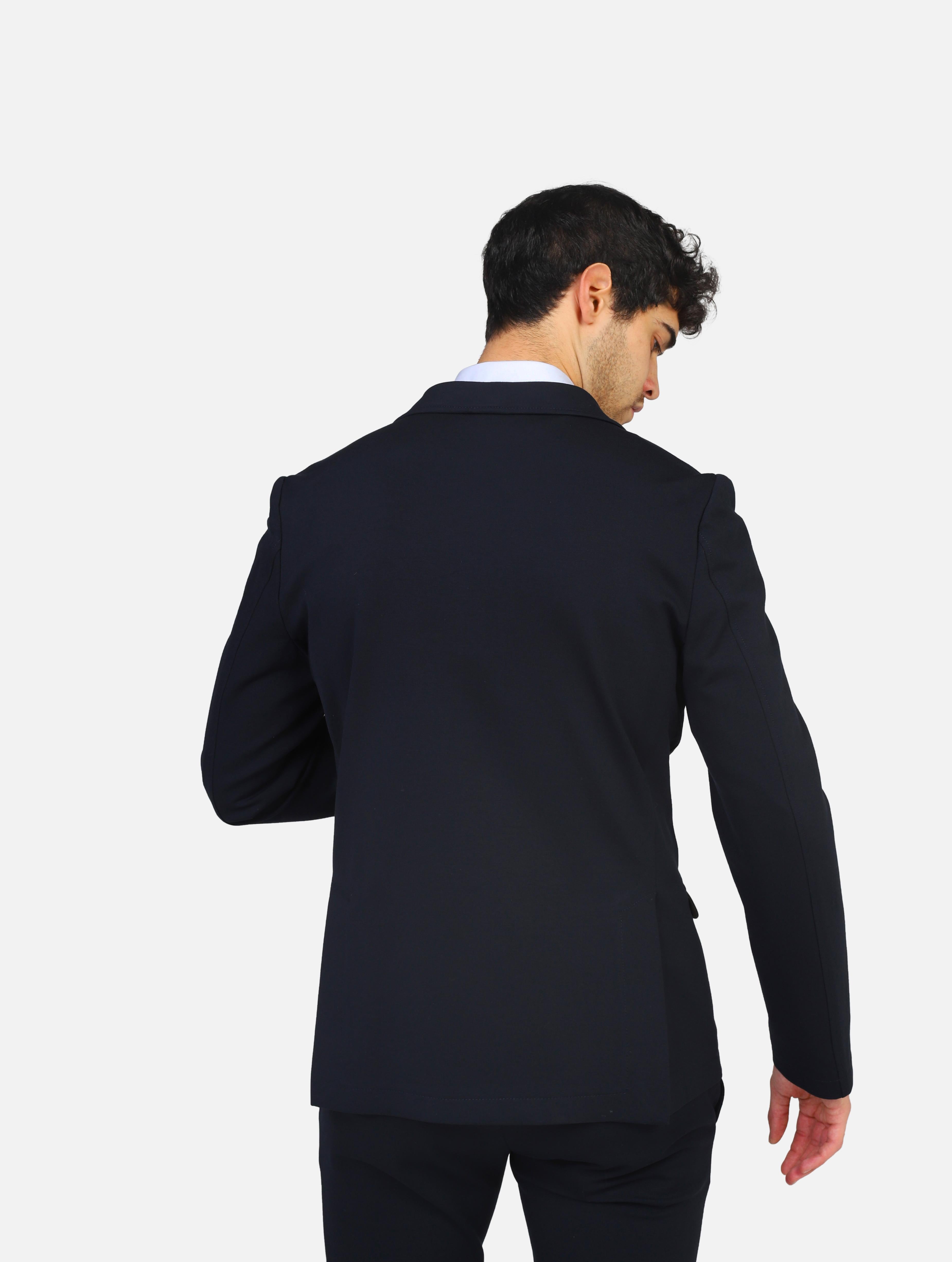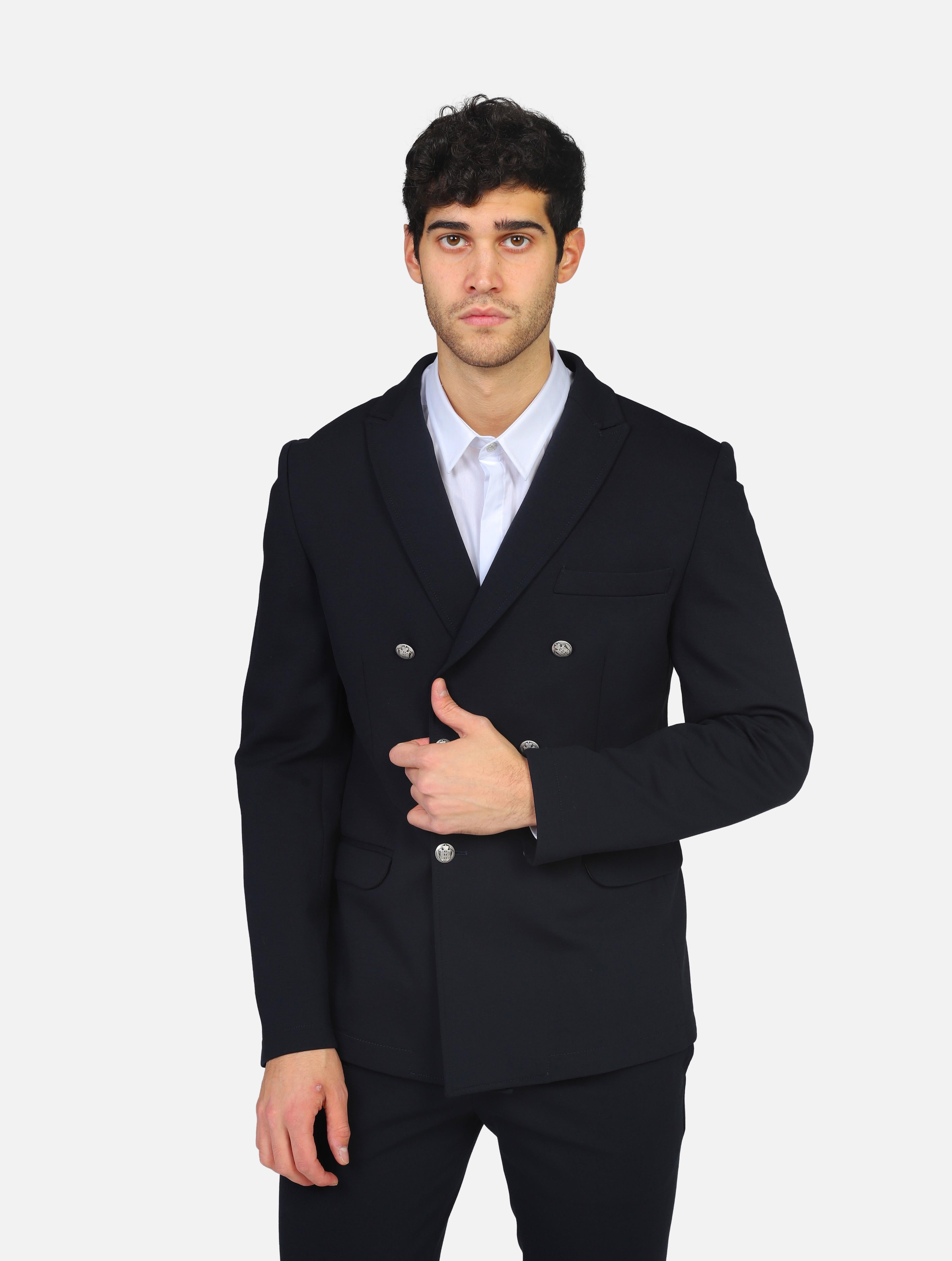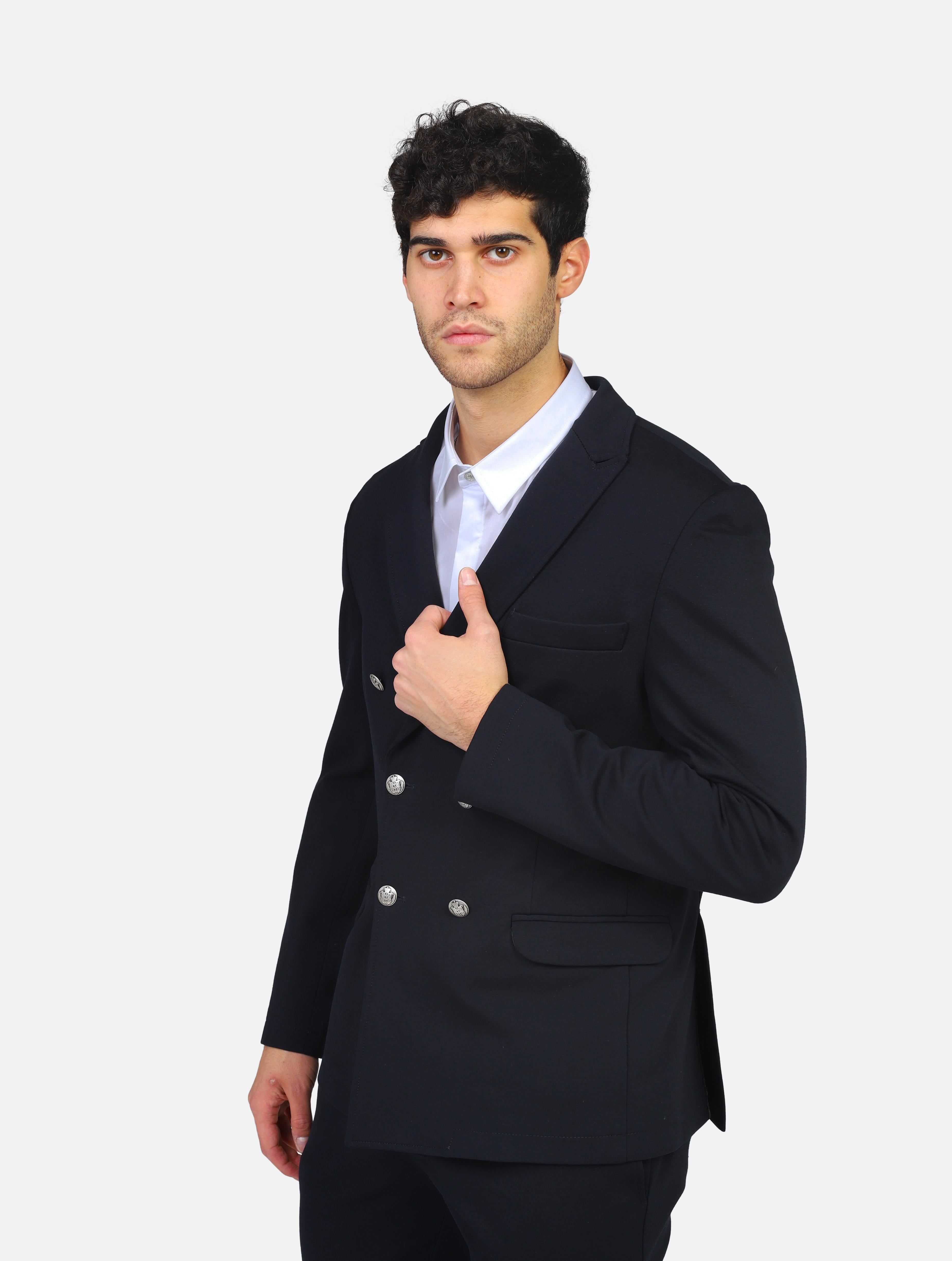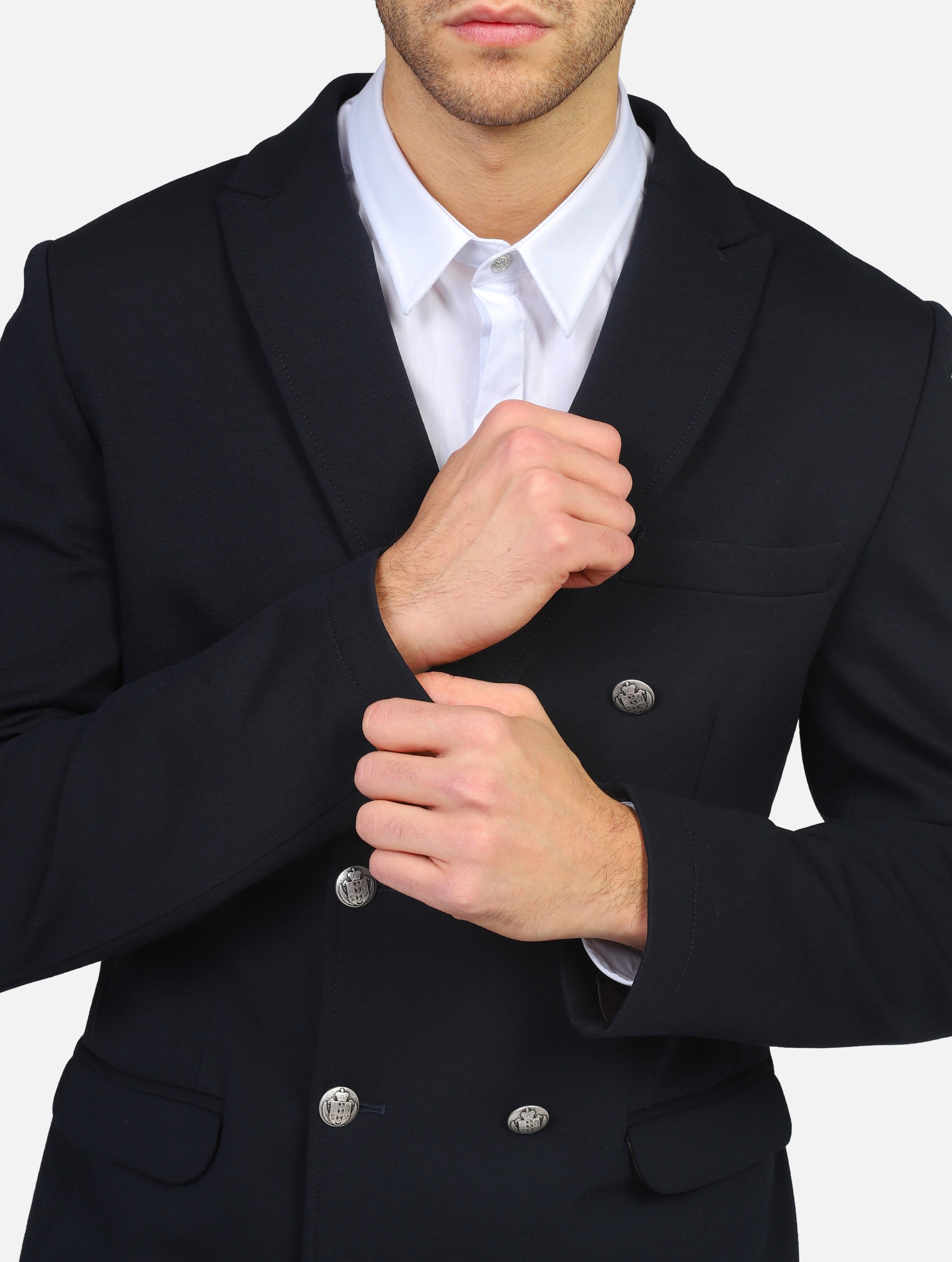 Giacca doppiopetto, bottoni con stemma e due tasche con flap
