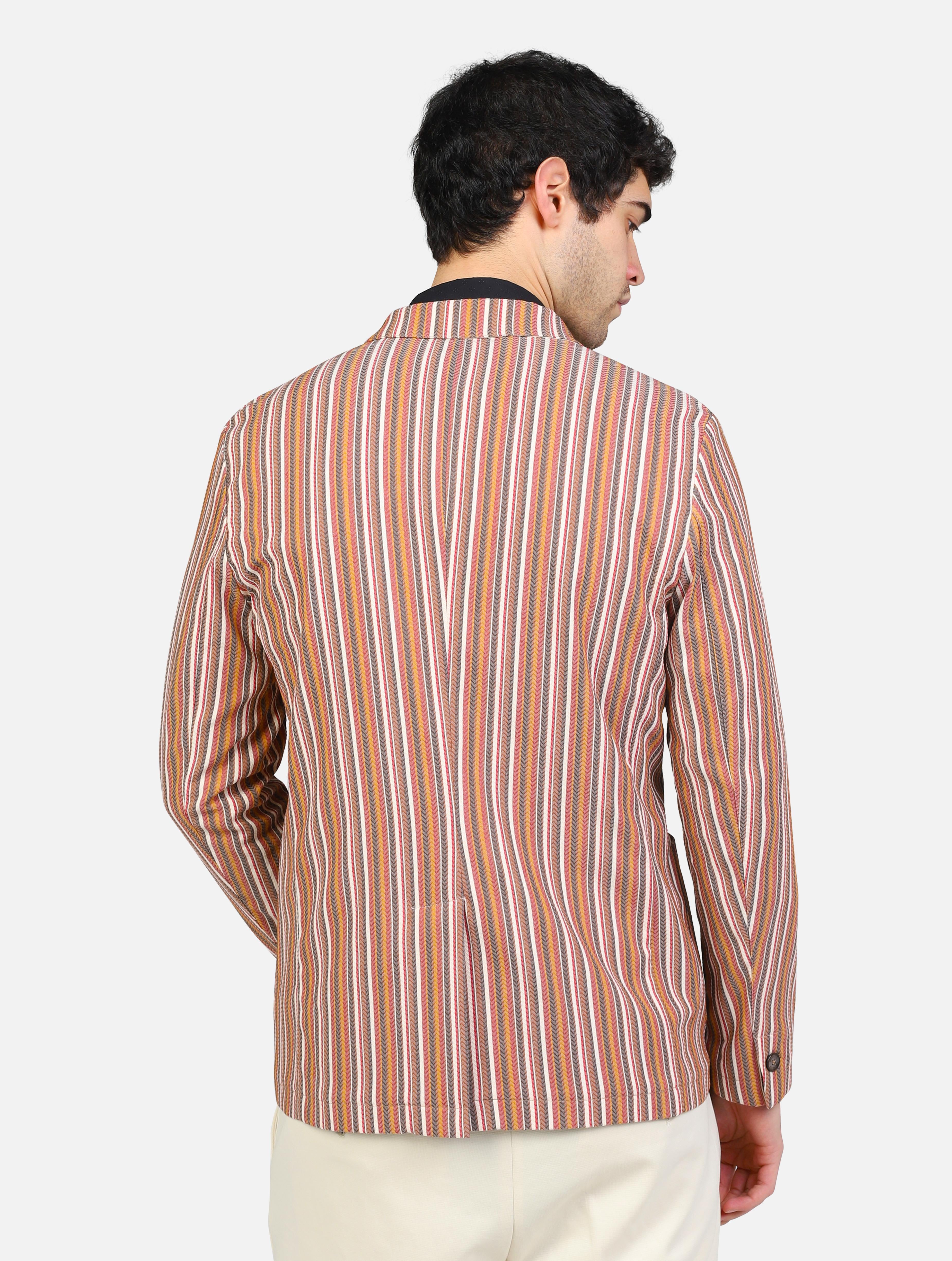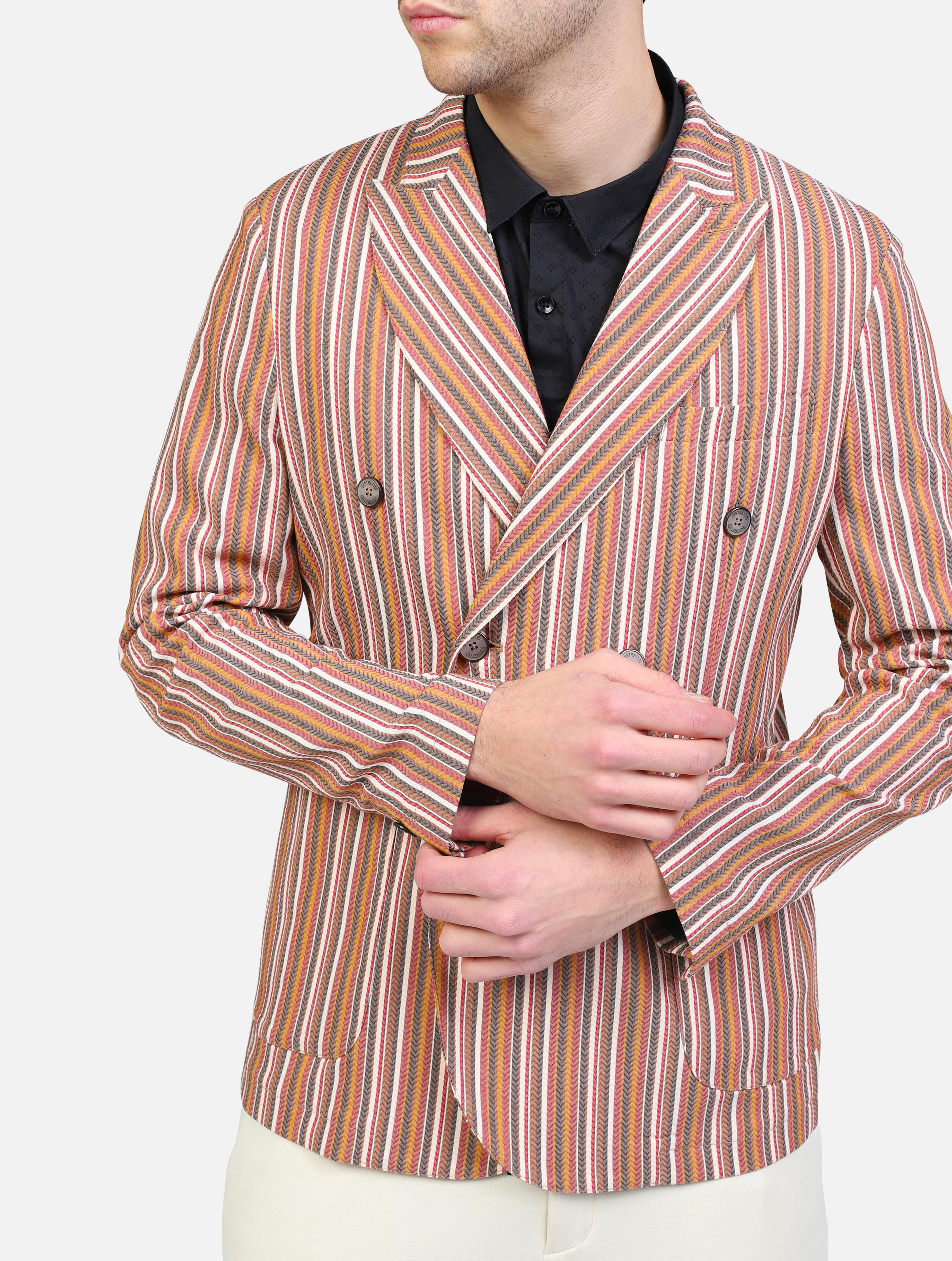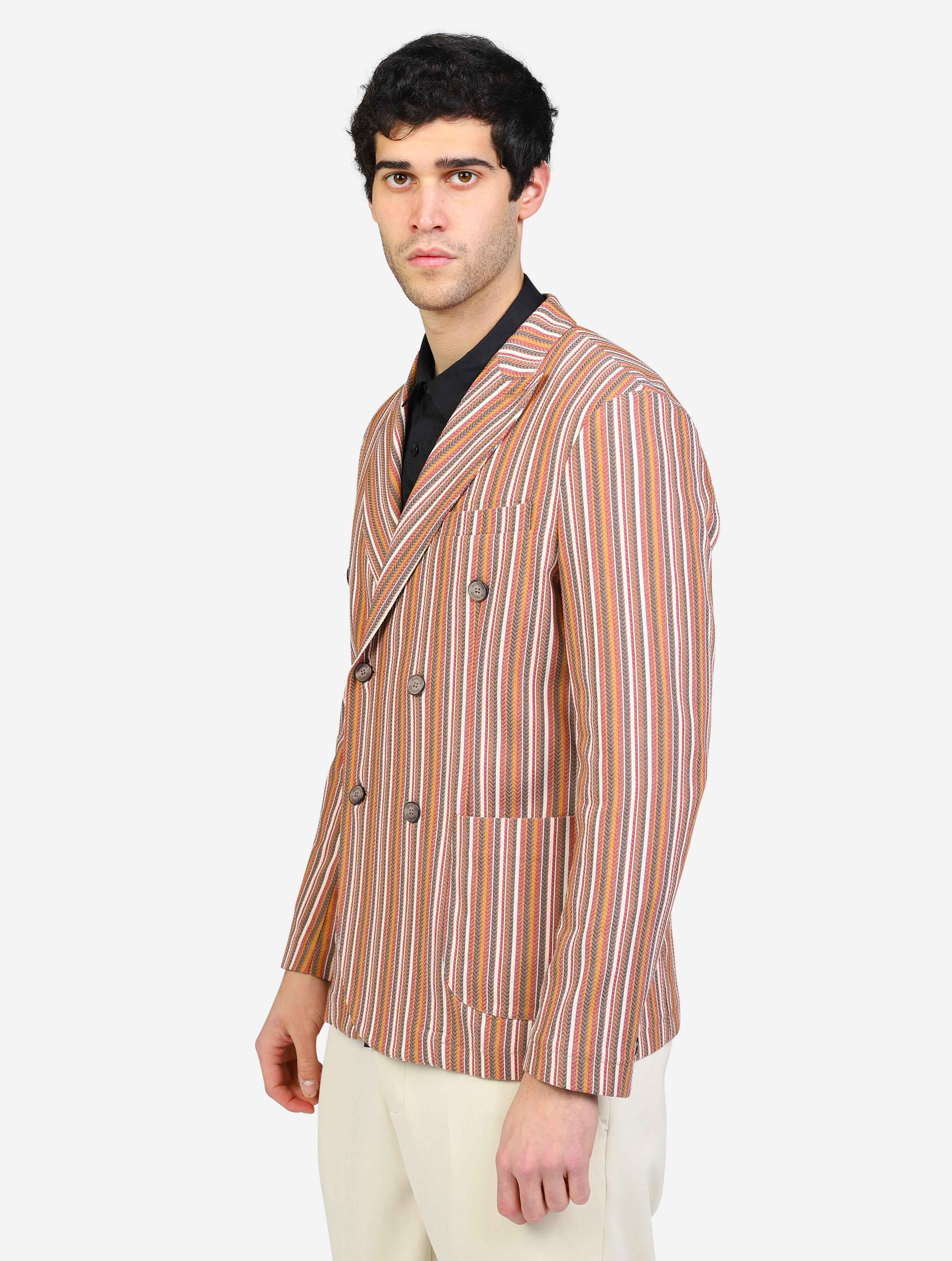 Giacca doppio petto con fantasia a righe verticali, doppia tasca e taschino white orange man