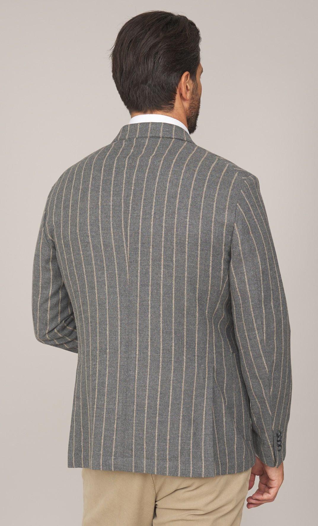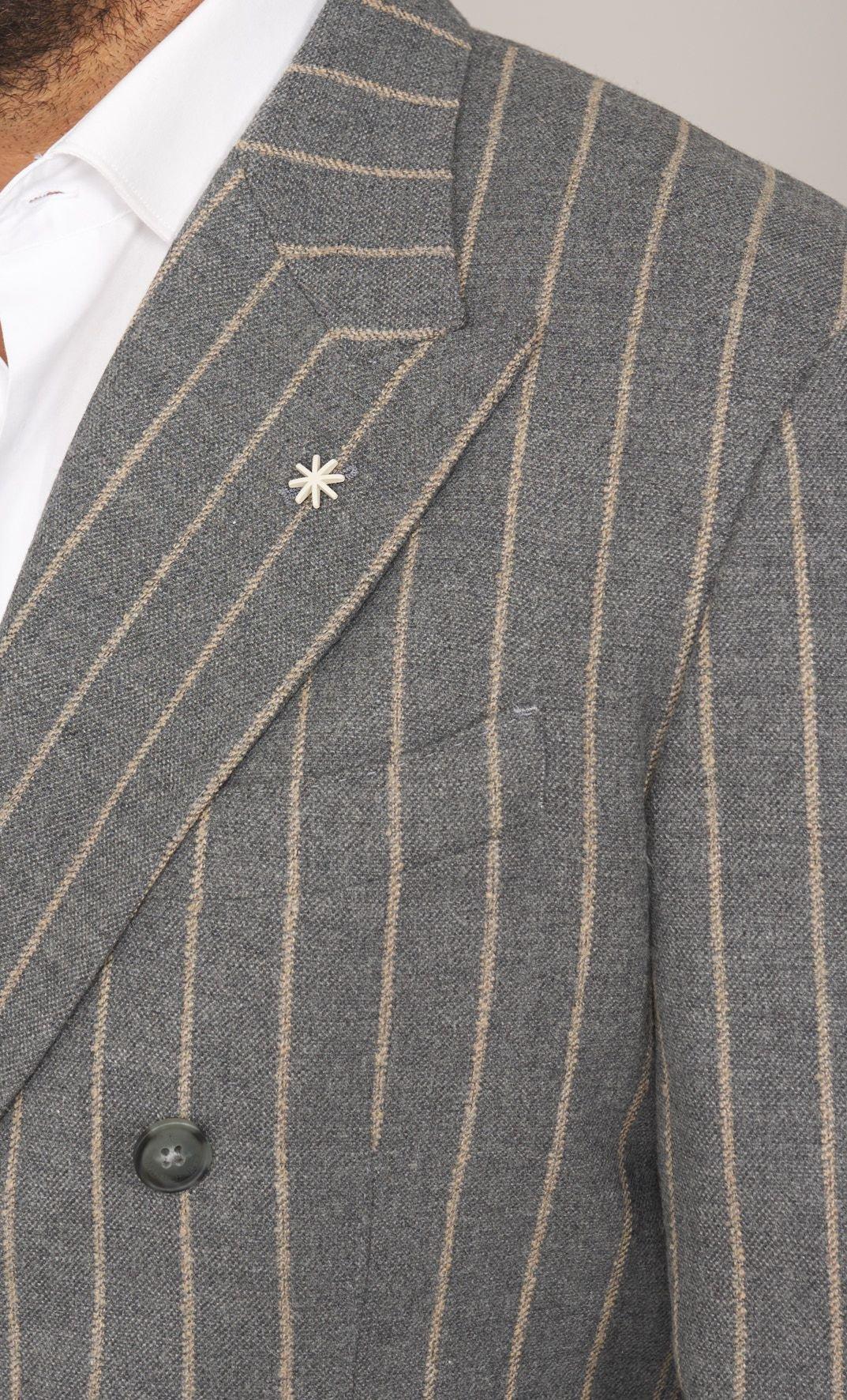 Giacca tessuto gessato doppio petto con tasche applicate grigio man