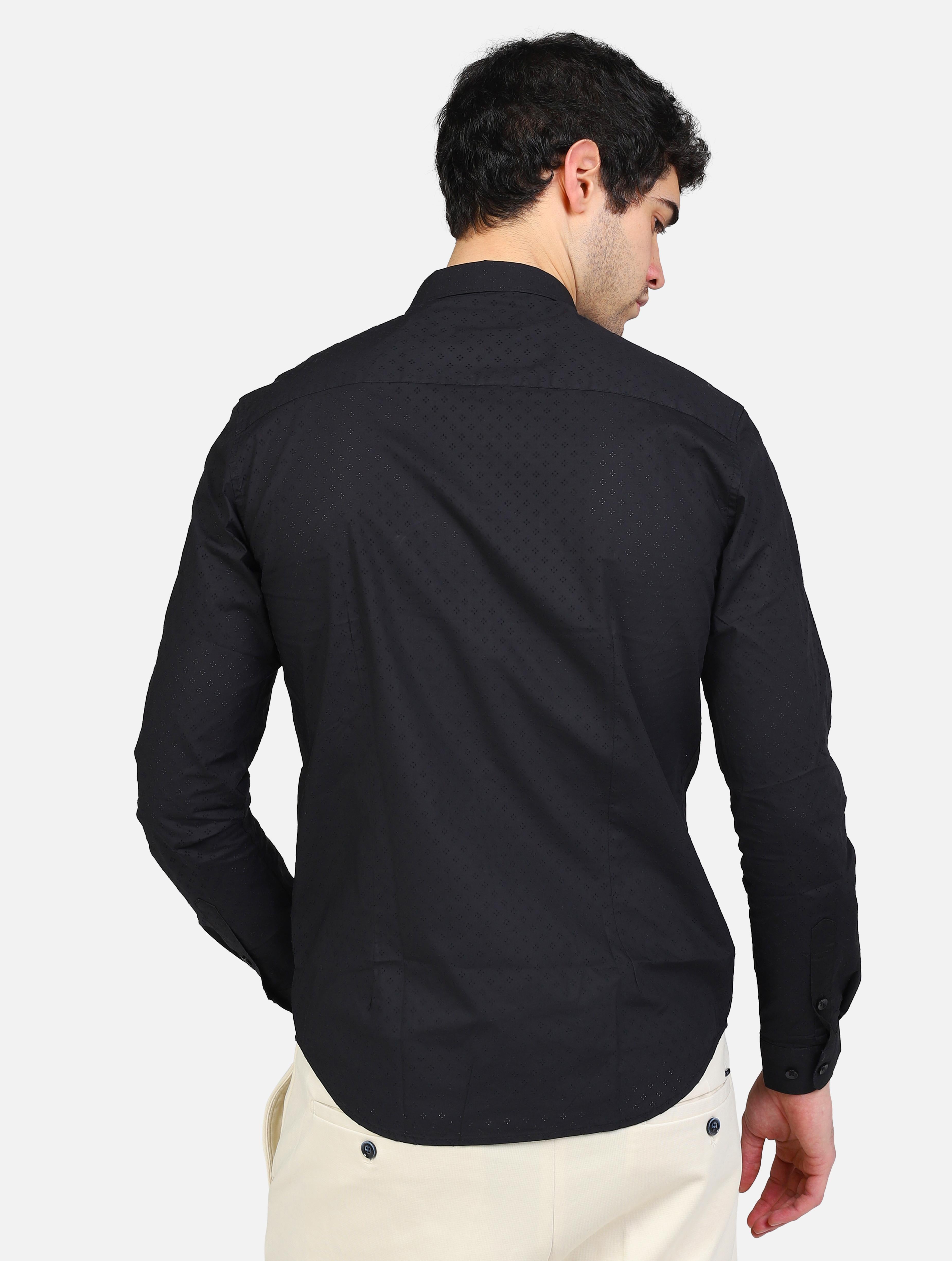 Art gl111da: camicia collo piccolo con tessuto perforato nero man