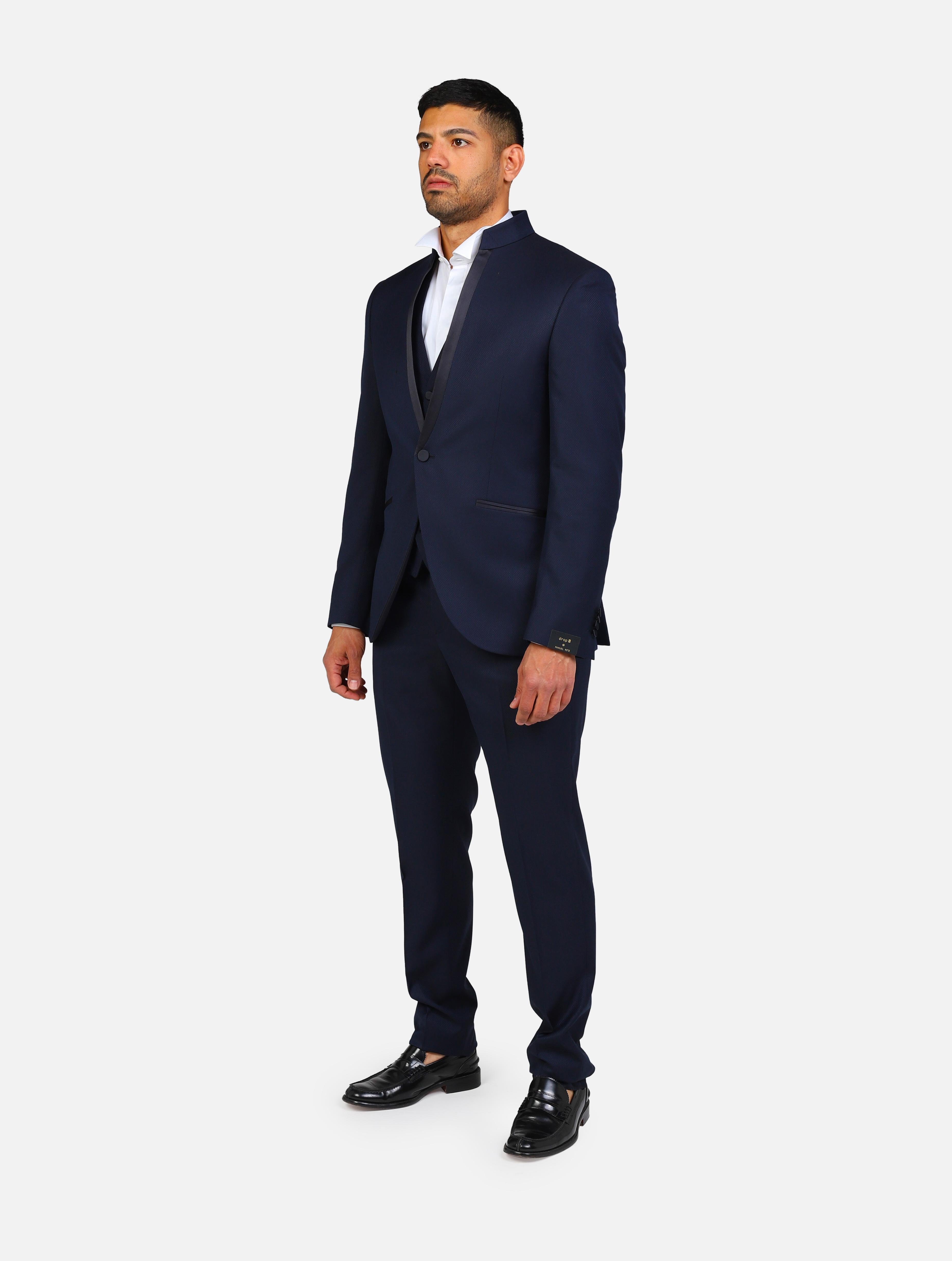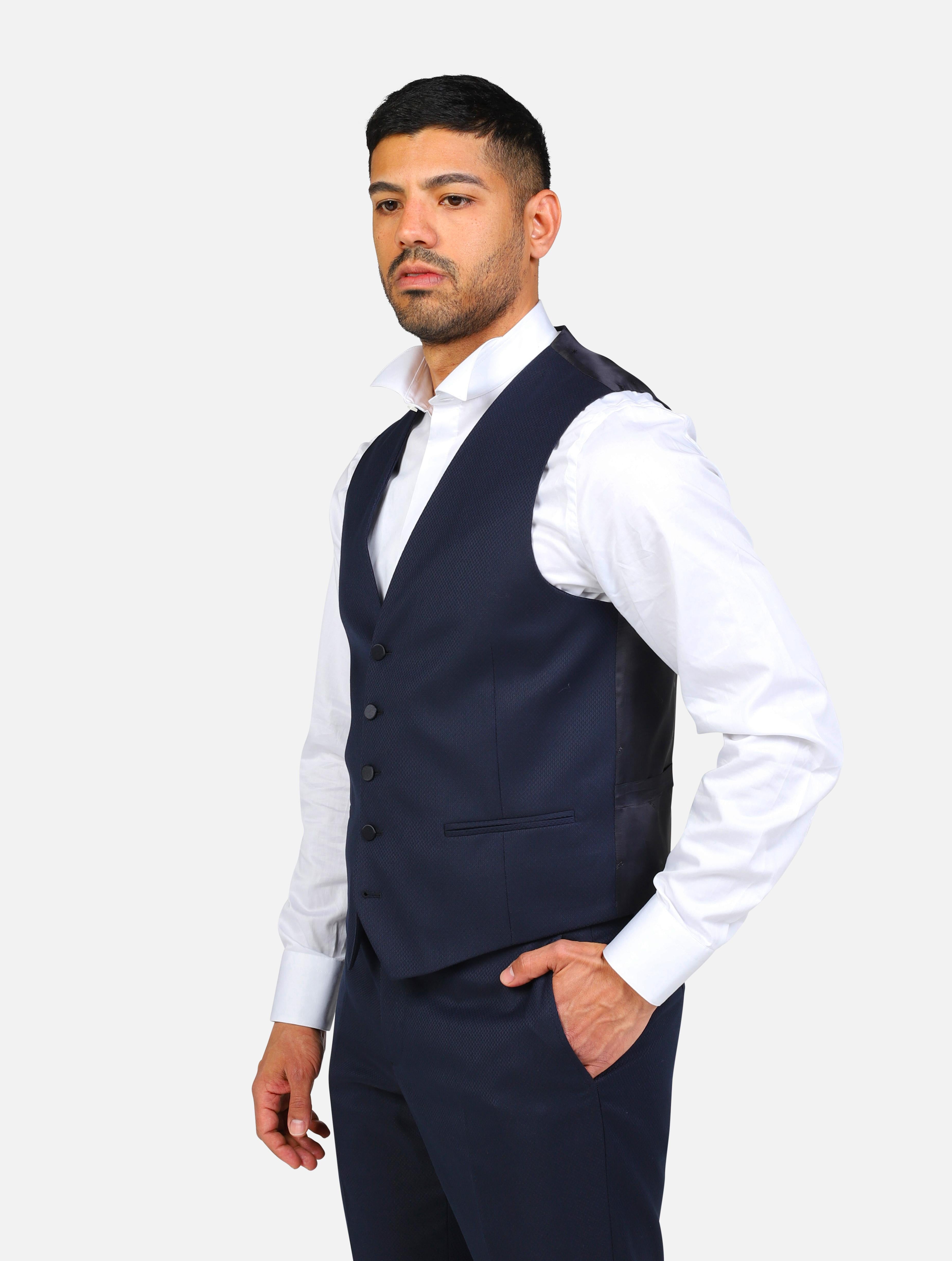 Art 3830arw3358: abito con collo coreano, gilet chiusura bottoni e pantalone blu man