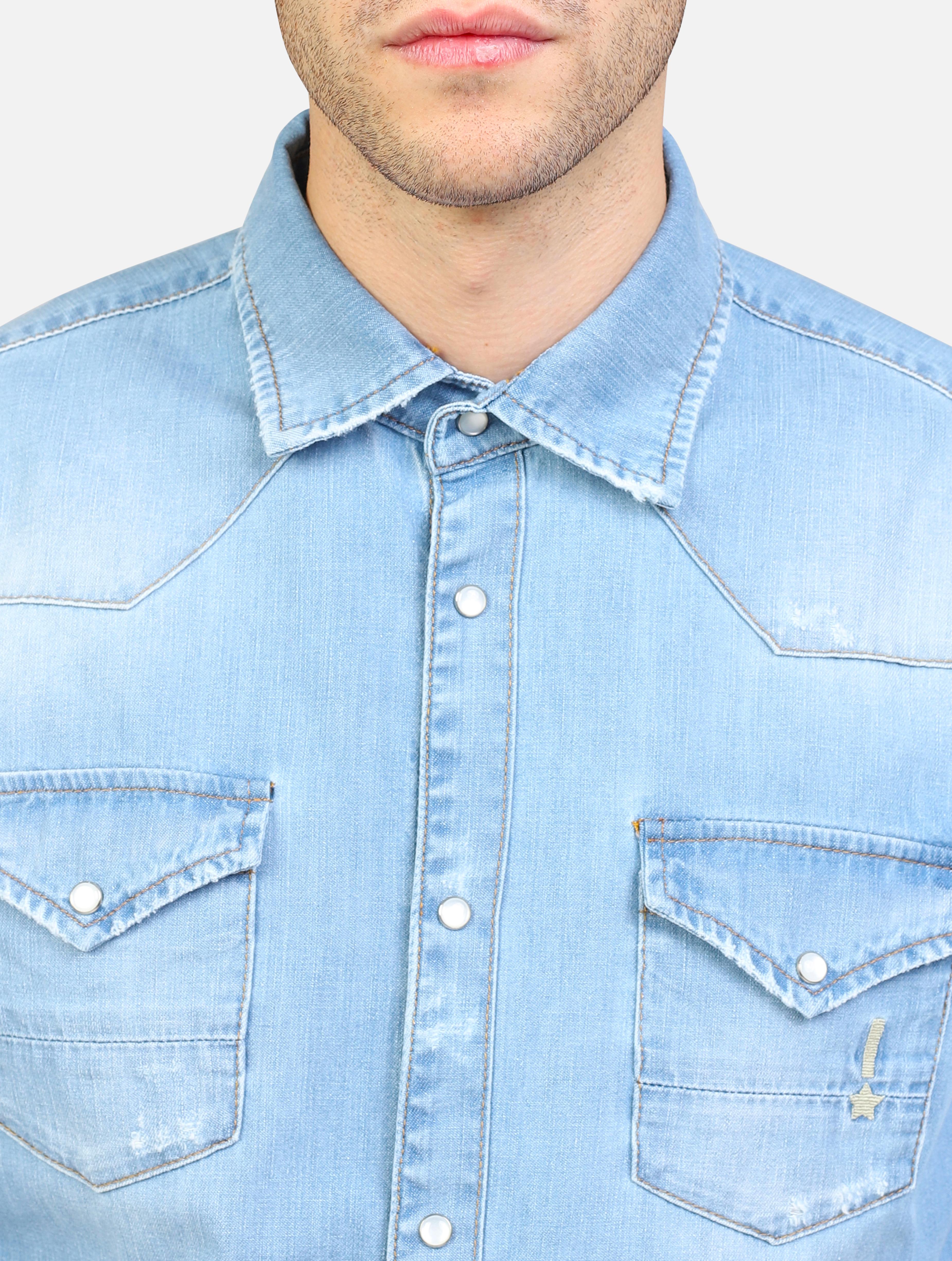 Art 12516124: camicia jeans con chiusura a bottoni e due taschini denim chiaro man