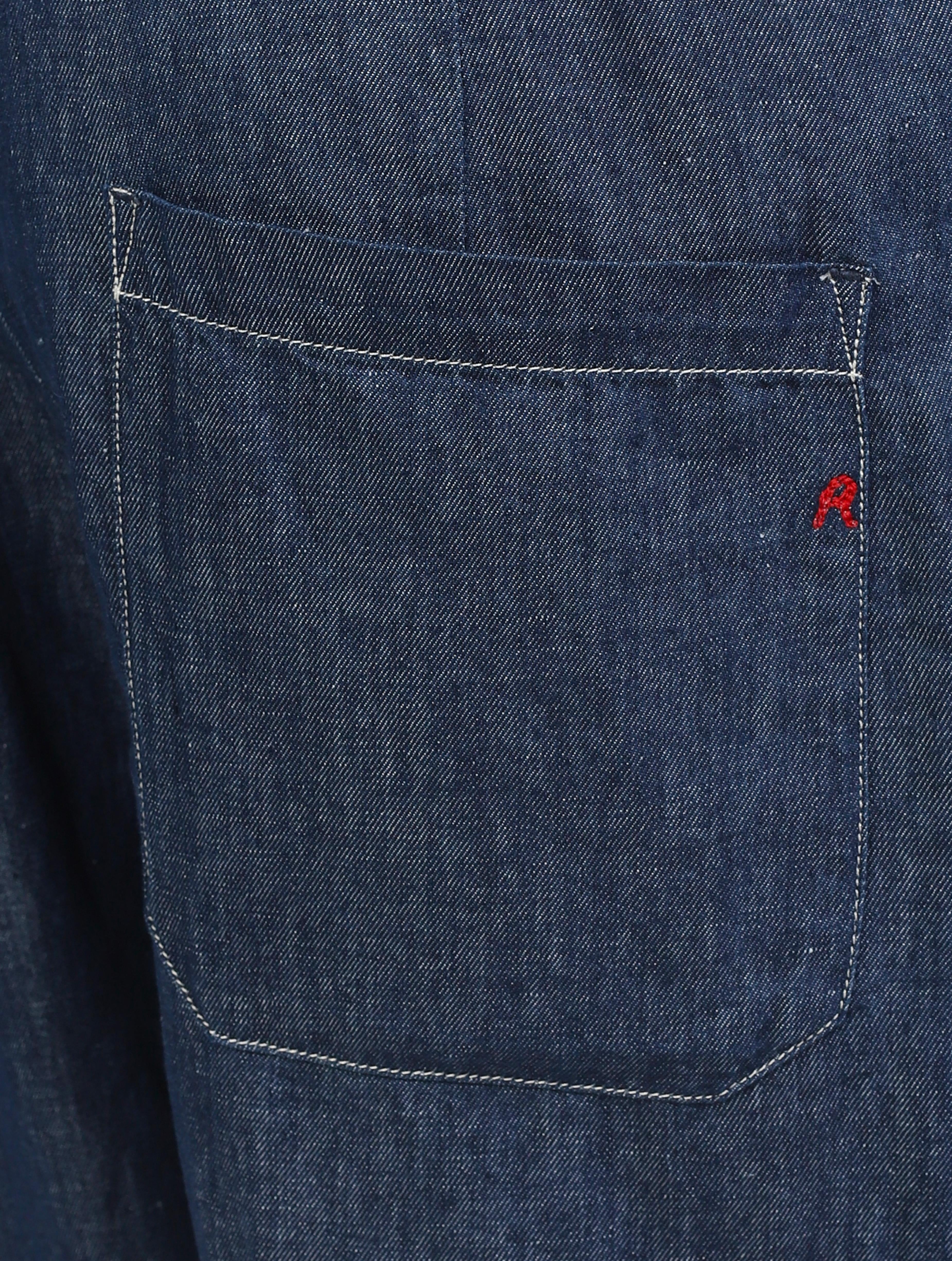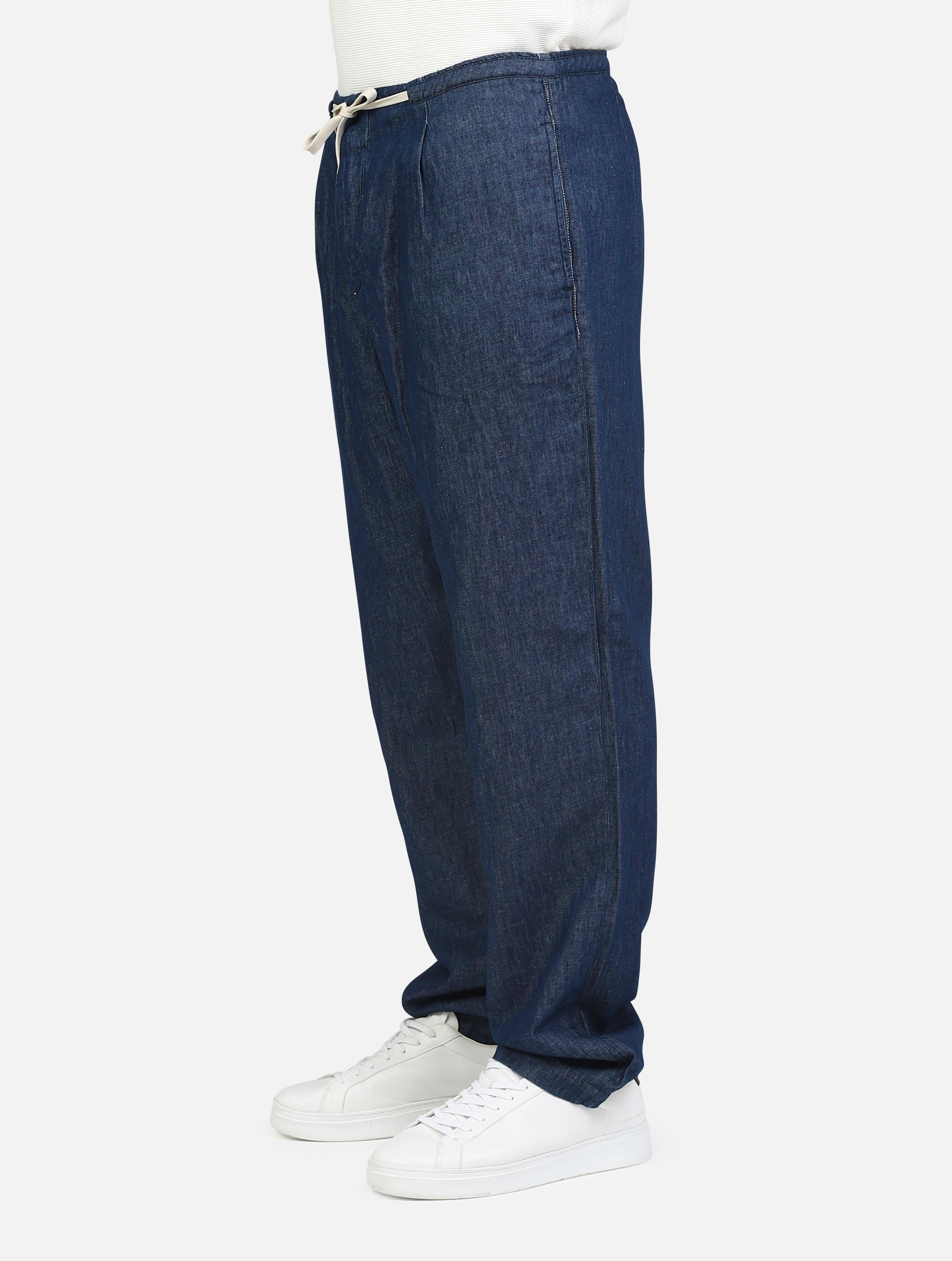 Art m9014: jeans pantalaccio con tasche a taglio misto cotone e lino denim scuro man