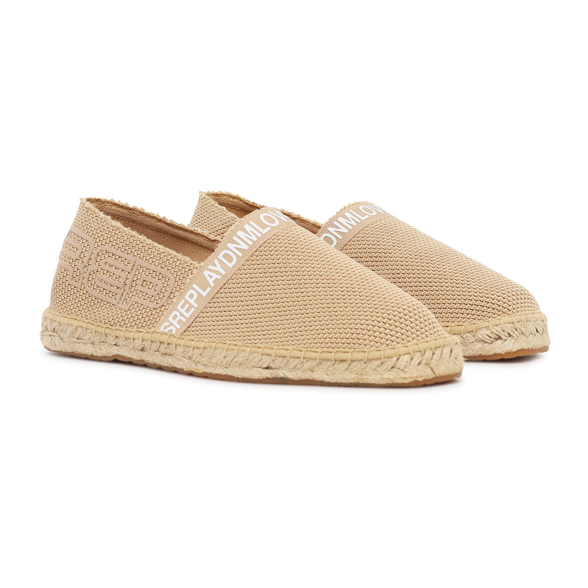 espadrilles slip-on da uomo cabo print. suola bassa in gomma con impunture a rilievo, tomaia in denim e maxi stampa logo sul retro