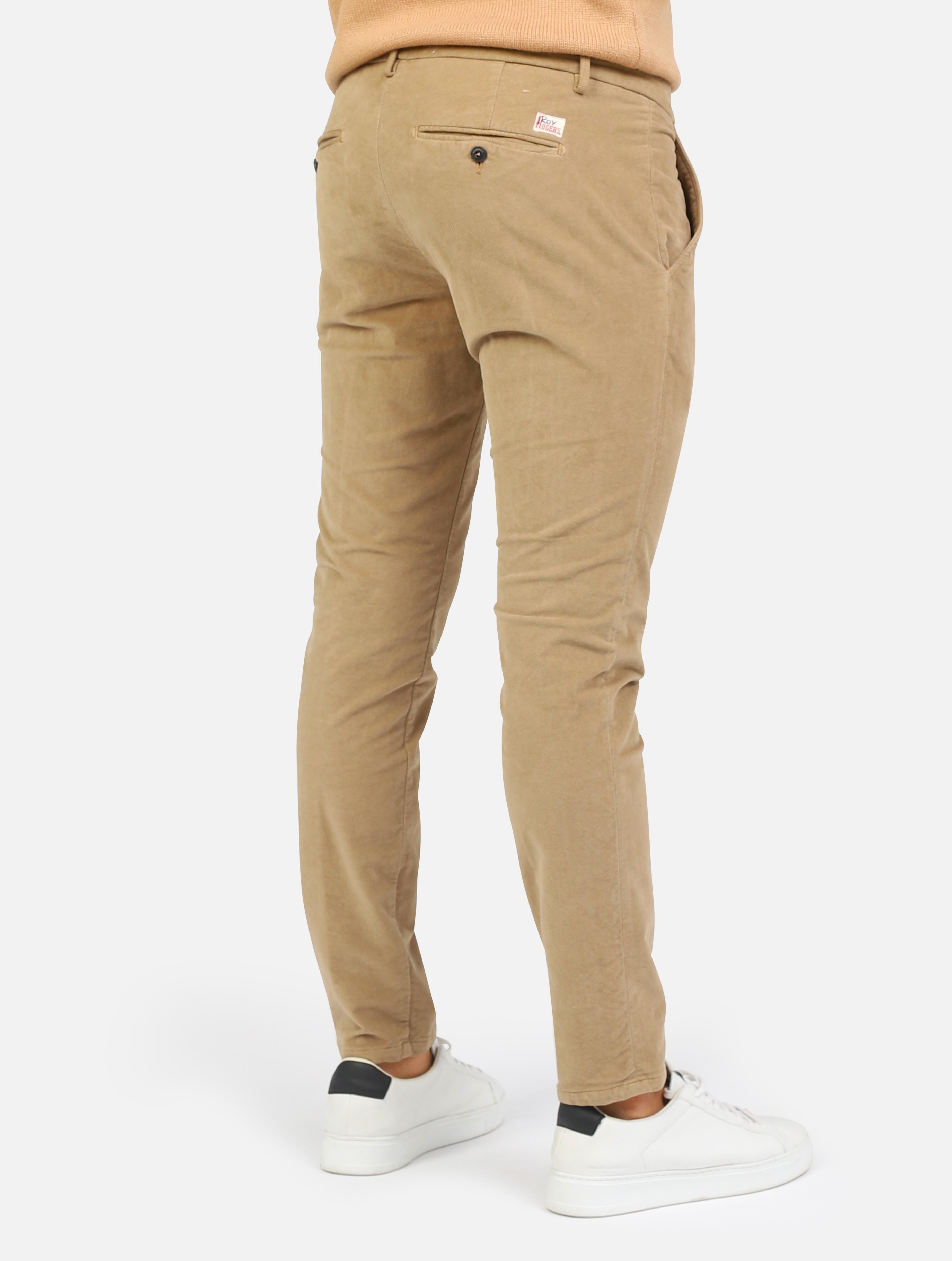 pantalone in velluto taglio regular color nocciola con tasche a taglio
