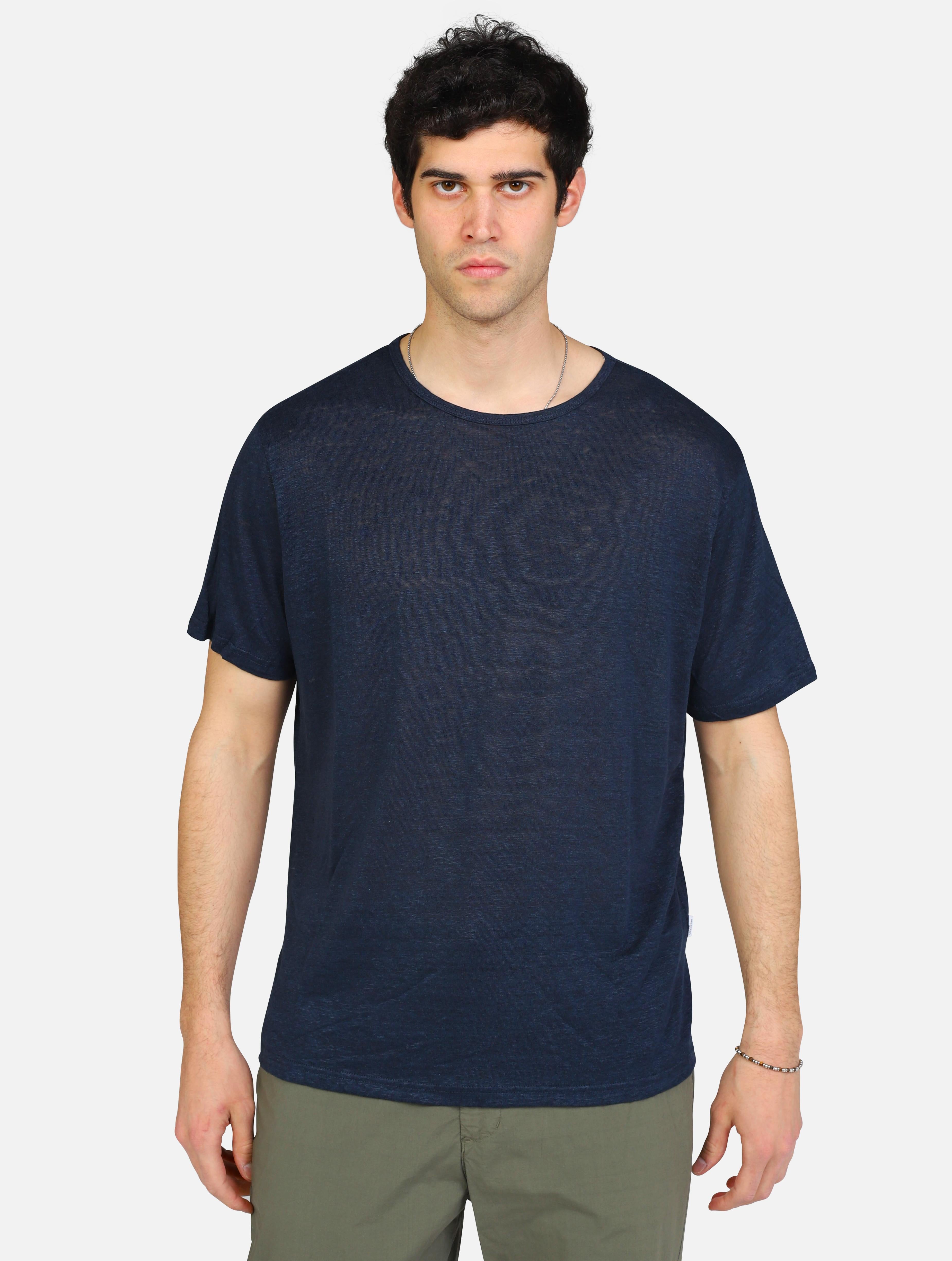 Art 16089504: maglia in lino tinta unita blu man
