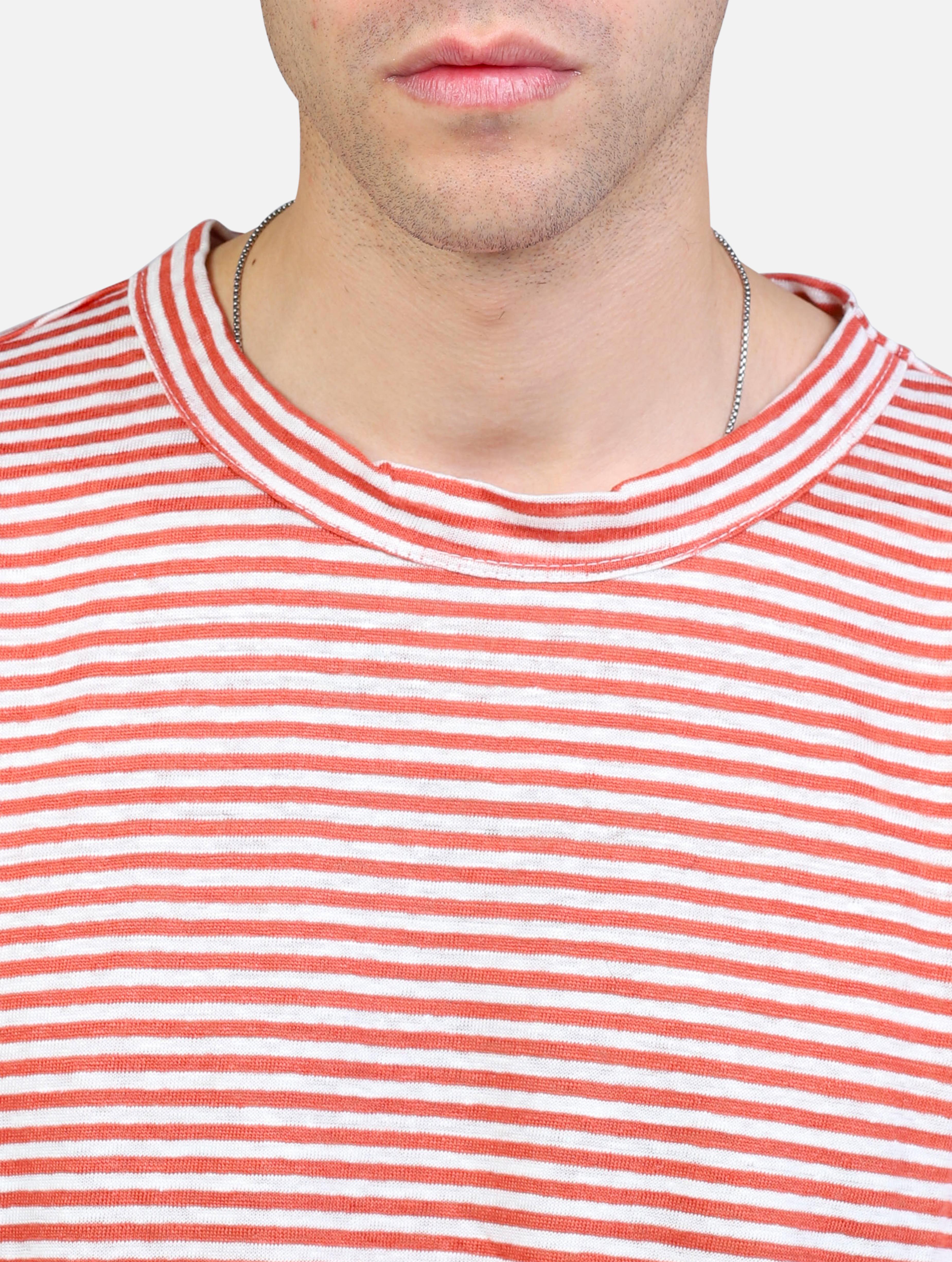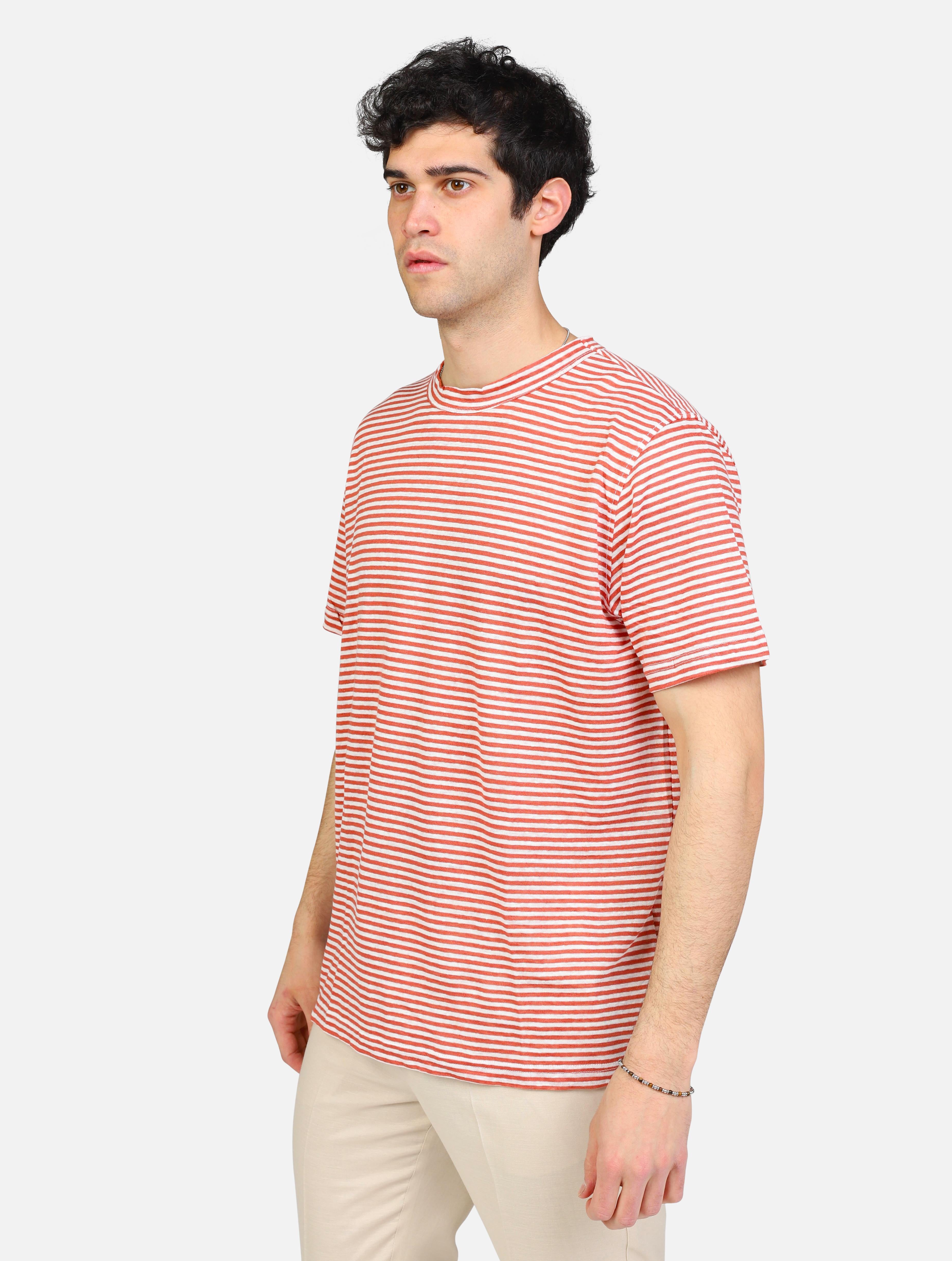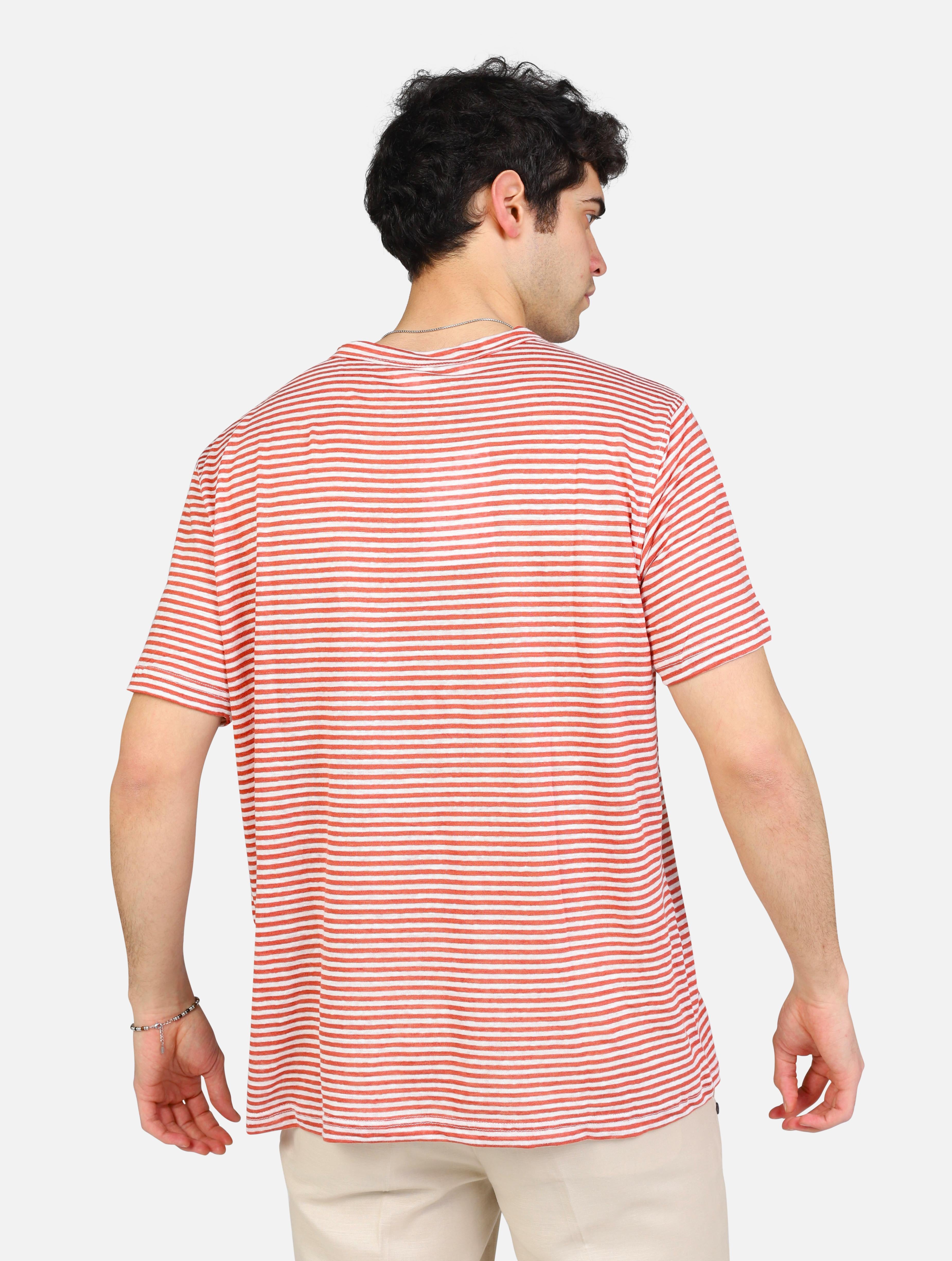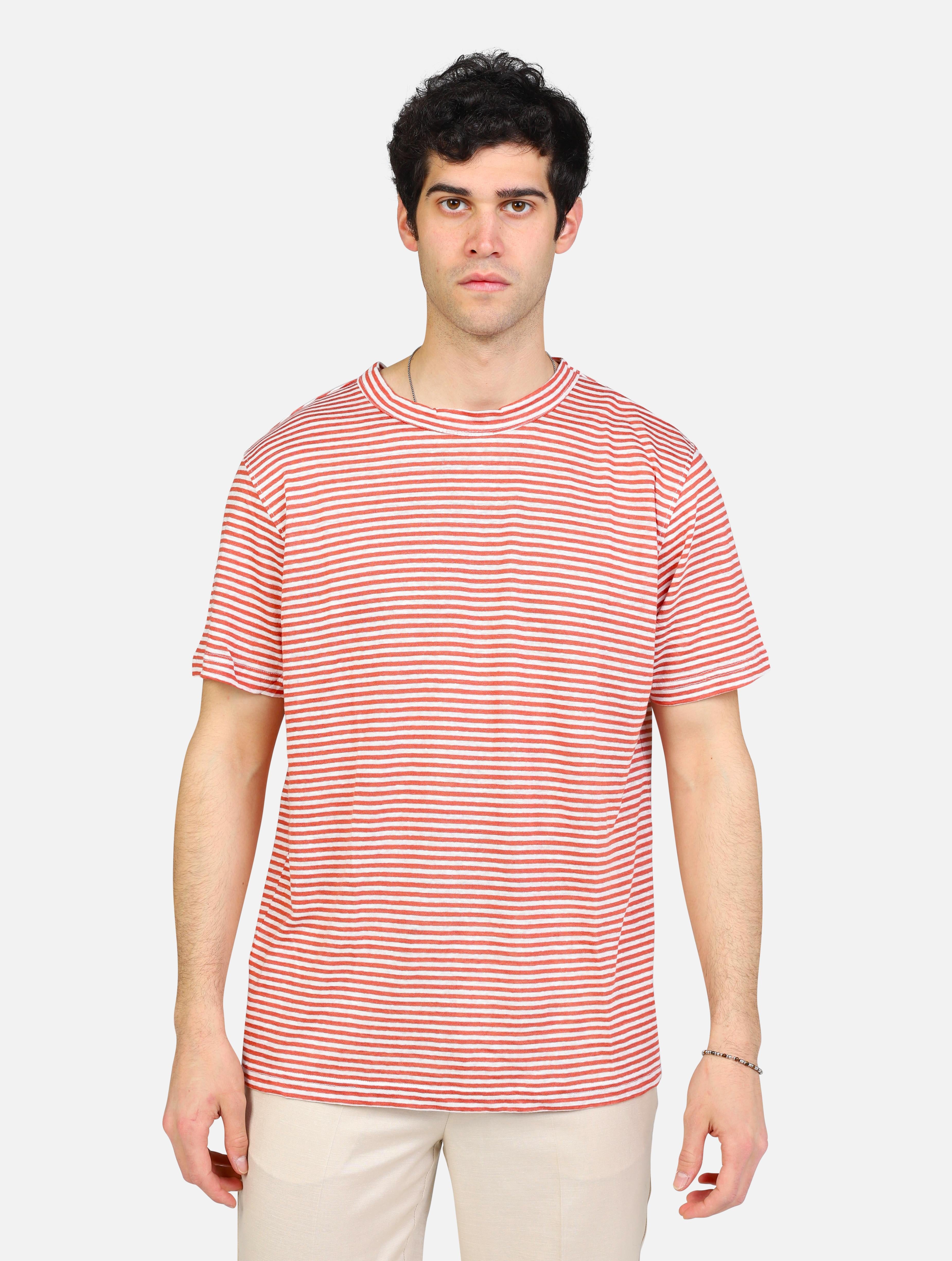 Art 16097086: maglia in puro lino a strisce orizzontali bianco ruggine man