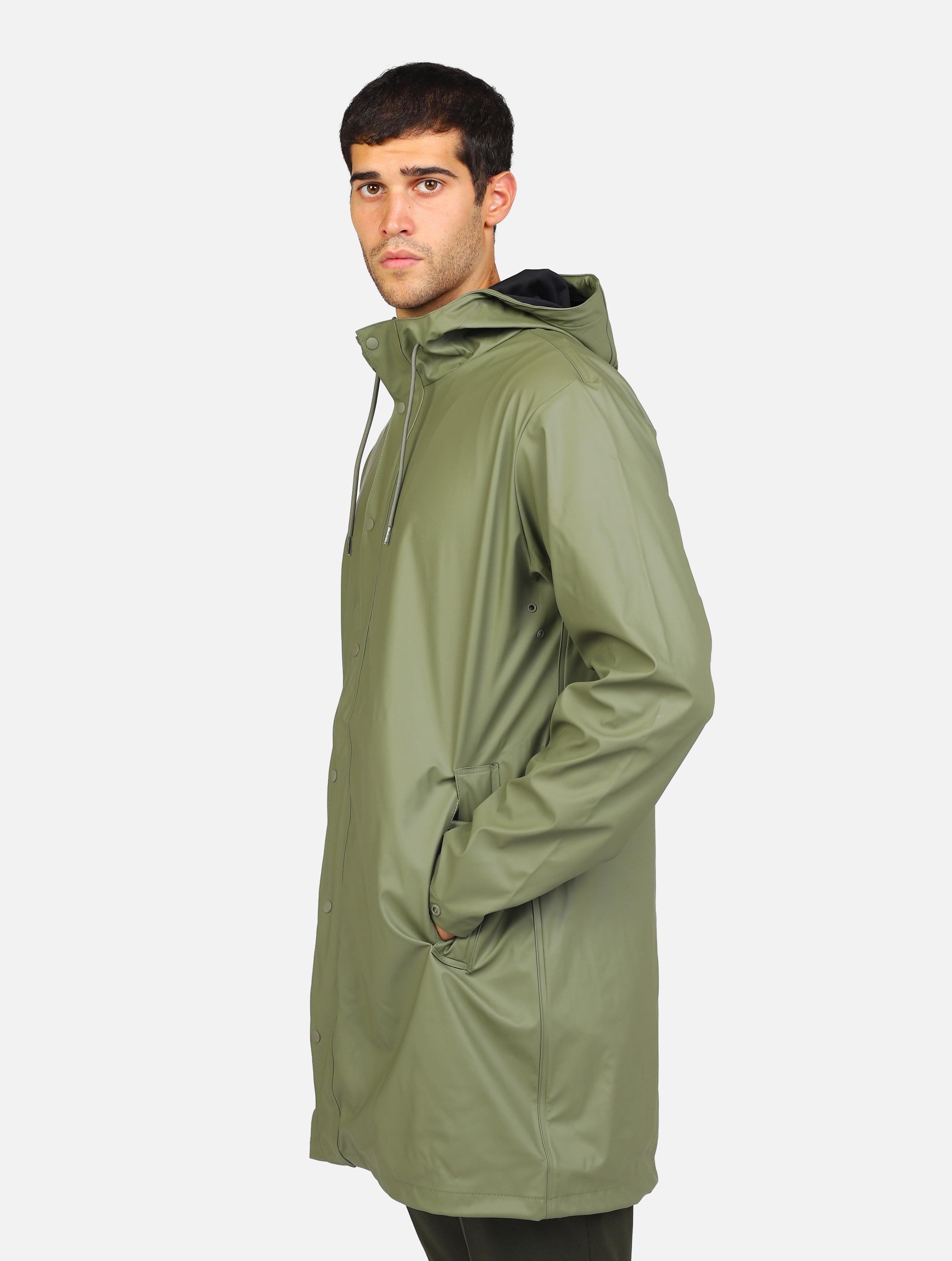 Giacca antivento e impermiabile con cerniera anteriore a 2 vie nascosta da bottoni a pressione, maniche lunghe con polsini cuciti e occhielli di ventilazione sotto le braccia. Tasche laterali a filetto e patta antivento con logo in rilievo sul retroCuciture saldate. Lunghezza sopra il ginocchio