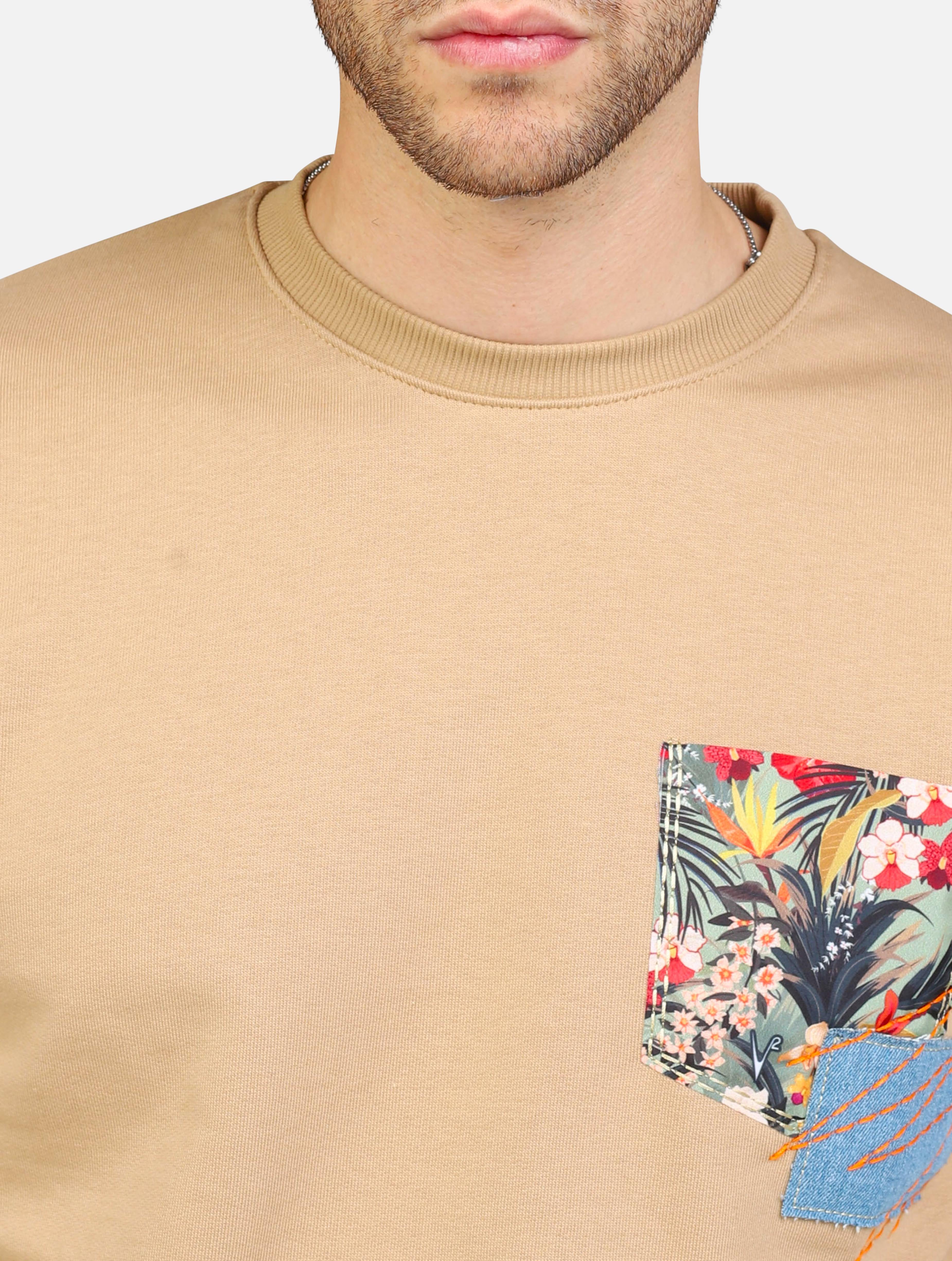 Art fugpresab: felpa girocollo premium con taschino disegnato cucito sabbia man