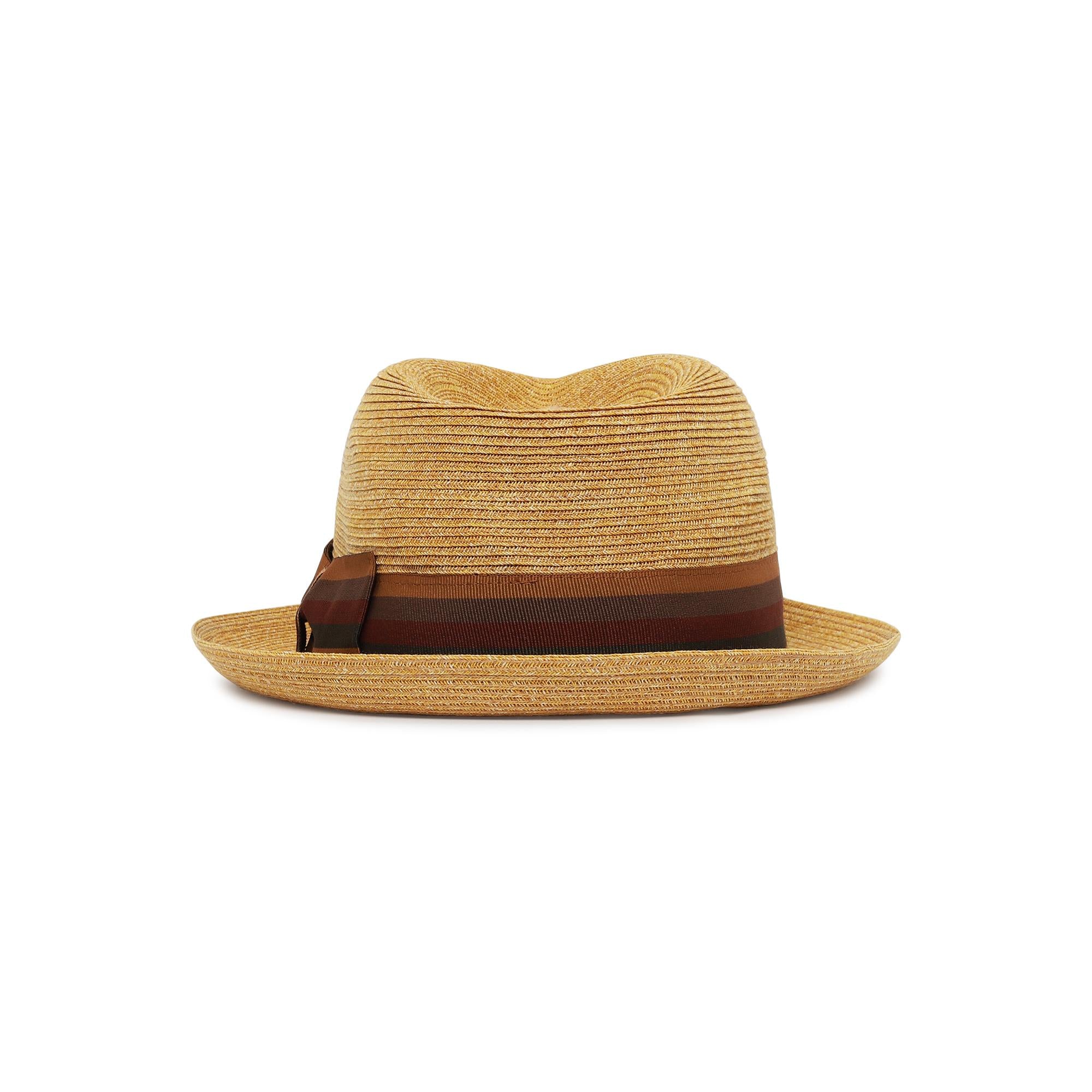 cappello trilby con visiera arricciata in carta tessile con fiocco multicolor