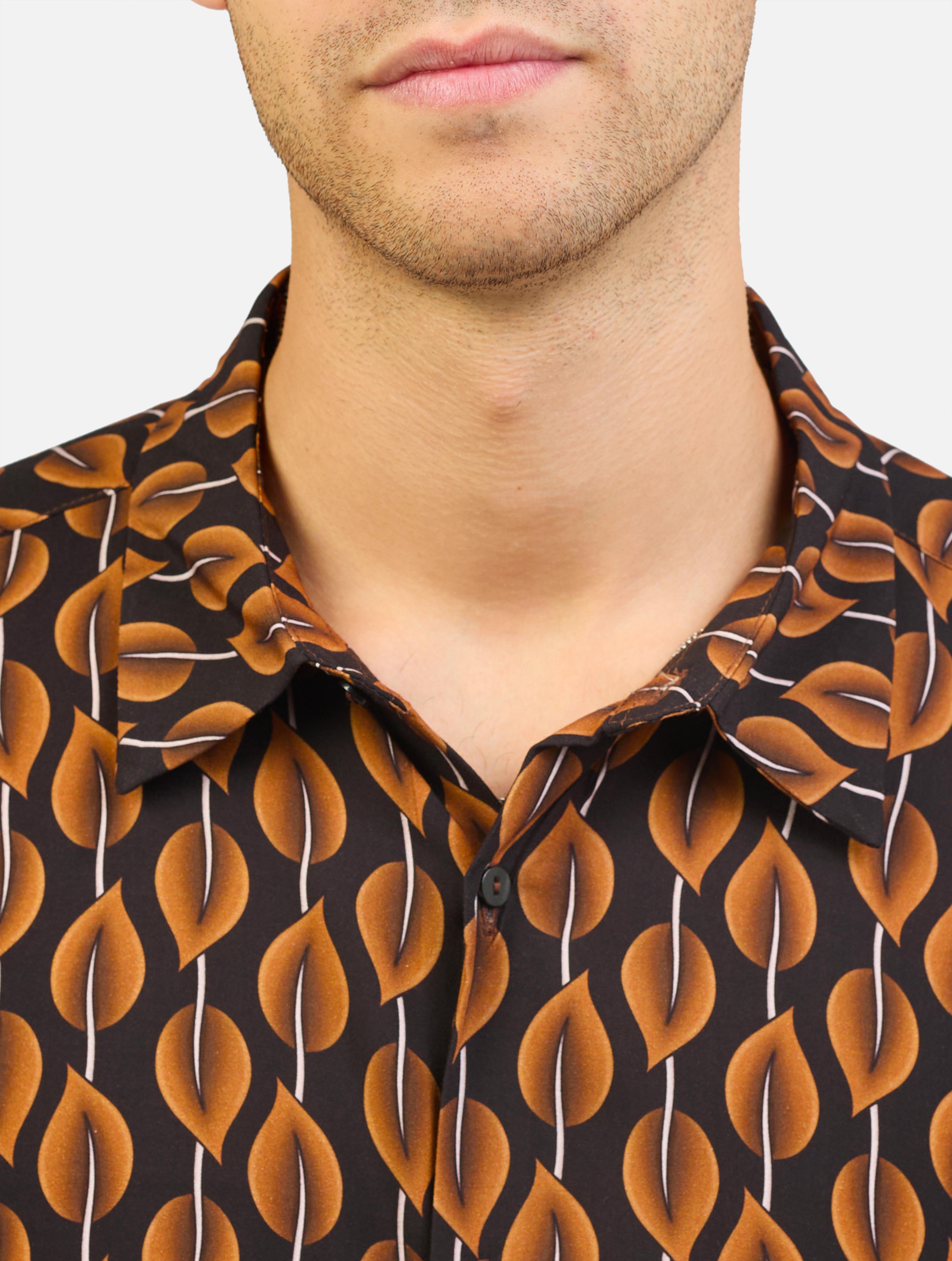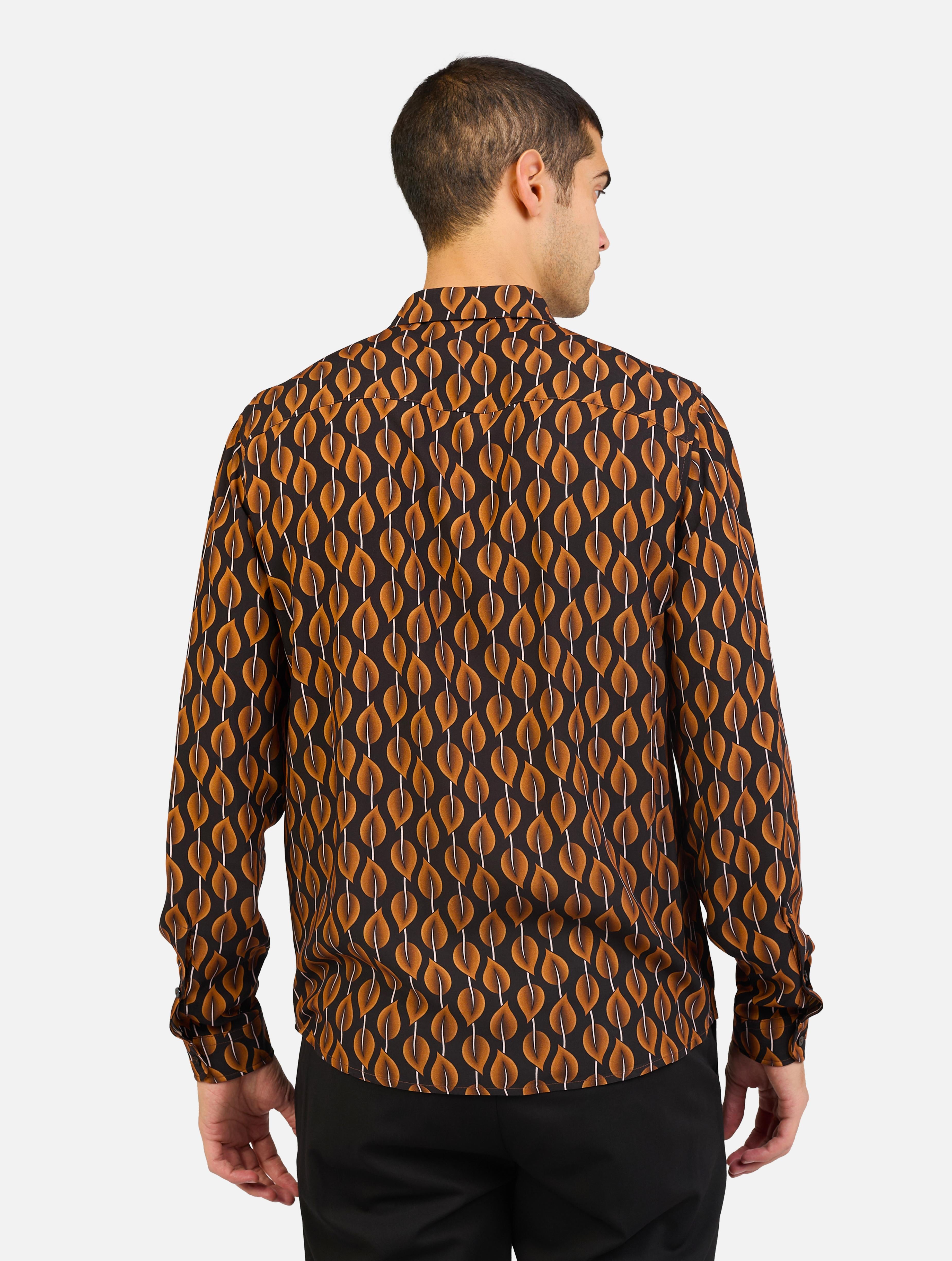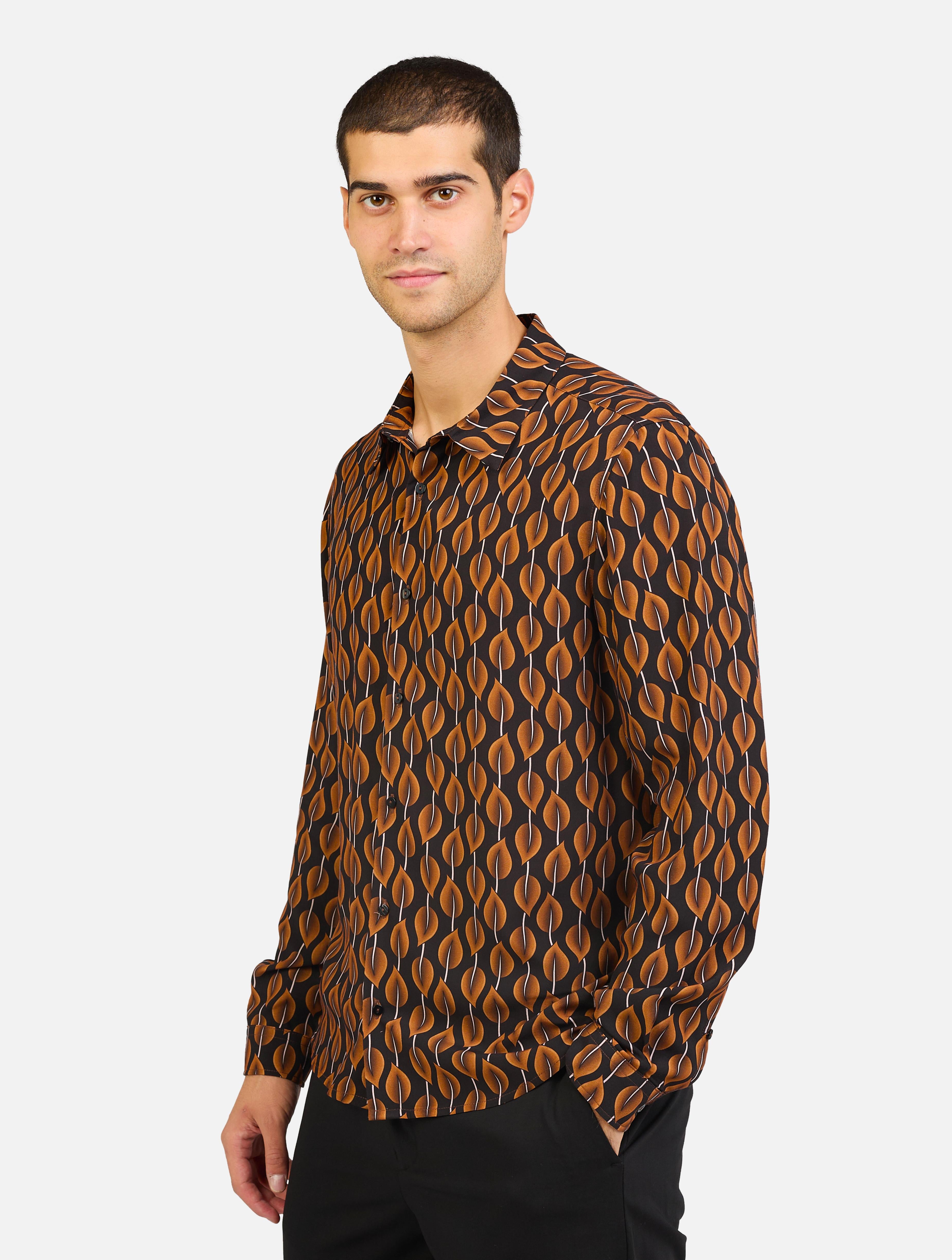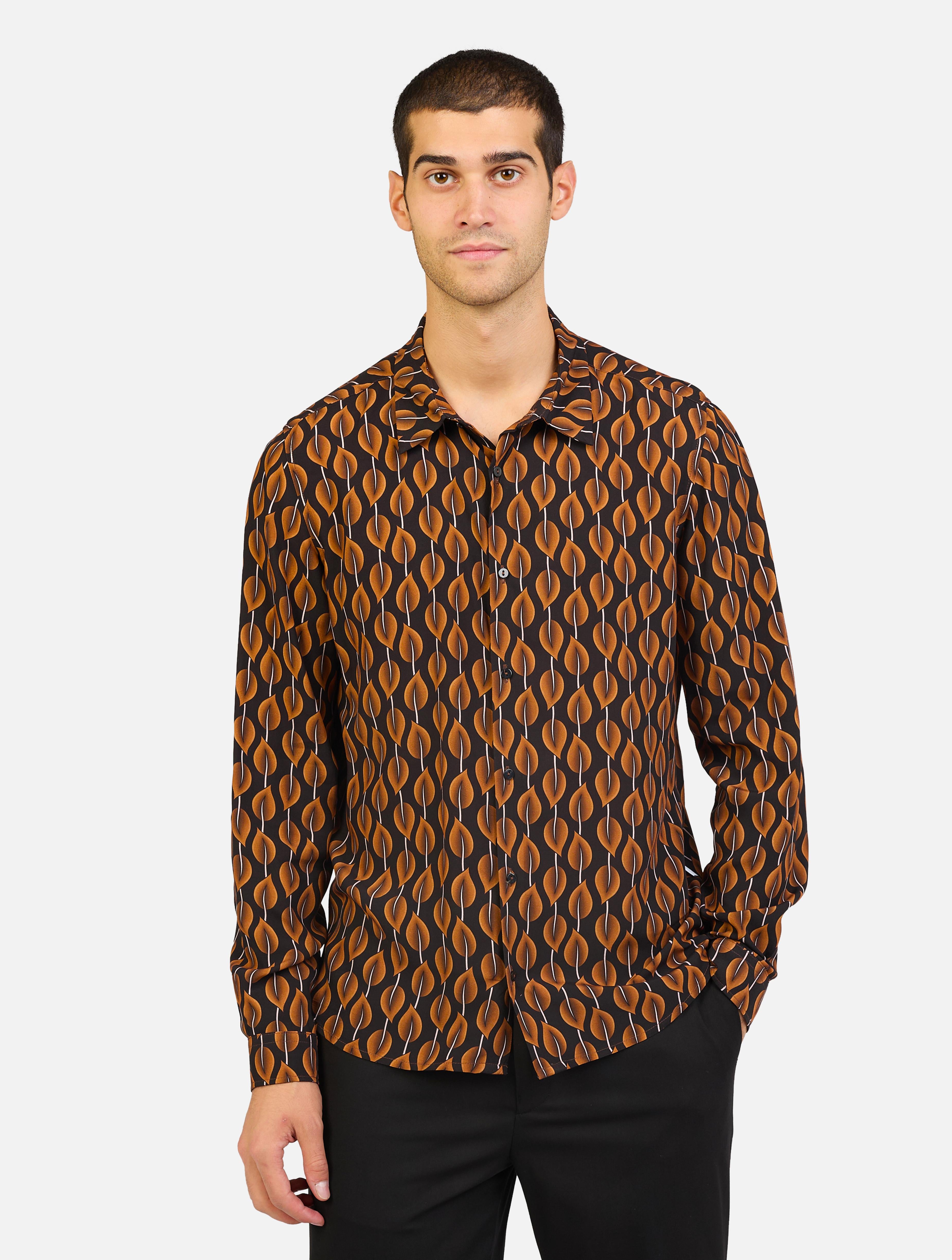 Camicia faro unico con fantasia in viscosa nero-marrone uomo