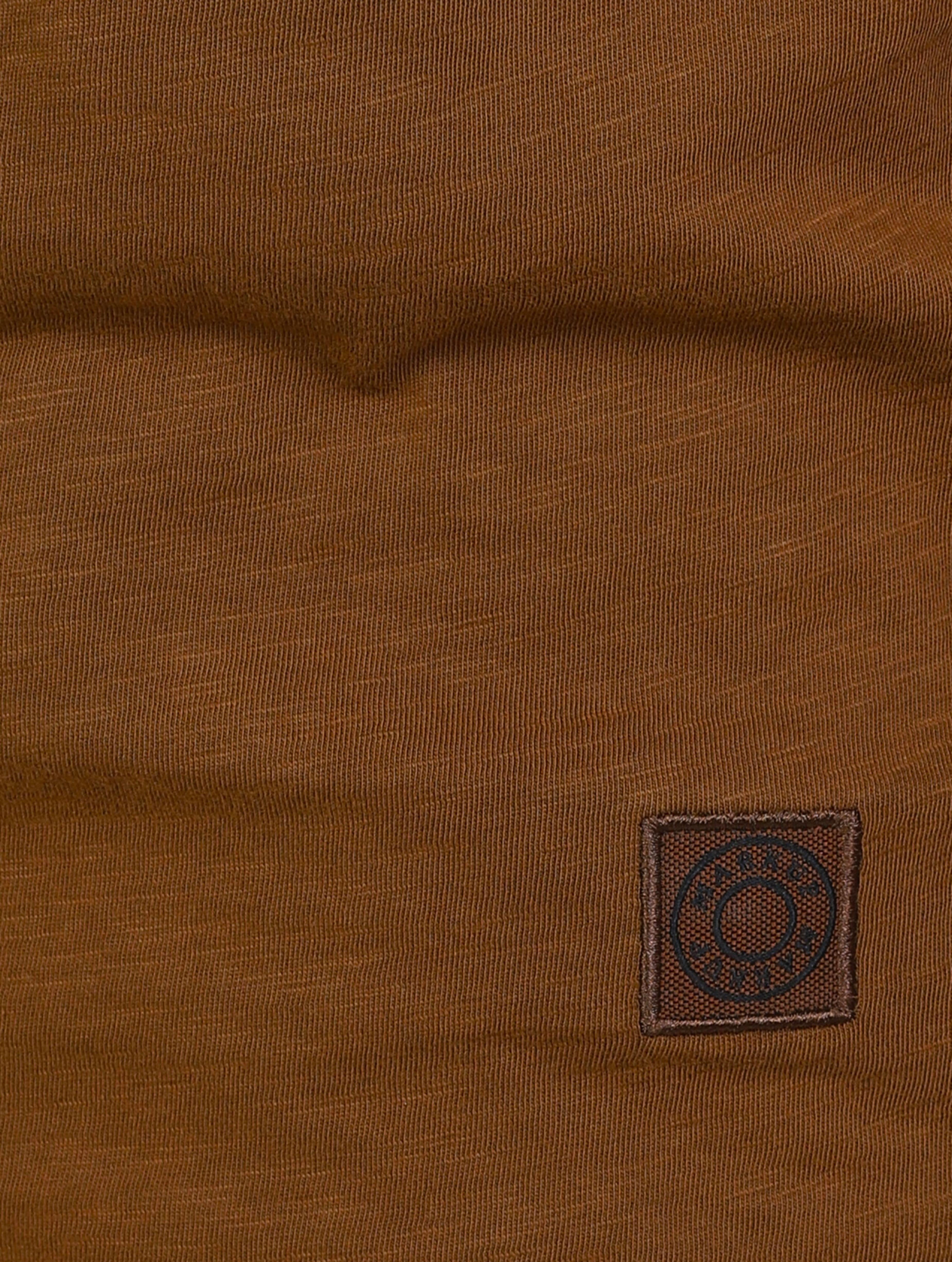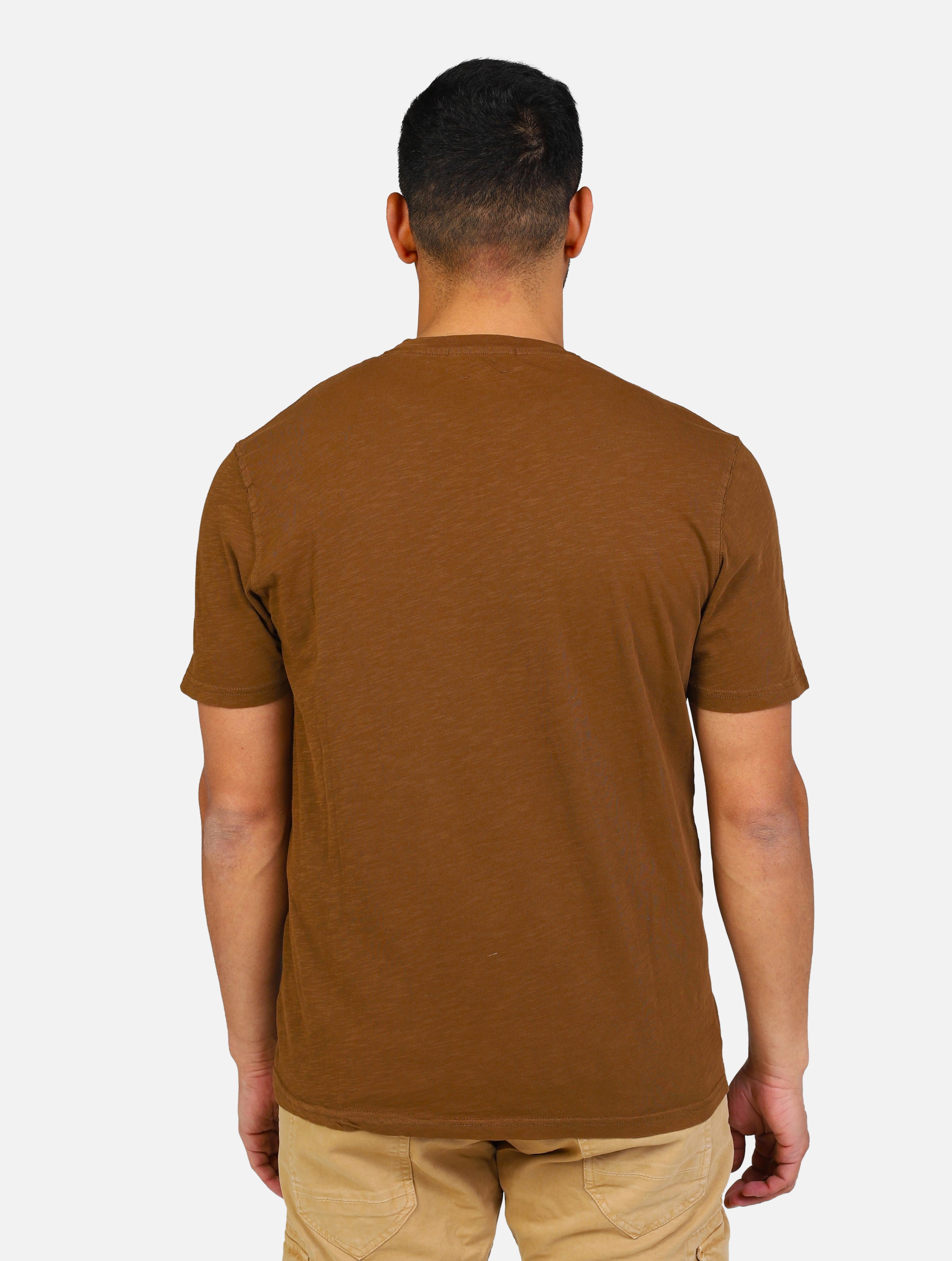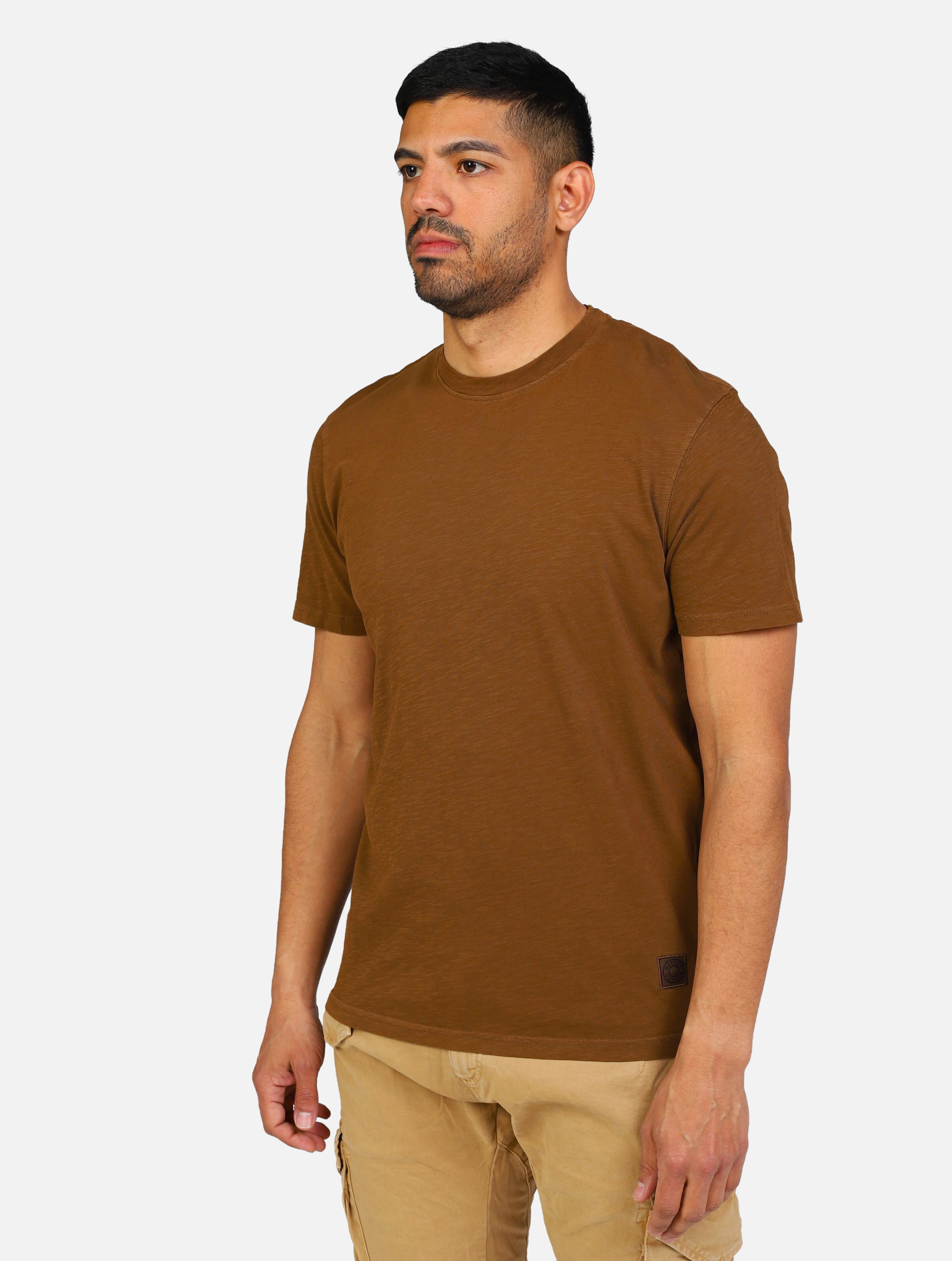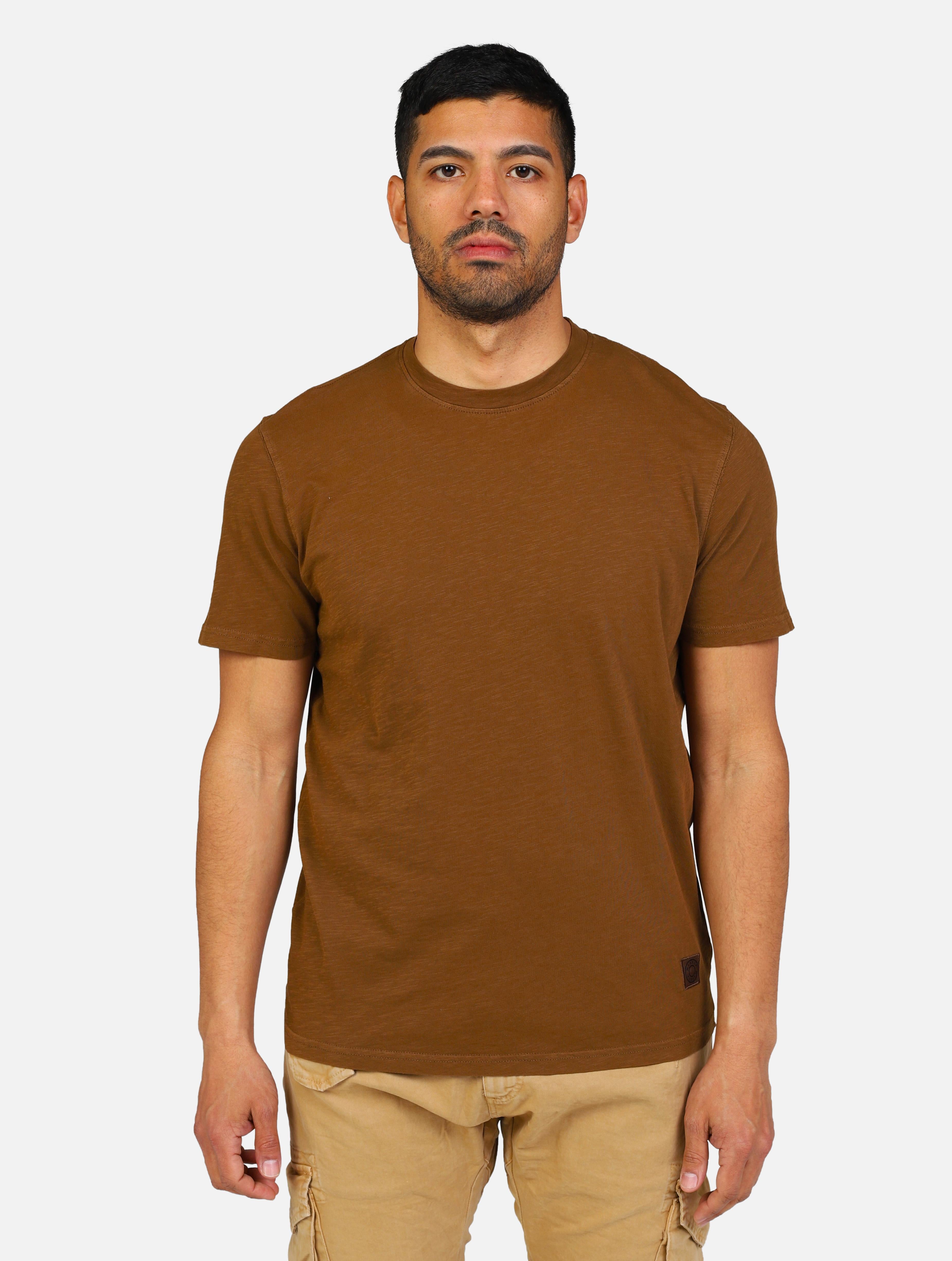 Art mk11011: t-shirt manica corta fiammato girocollo con logo posto nella parte inferiore a contrasto colore tabacco uomo