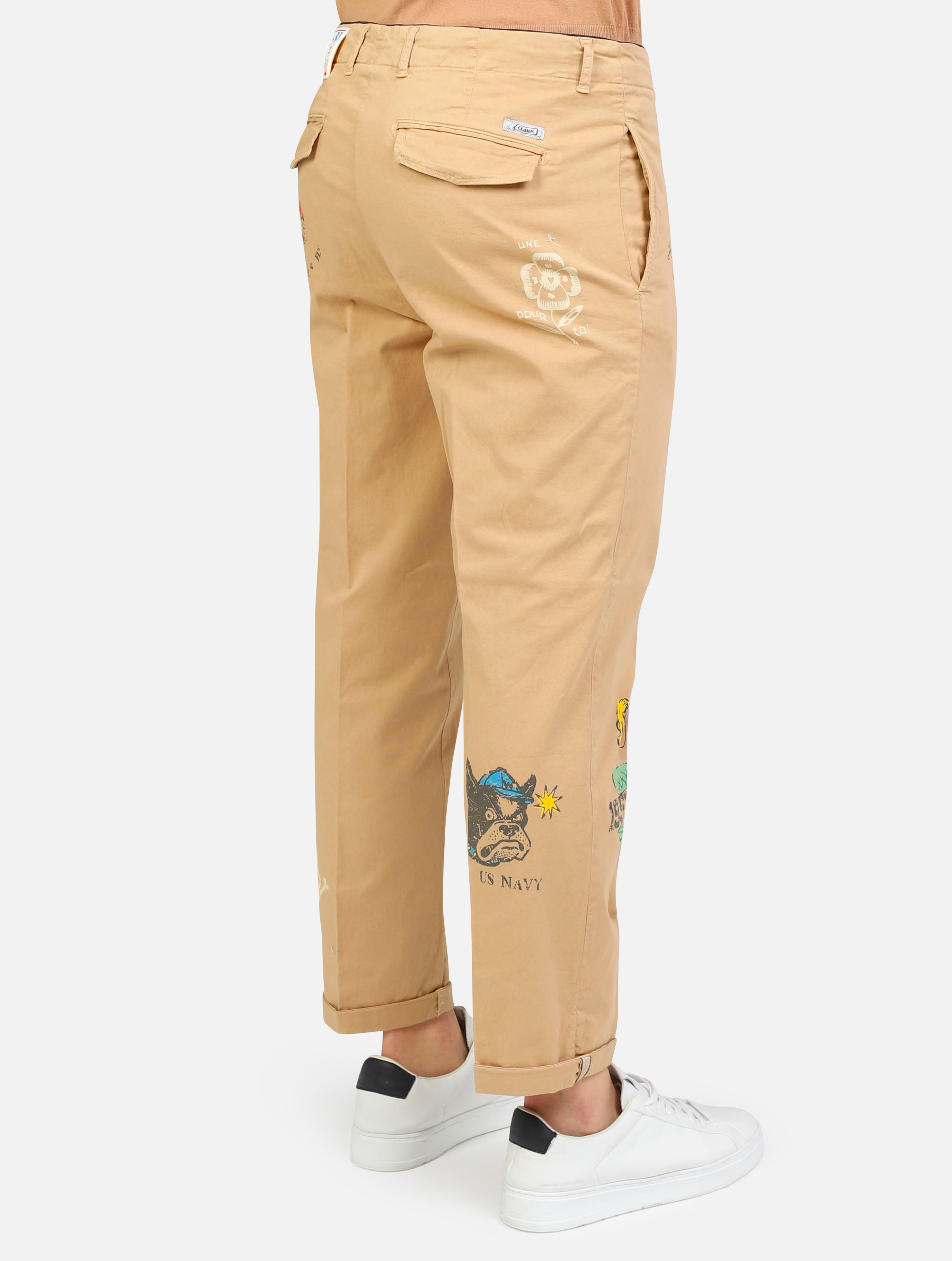 Art ancon-s-t095: pantalone tailored con tasche a taglio e stampe khaki uomo