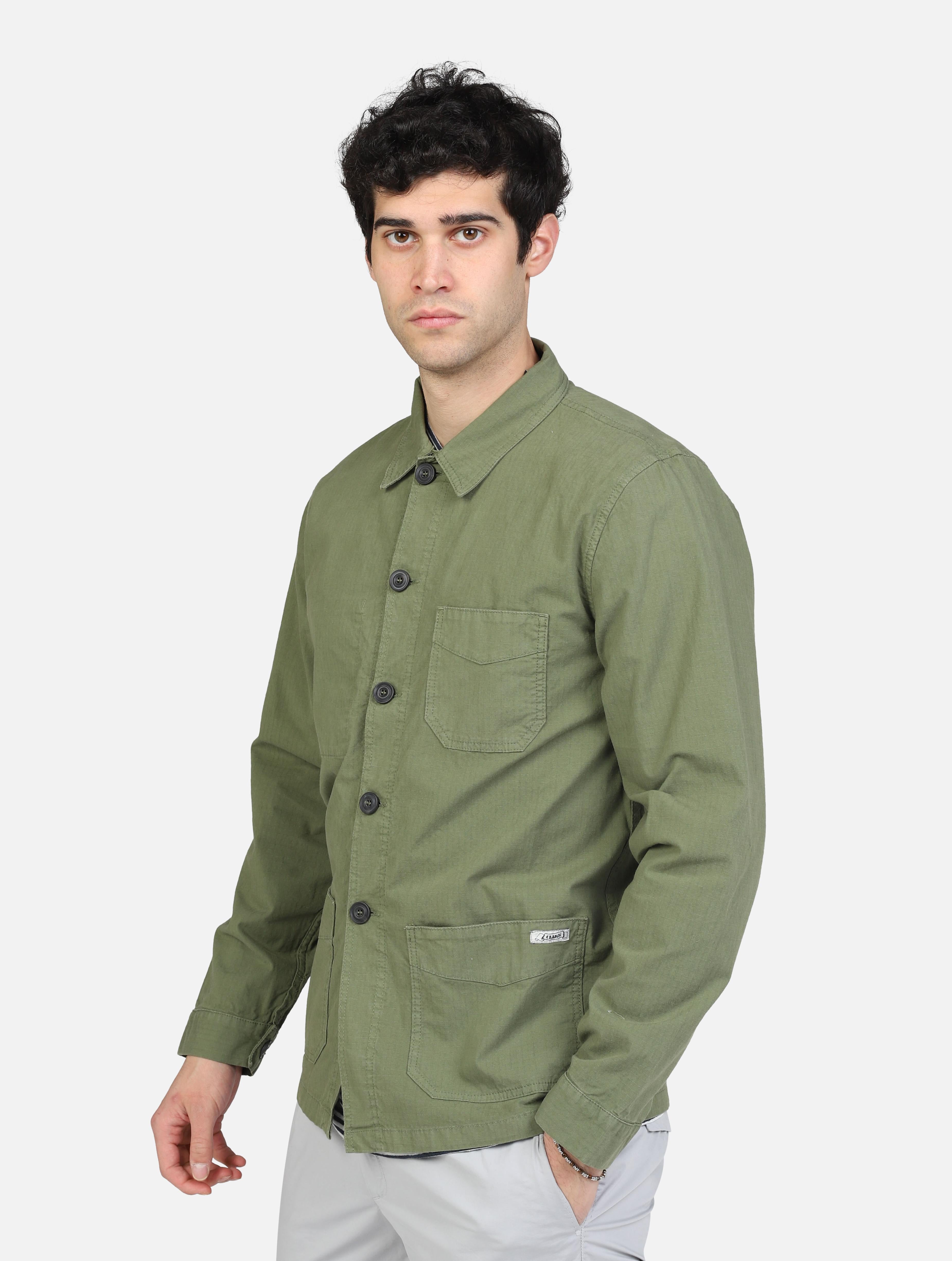 Art marshall-t103: giacca lavoro ripstop con chiusura a bottoni e tre tasche army green uomo