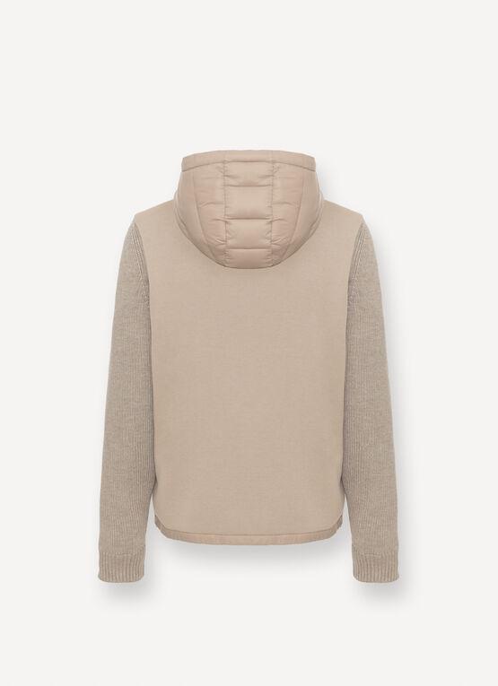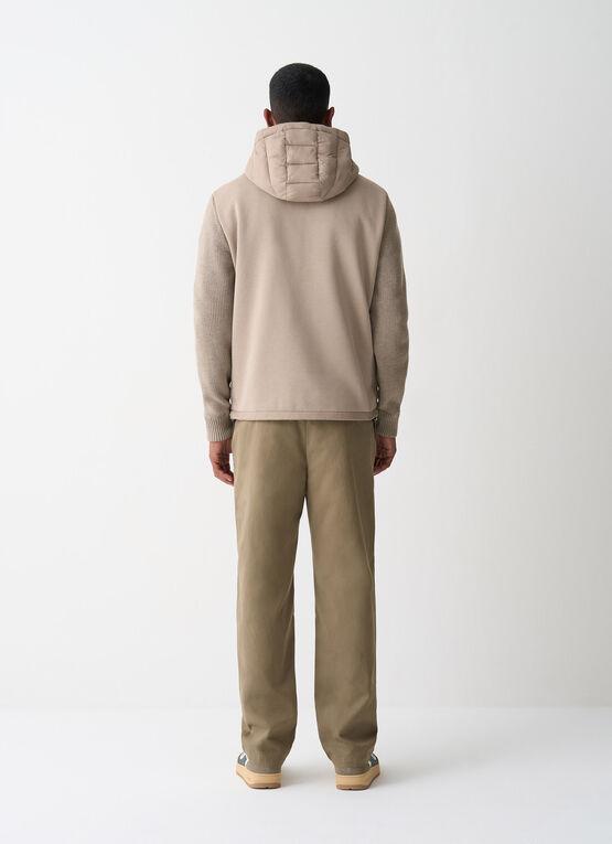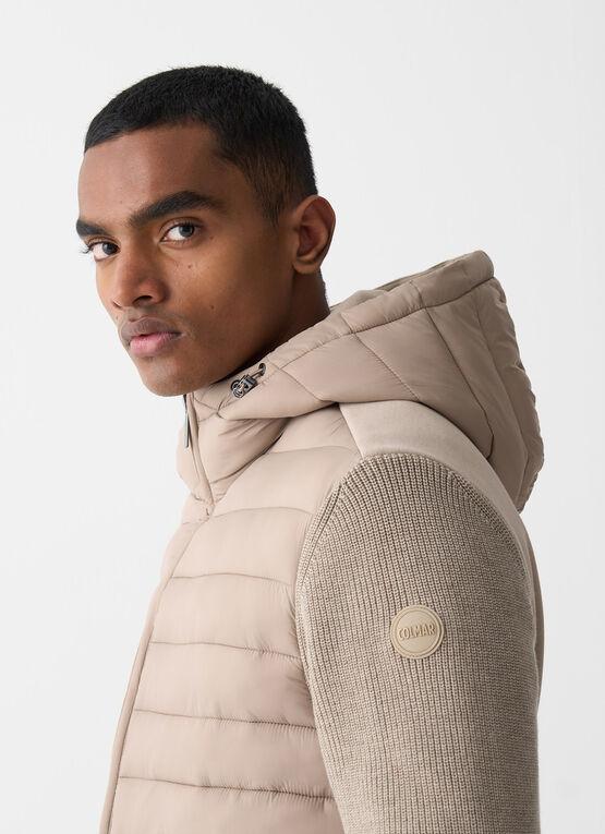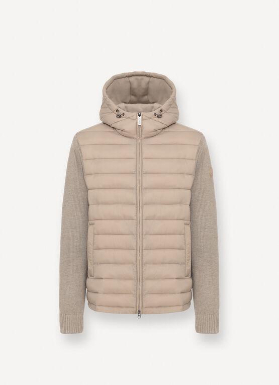 Giacca ibrida trapuntata da con cappuccio e maniche a costine combina stile e comfort, perfetta per le fresche giornate autunnali beige uomo