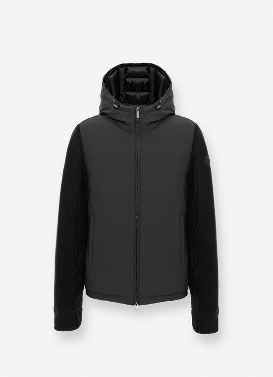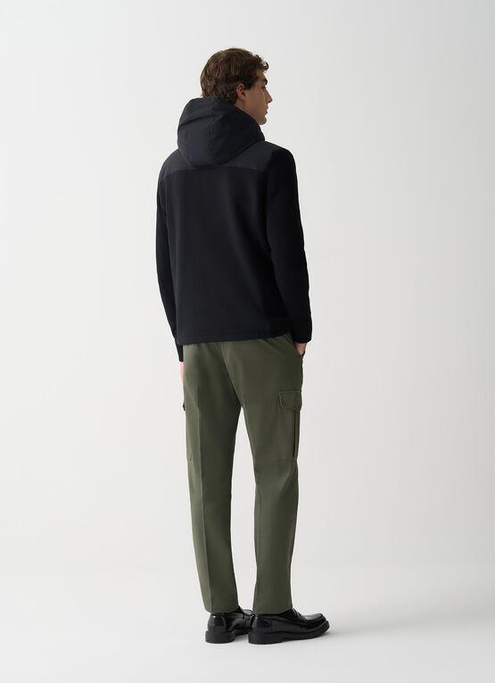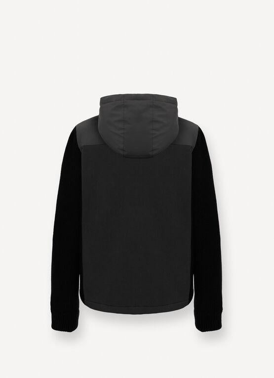 Giacchetto con cappuccio e maniche in maglia blu uomo