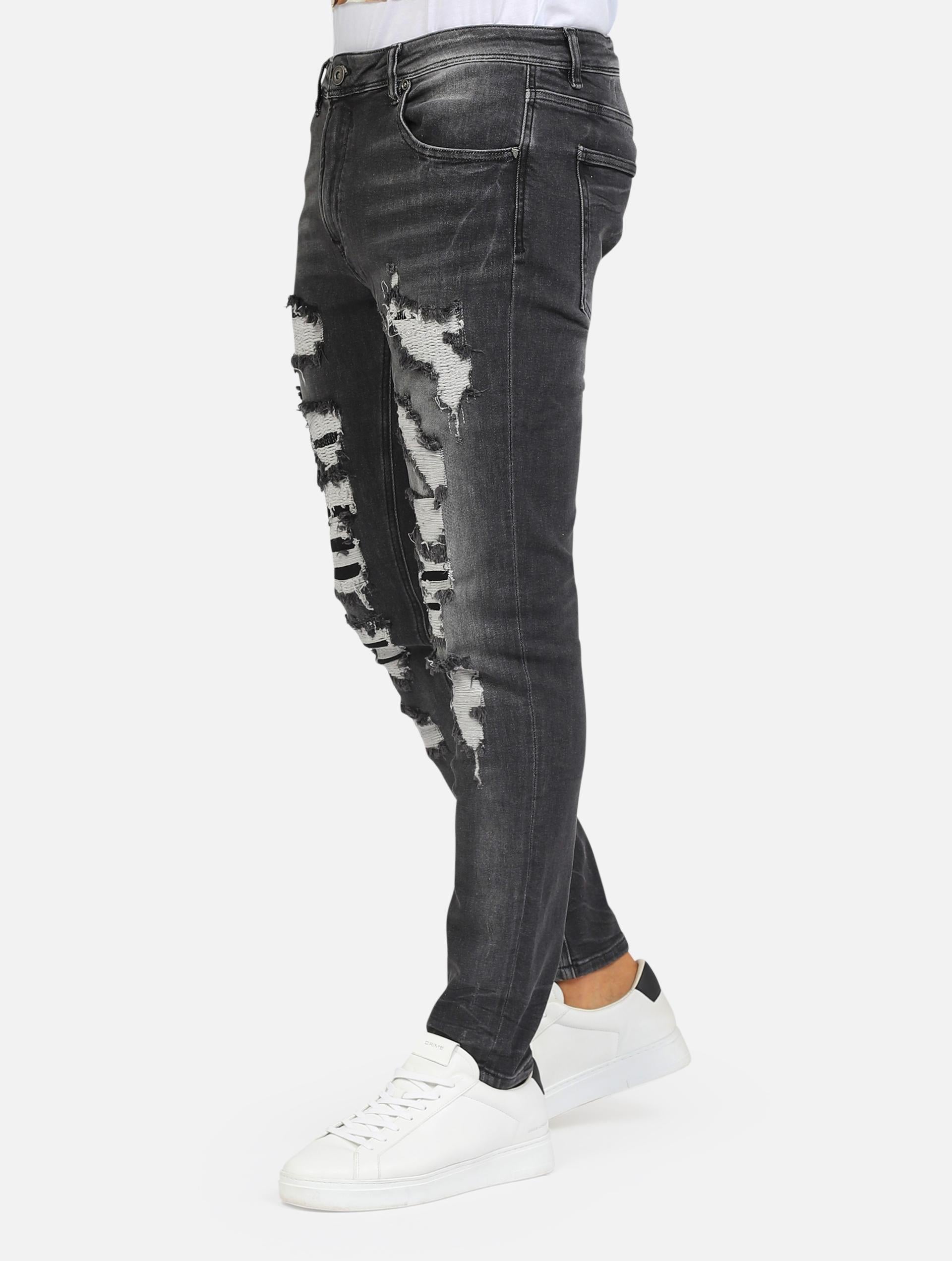 Jeans kevin skinny fit con strappi e cuciture nero uomo