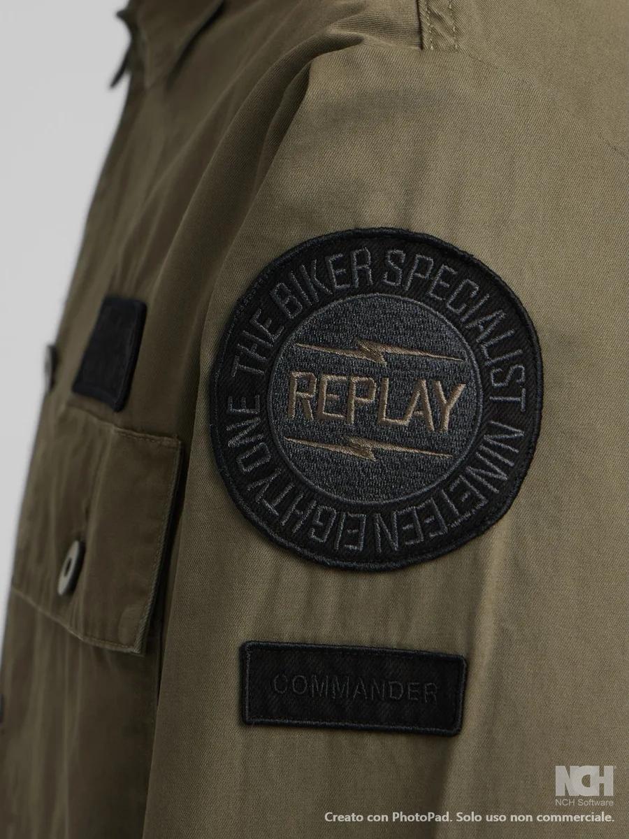 Giubbino militare due tasche applicate con pachwork verde uomo