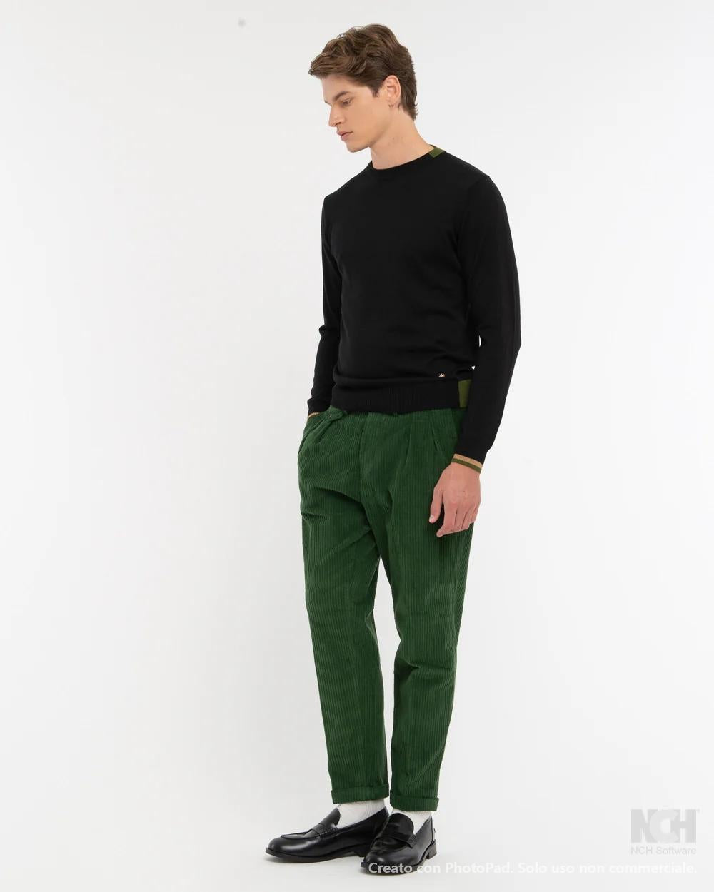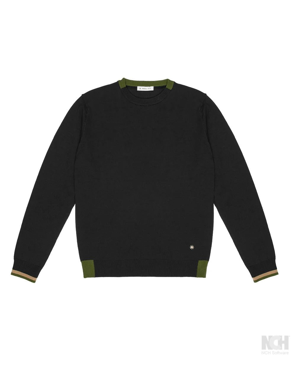 Maglia girocollo rifinitura collo bicolore nero uomo