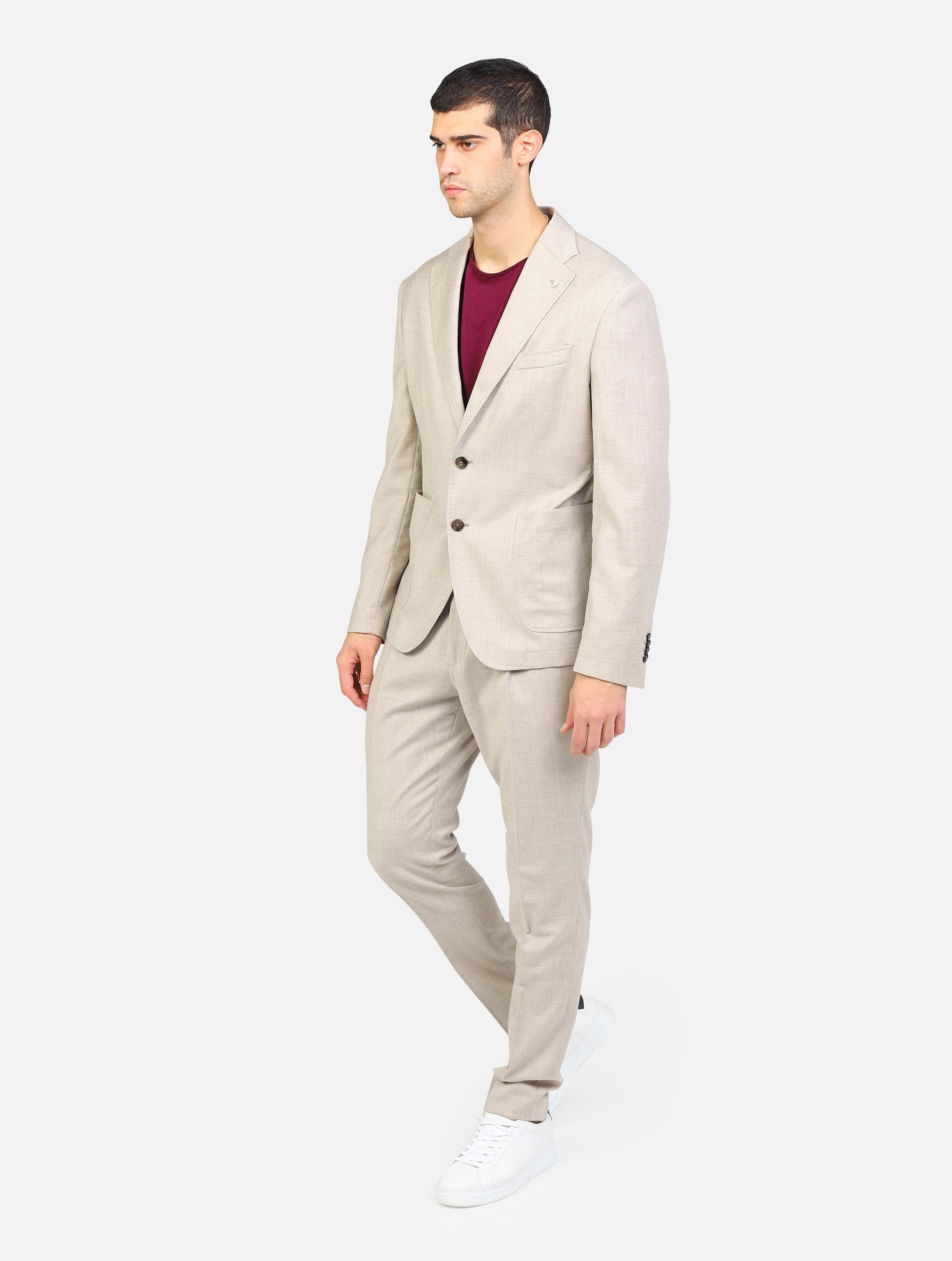 Abito classico con giacca con doppio bottone beige uomo