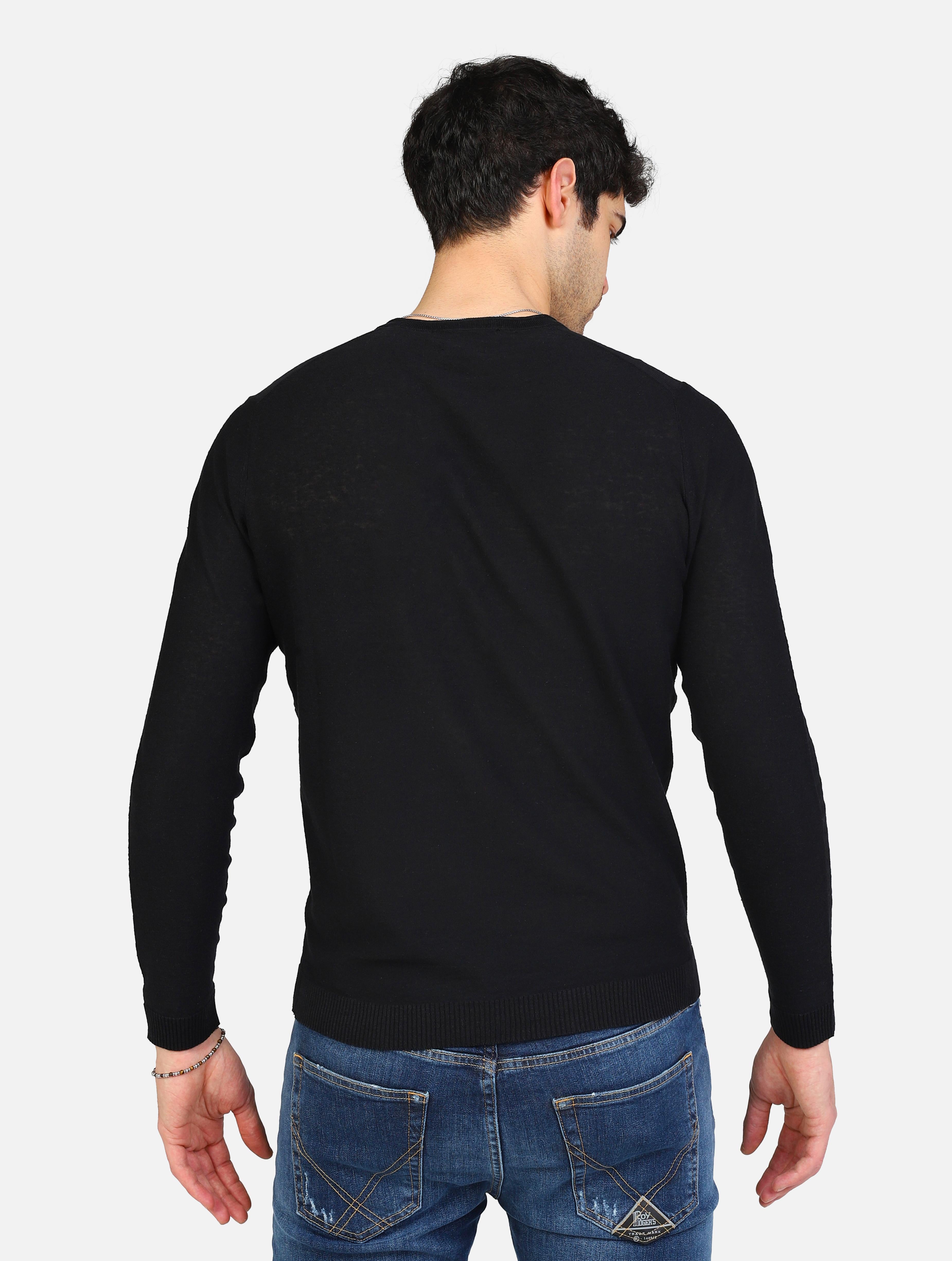 Art mk890014: maglia girocollo manica lunga misto lino nero uomo