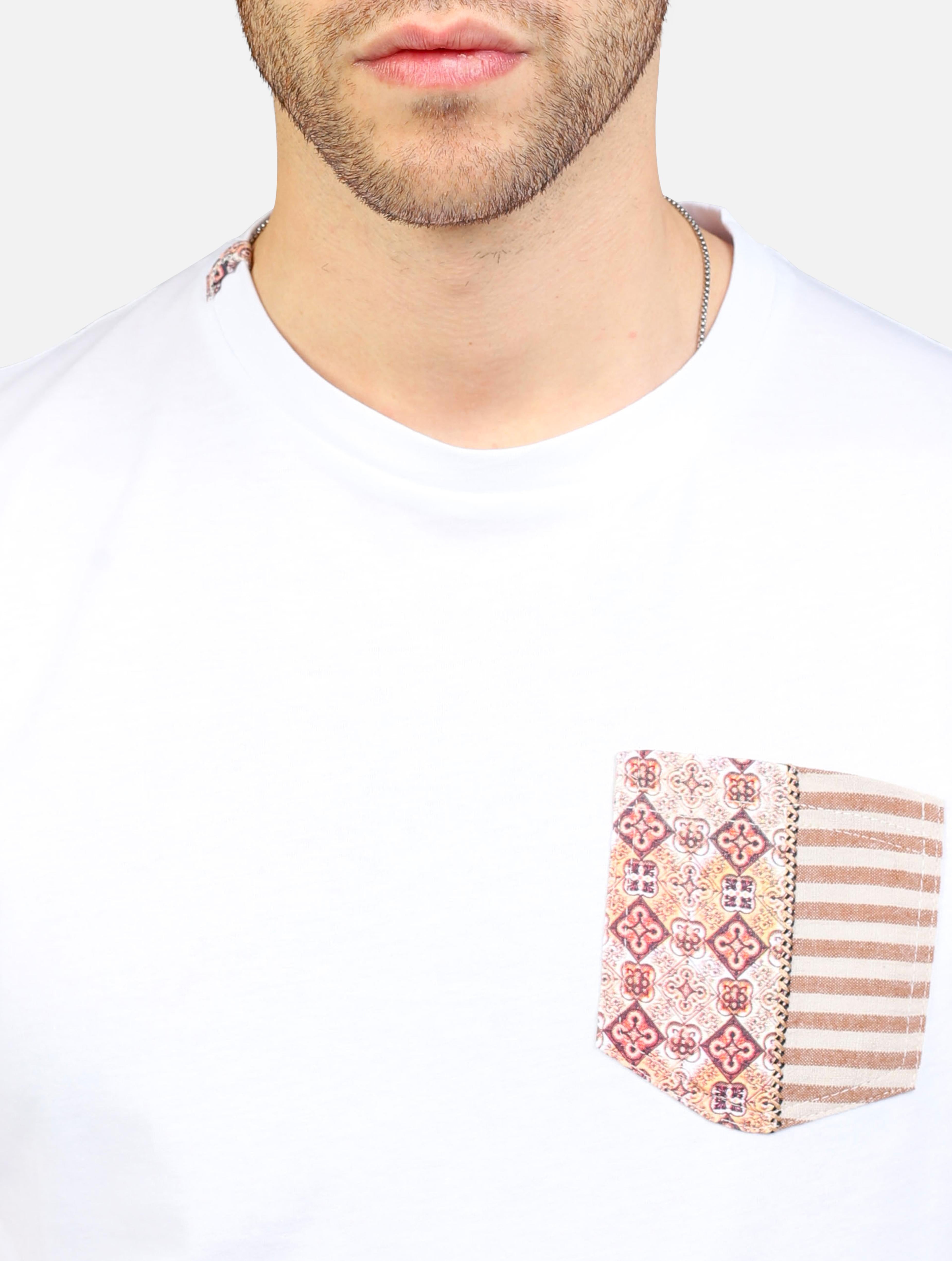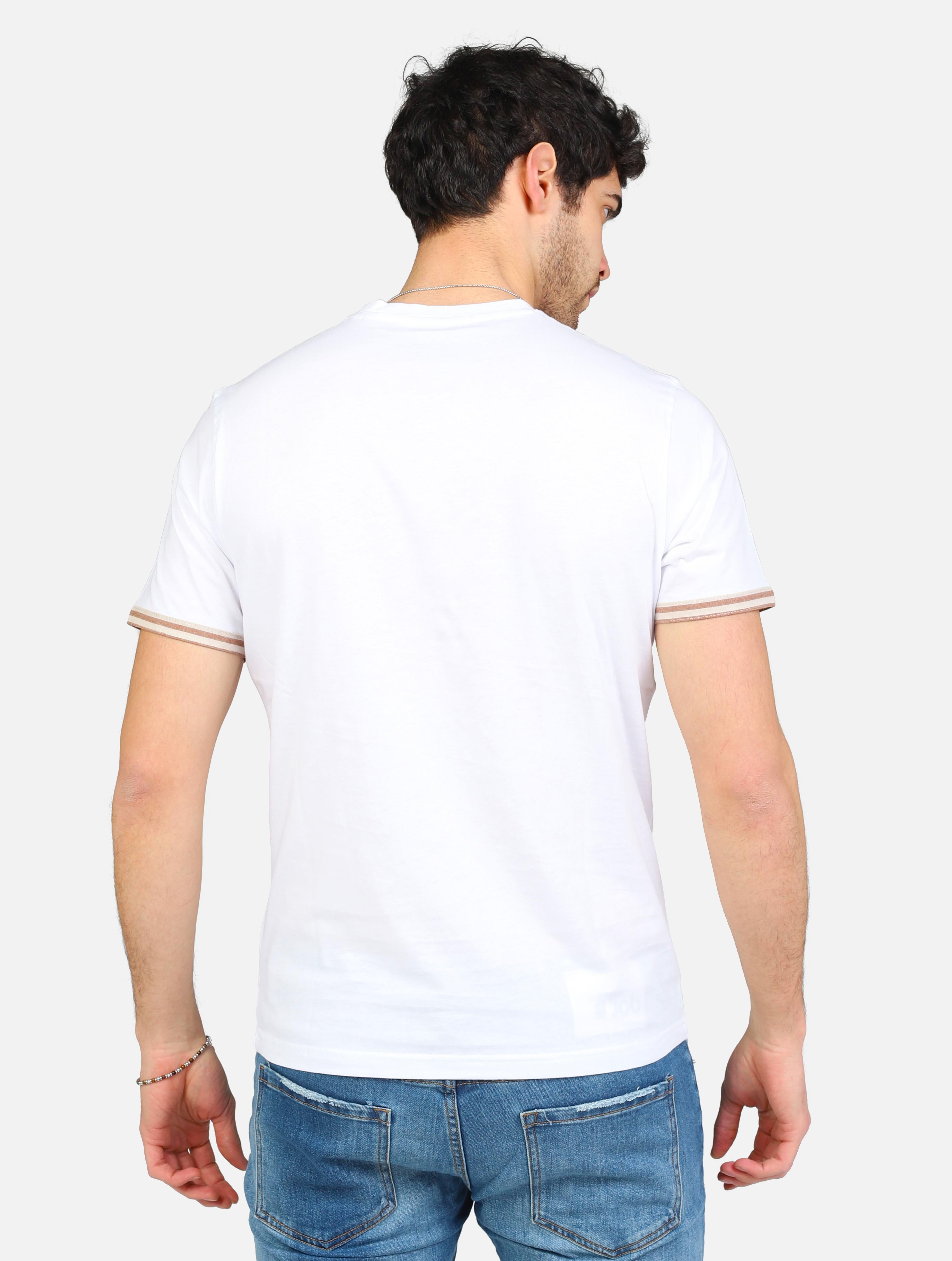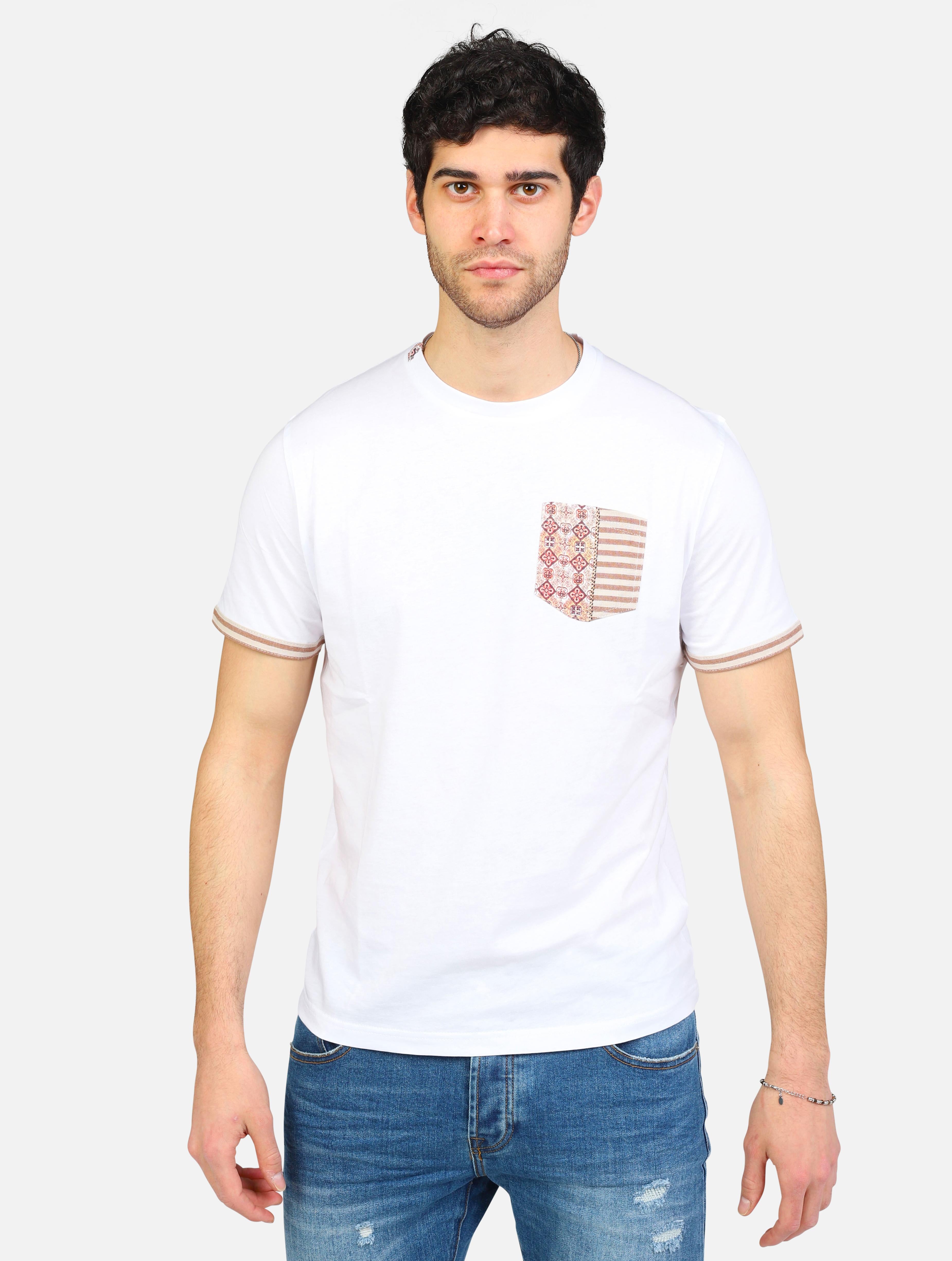 Art mk891042: t-shirt manica corta jersey con inserti in lino bianco uomo