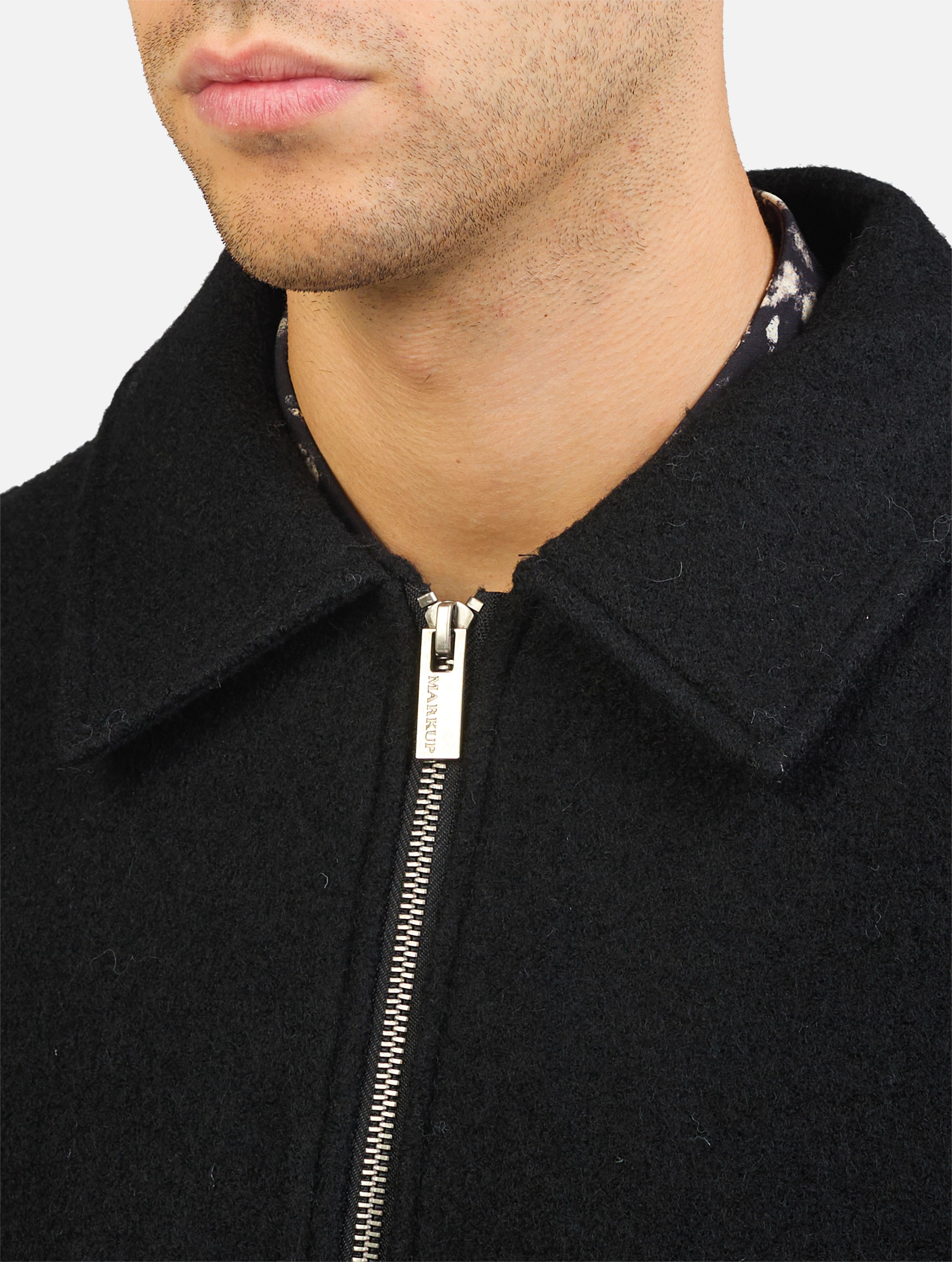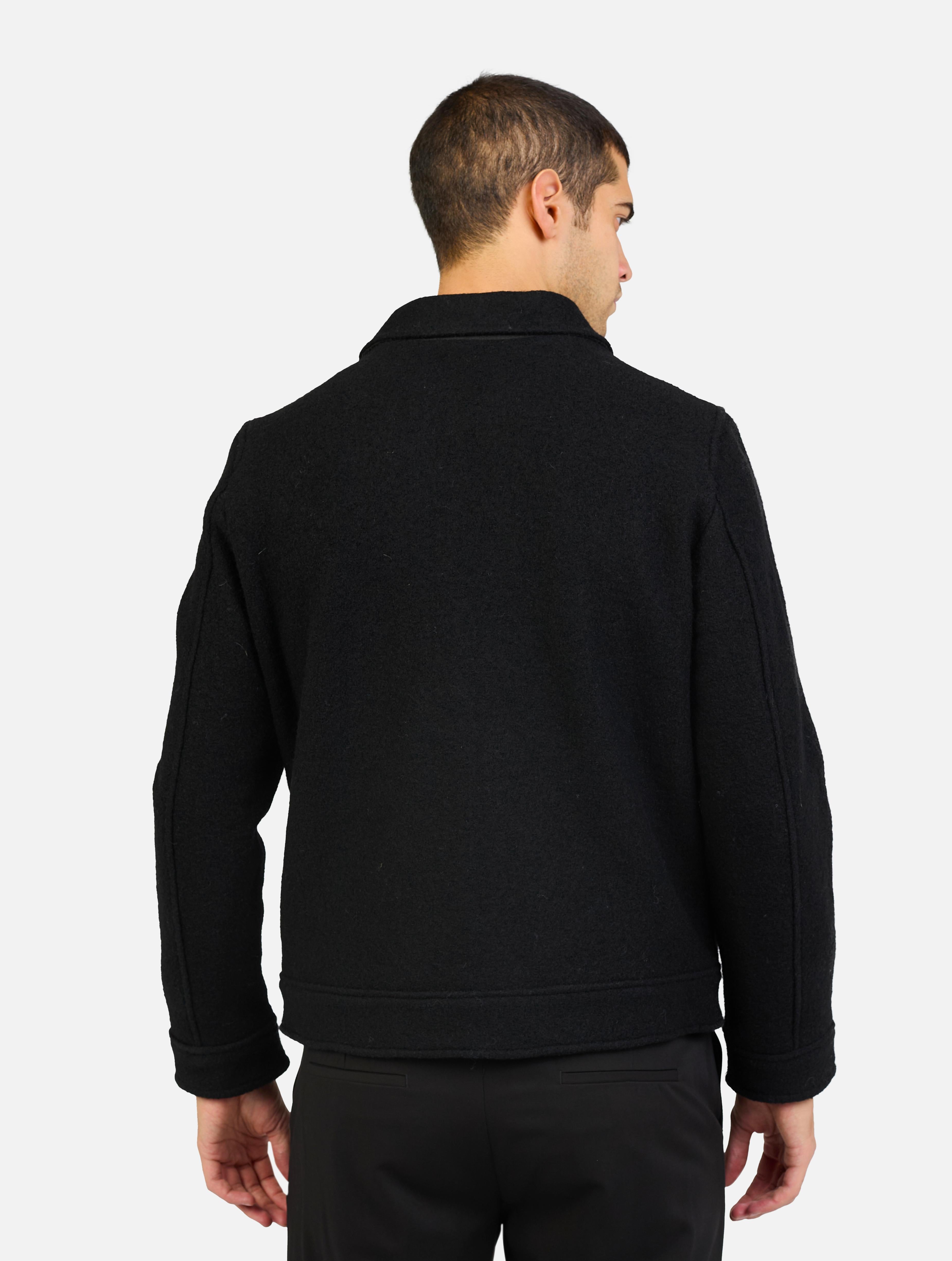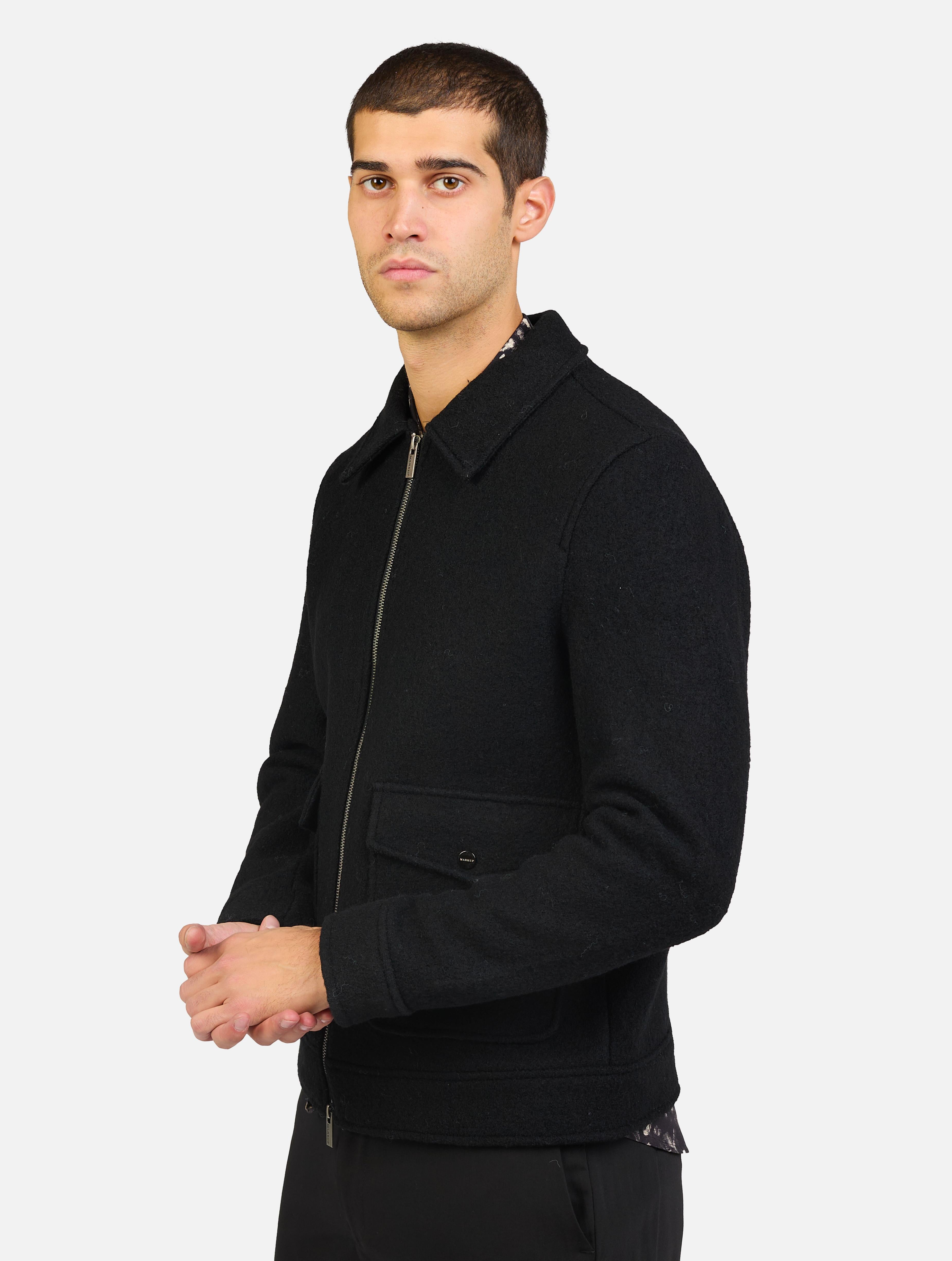 Giubbotto in pura lana con doppia tasca grande cucita nero uomo