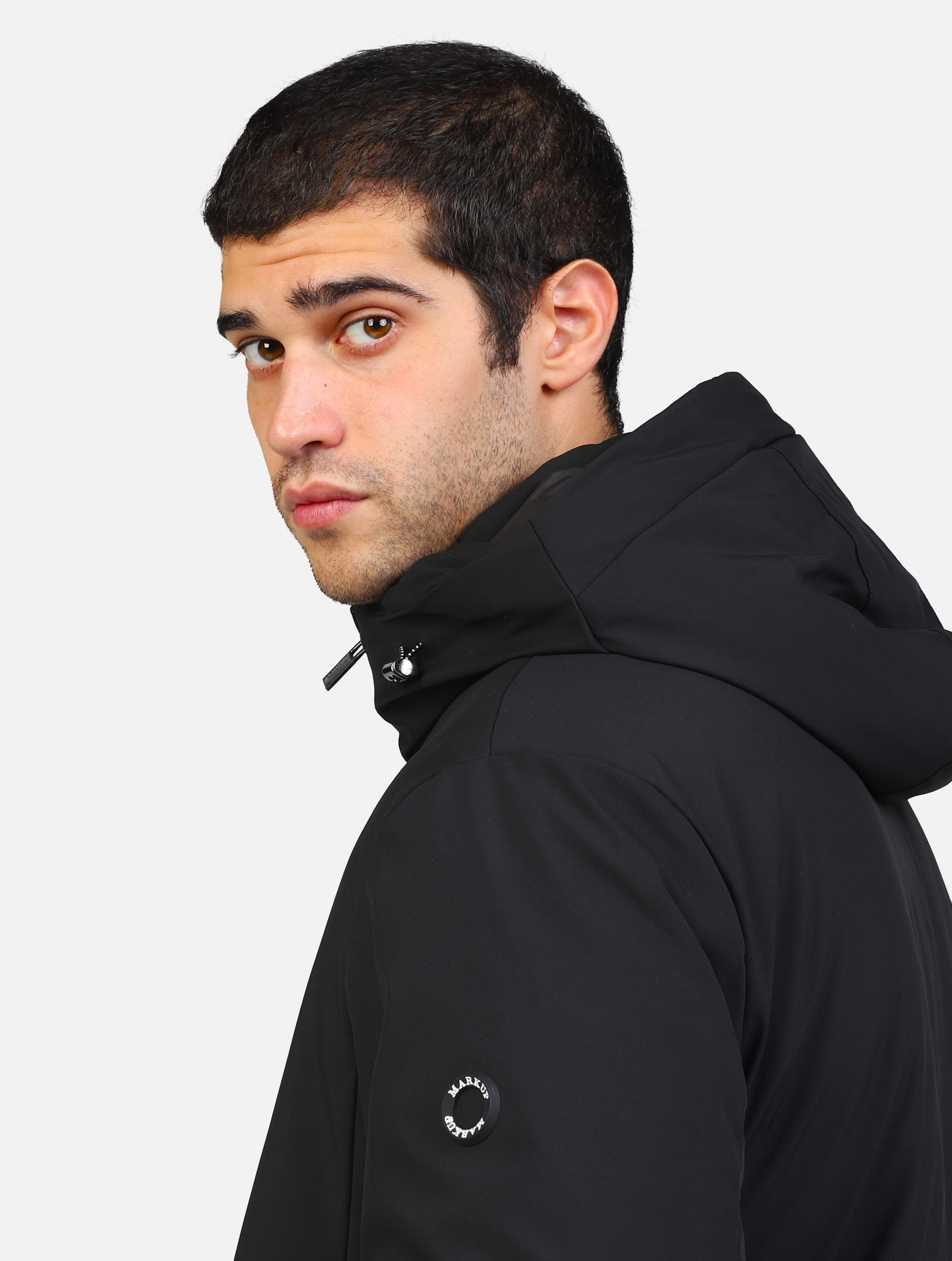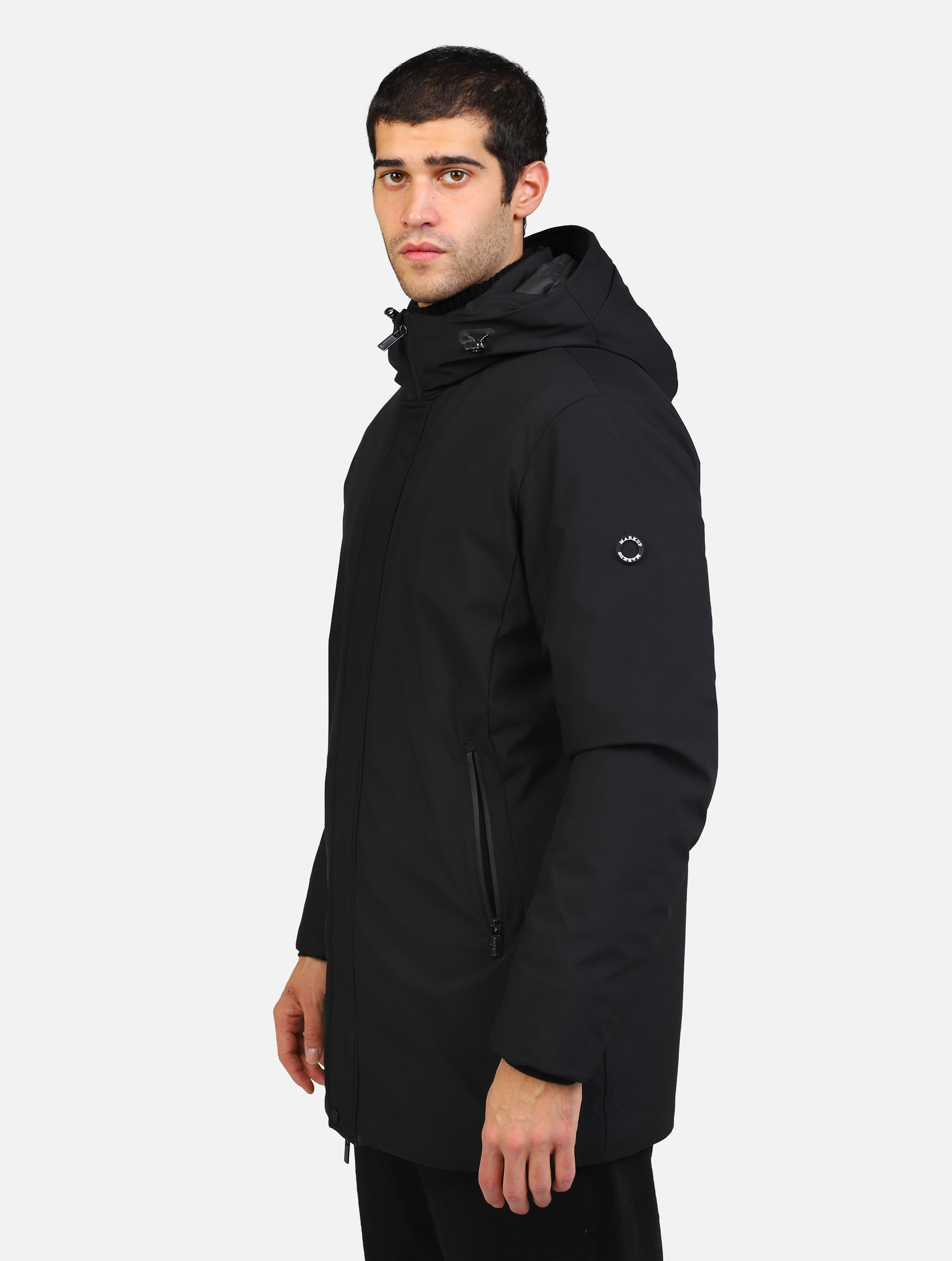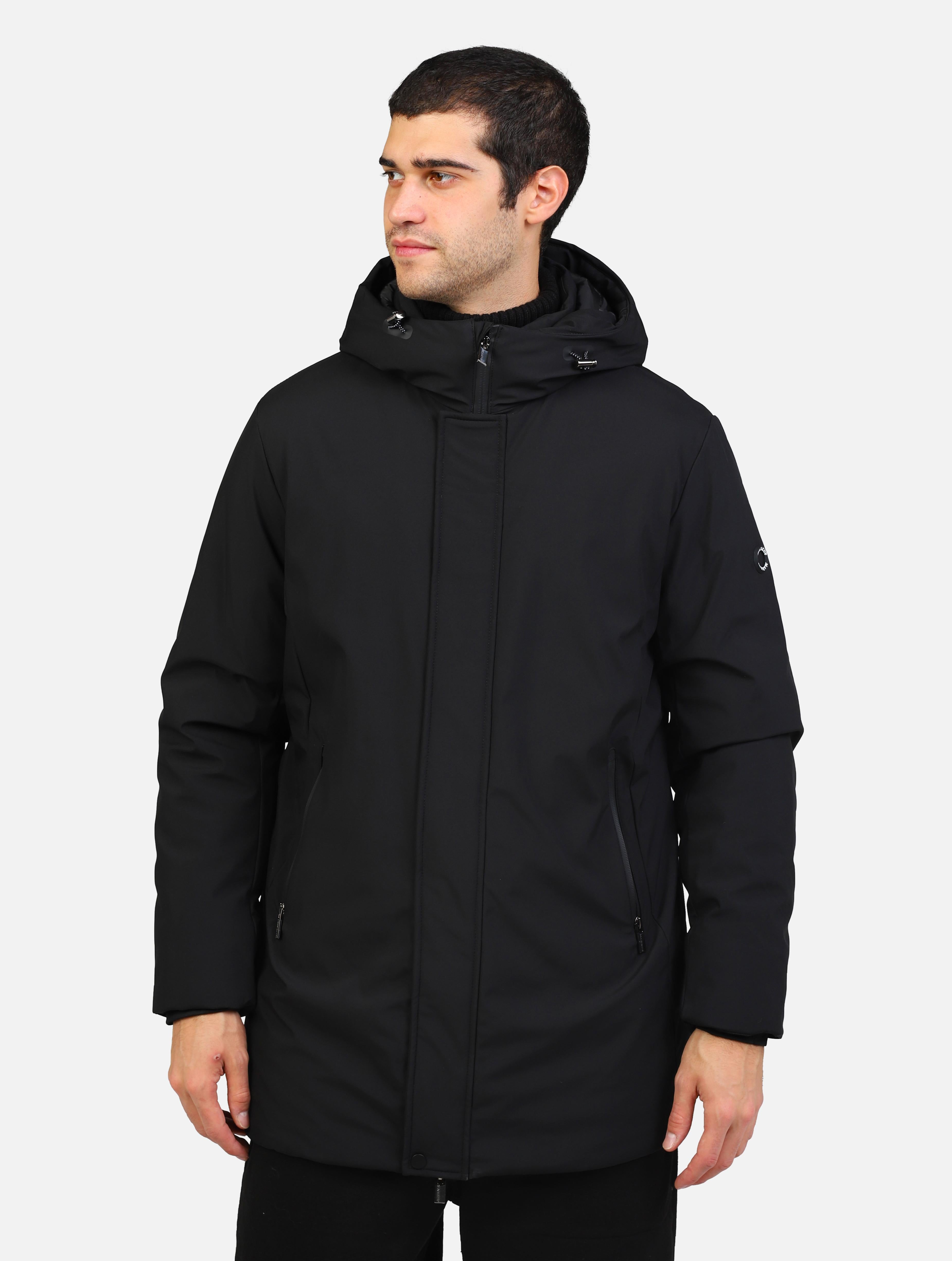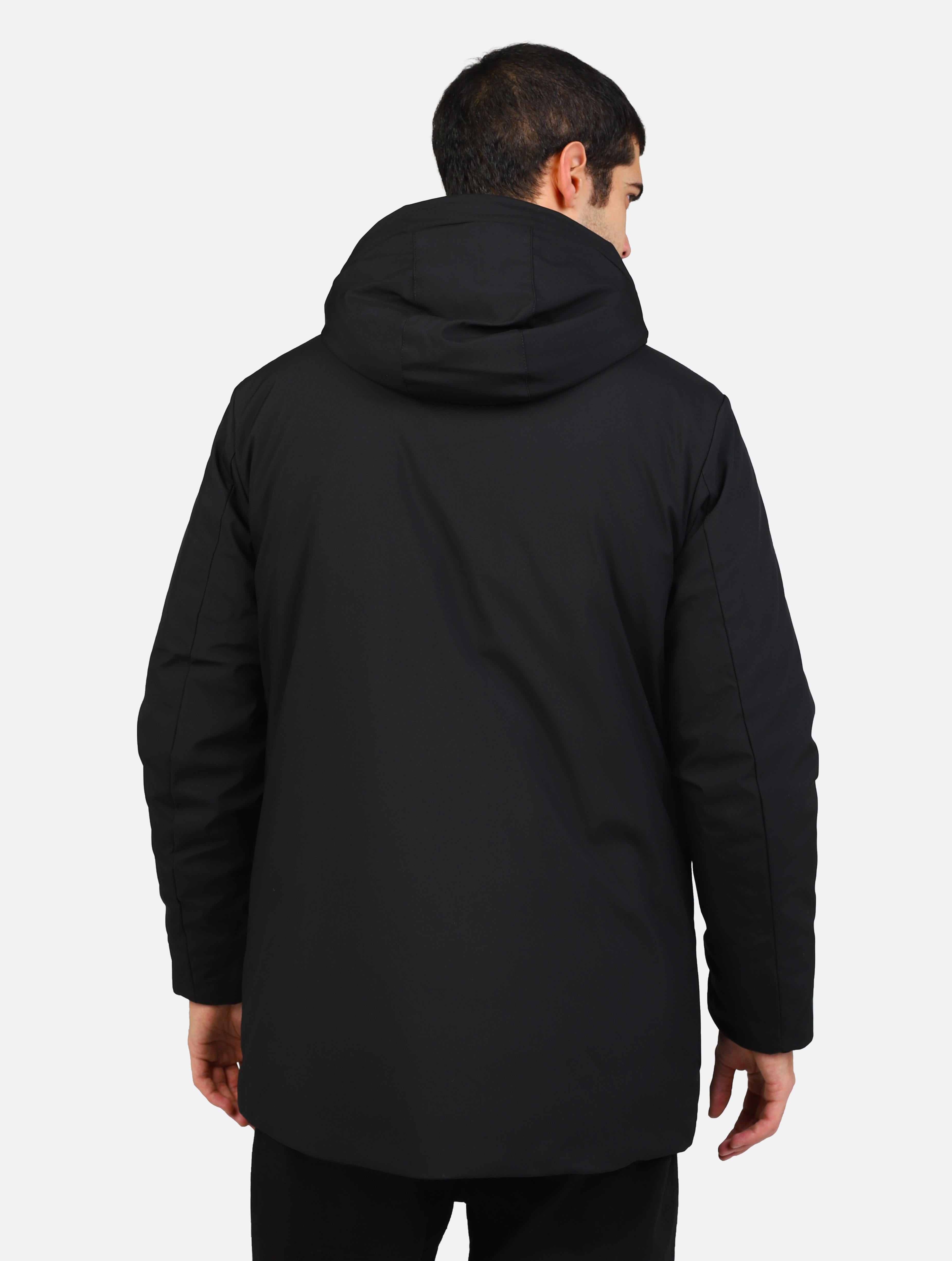 Parka lungo tessuto tecnico nero uomo