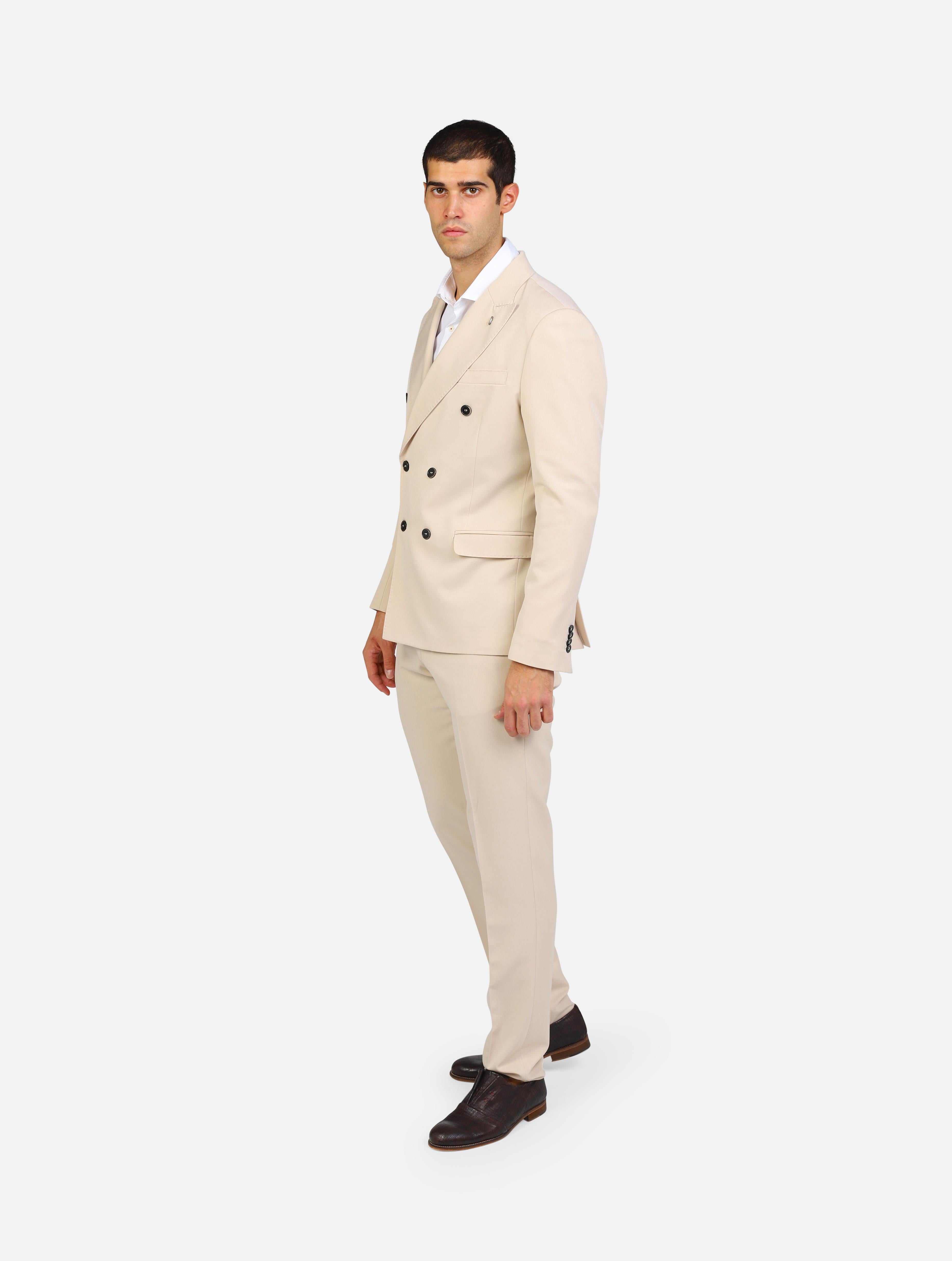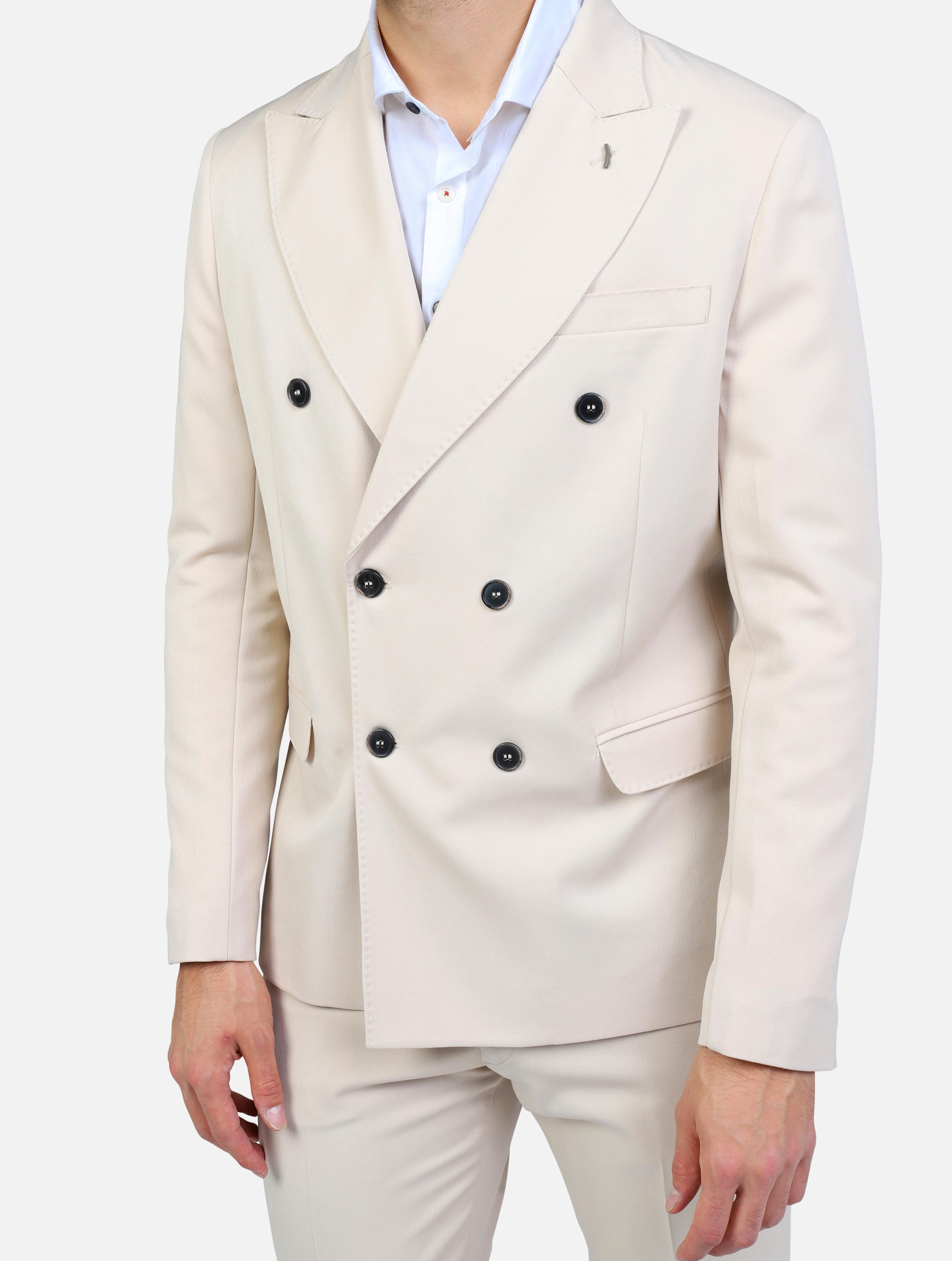 Abito con giacca doppiopetto rever lancia tasche file burro uomo