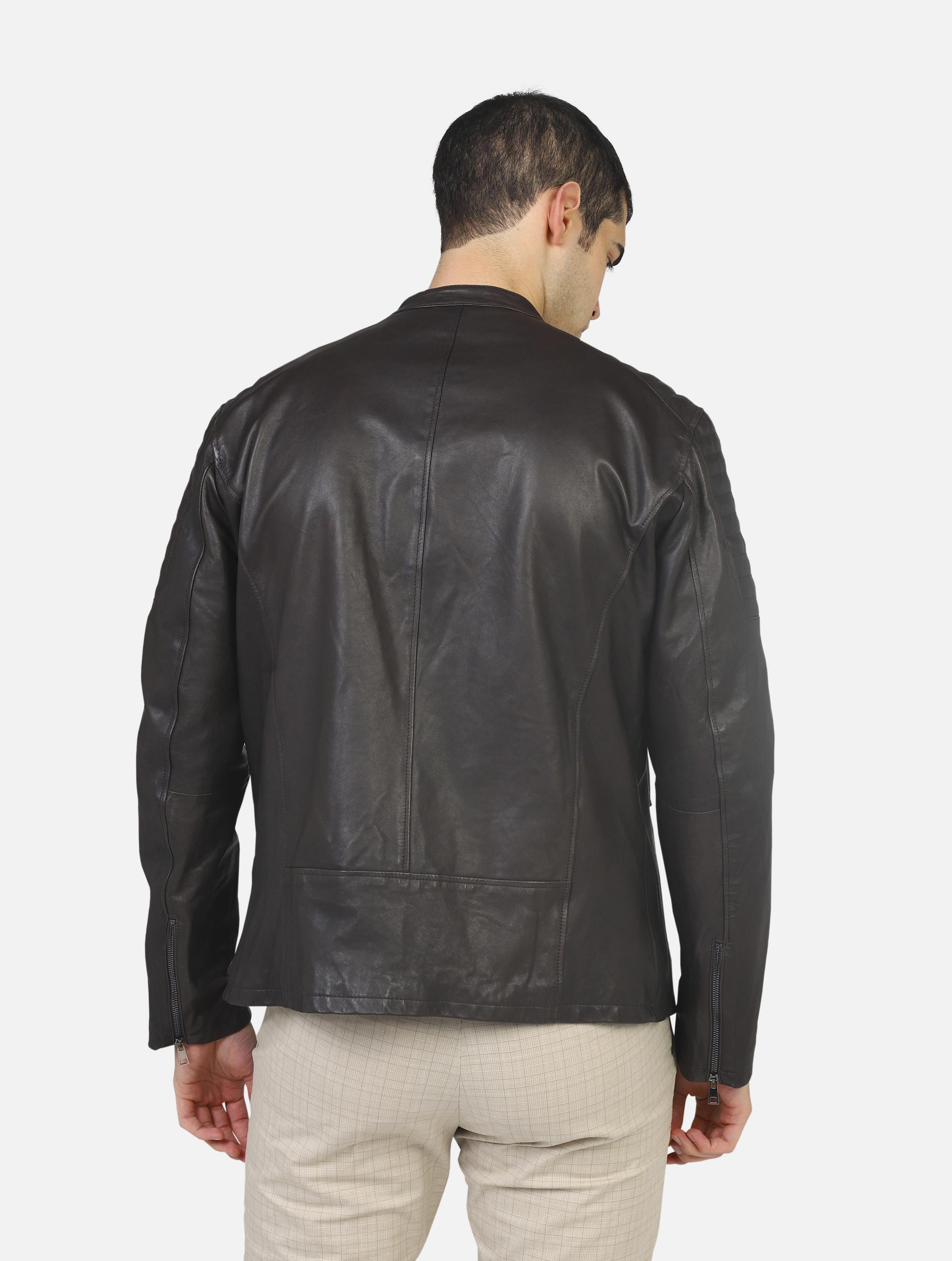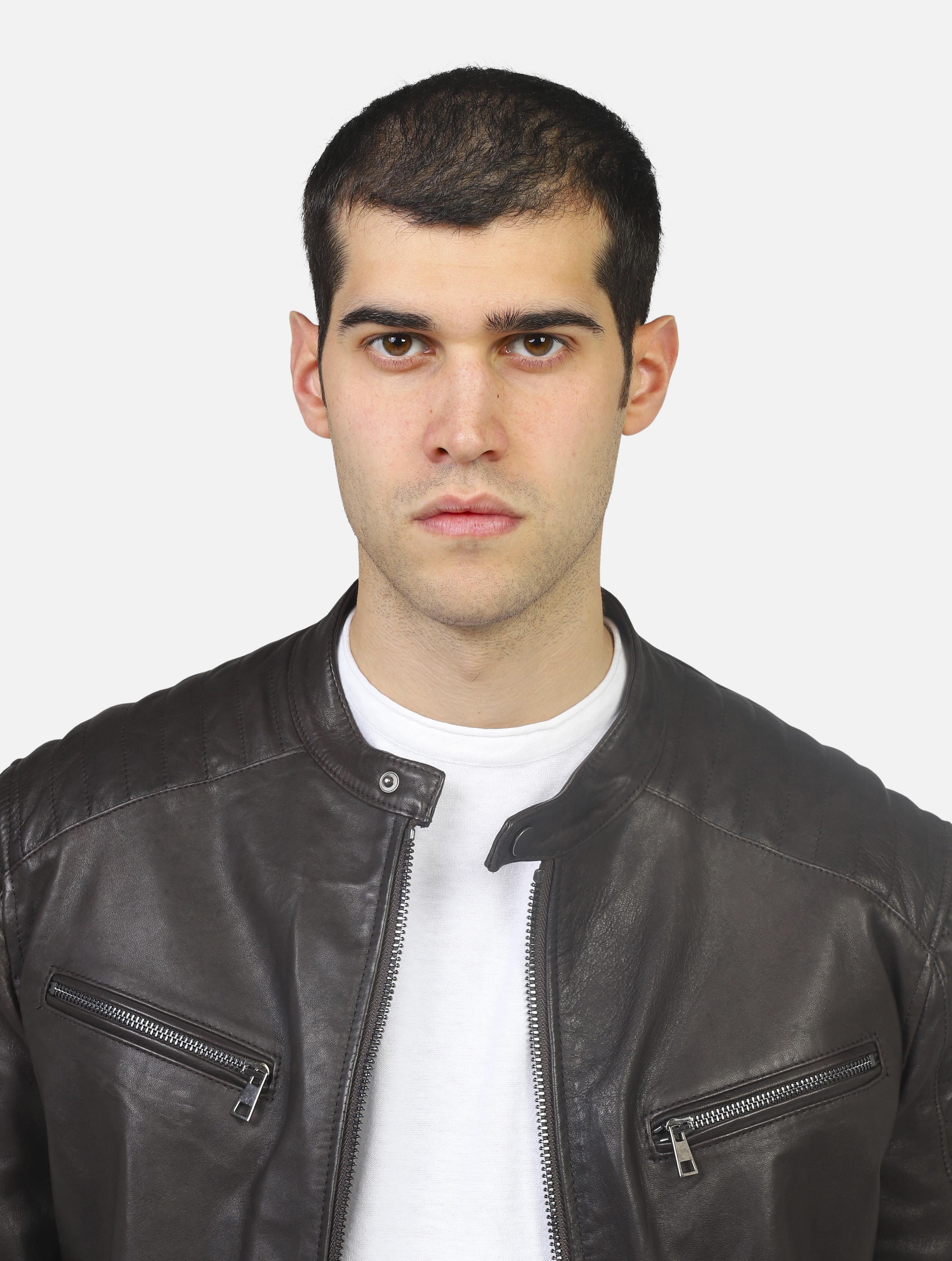 Art 1825 pelle nappa: biker in vera pelle brown uomo
