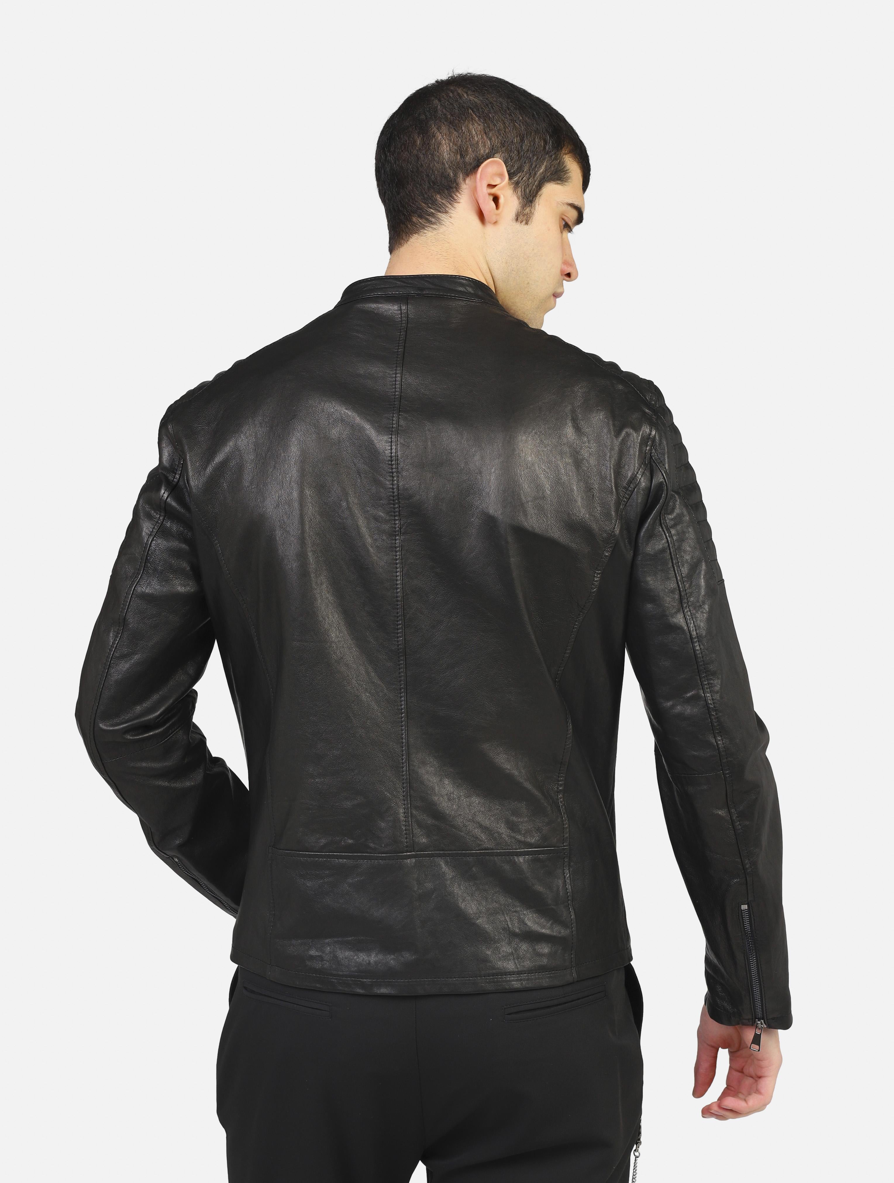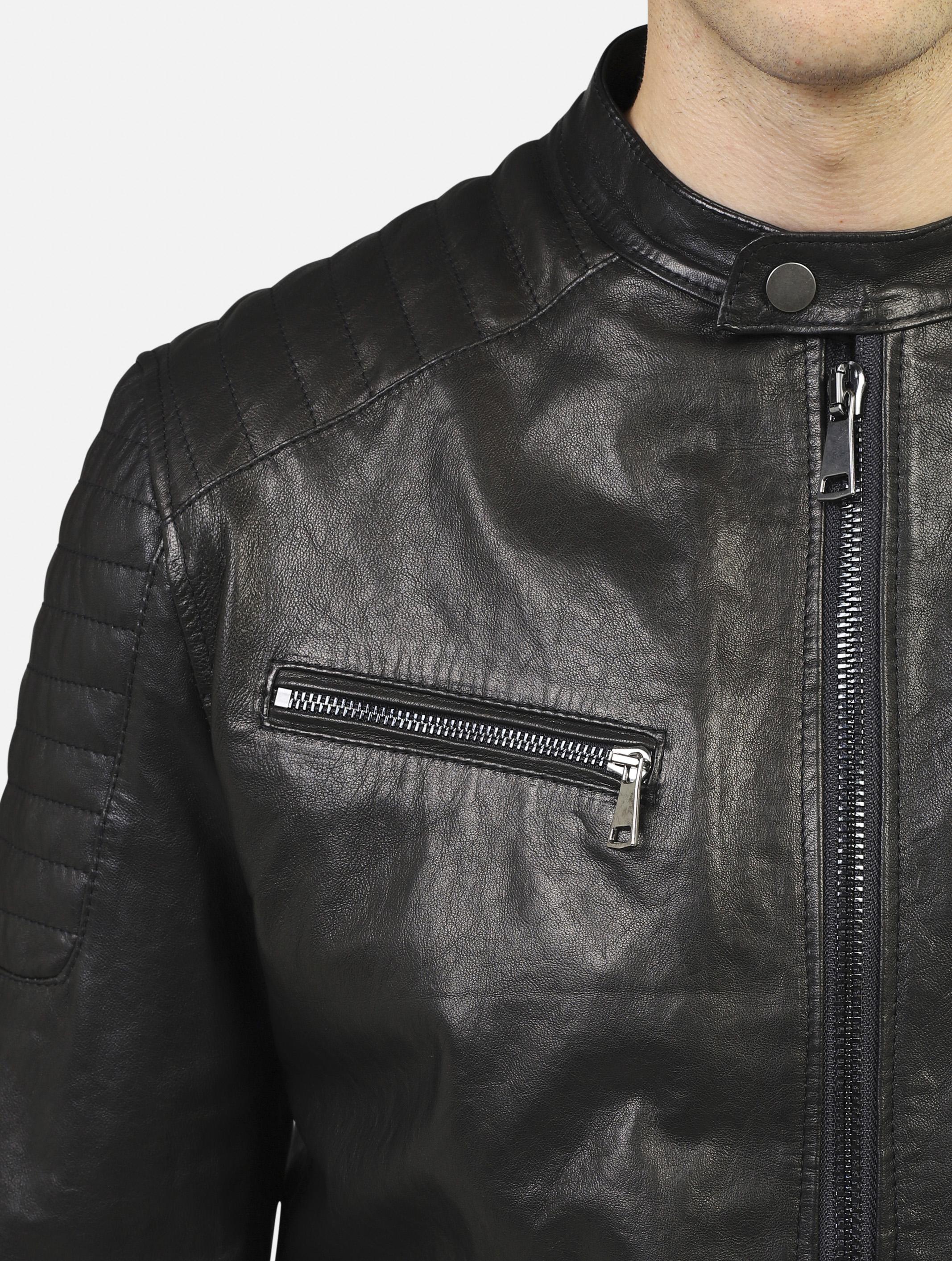 Art 1825 pelle nappa: biker in vera pelle black uomo