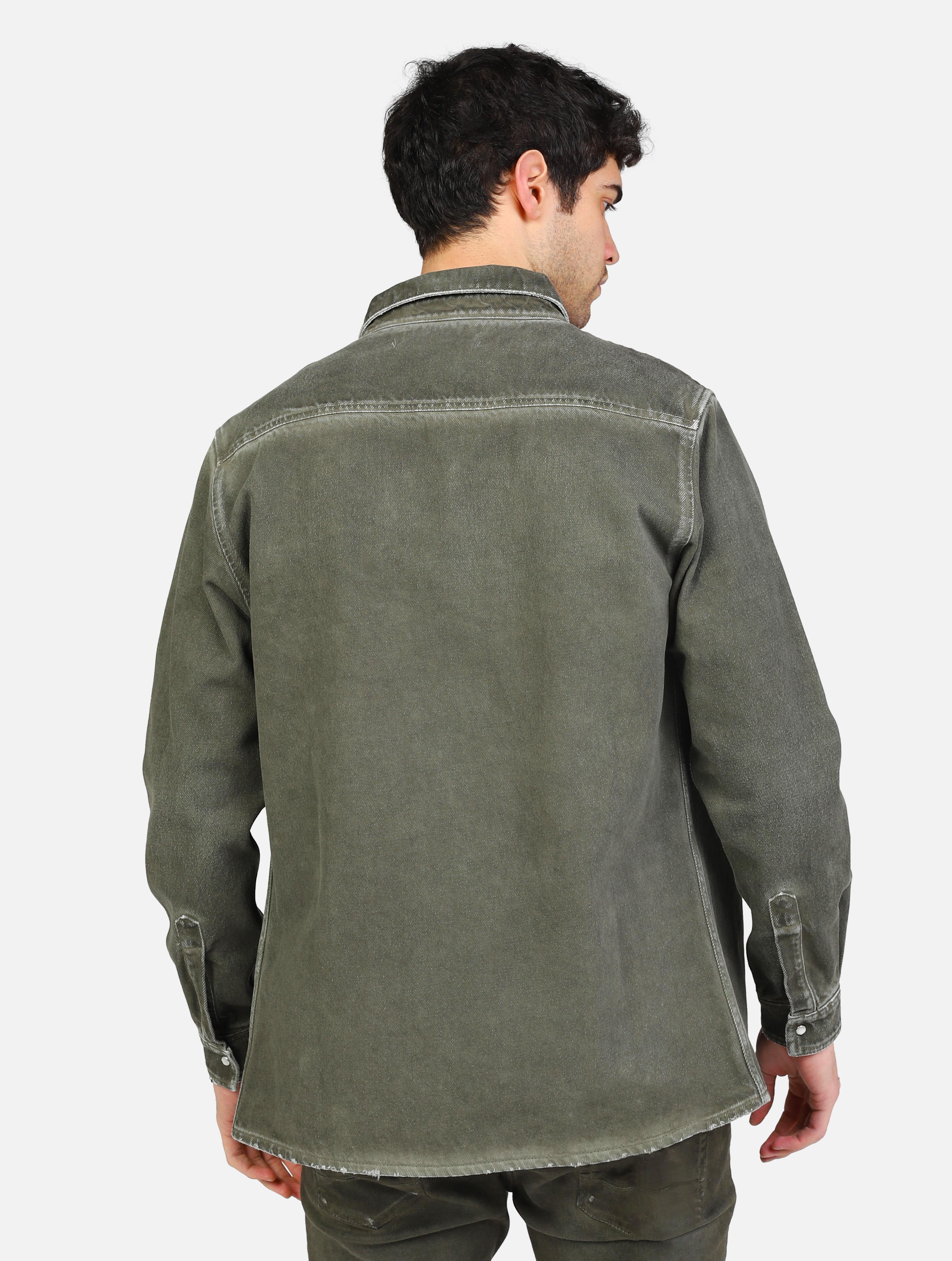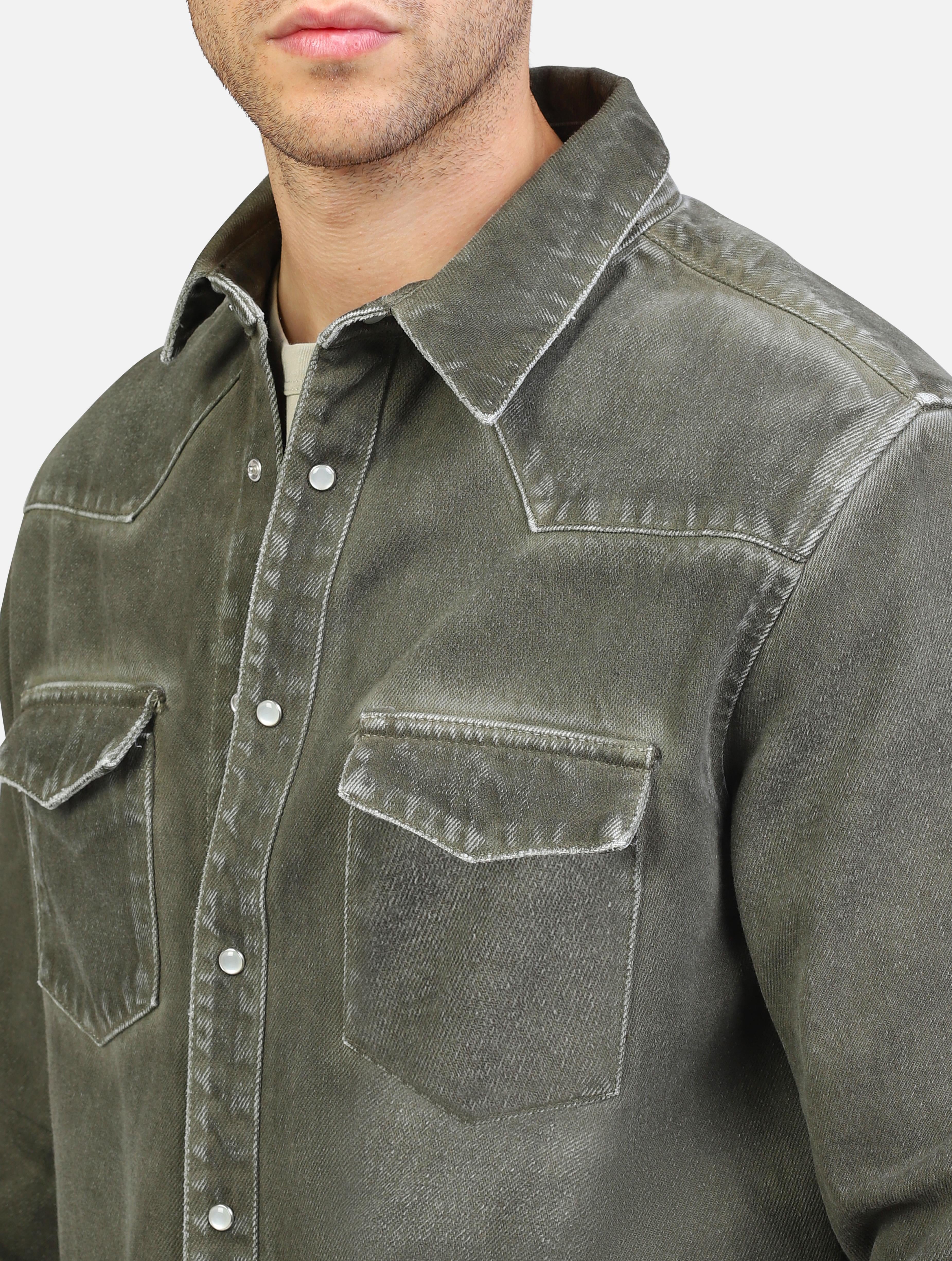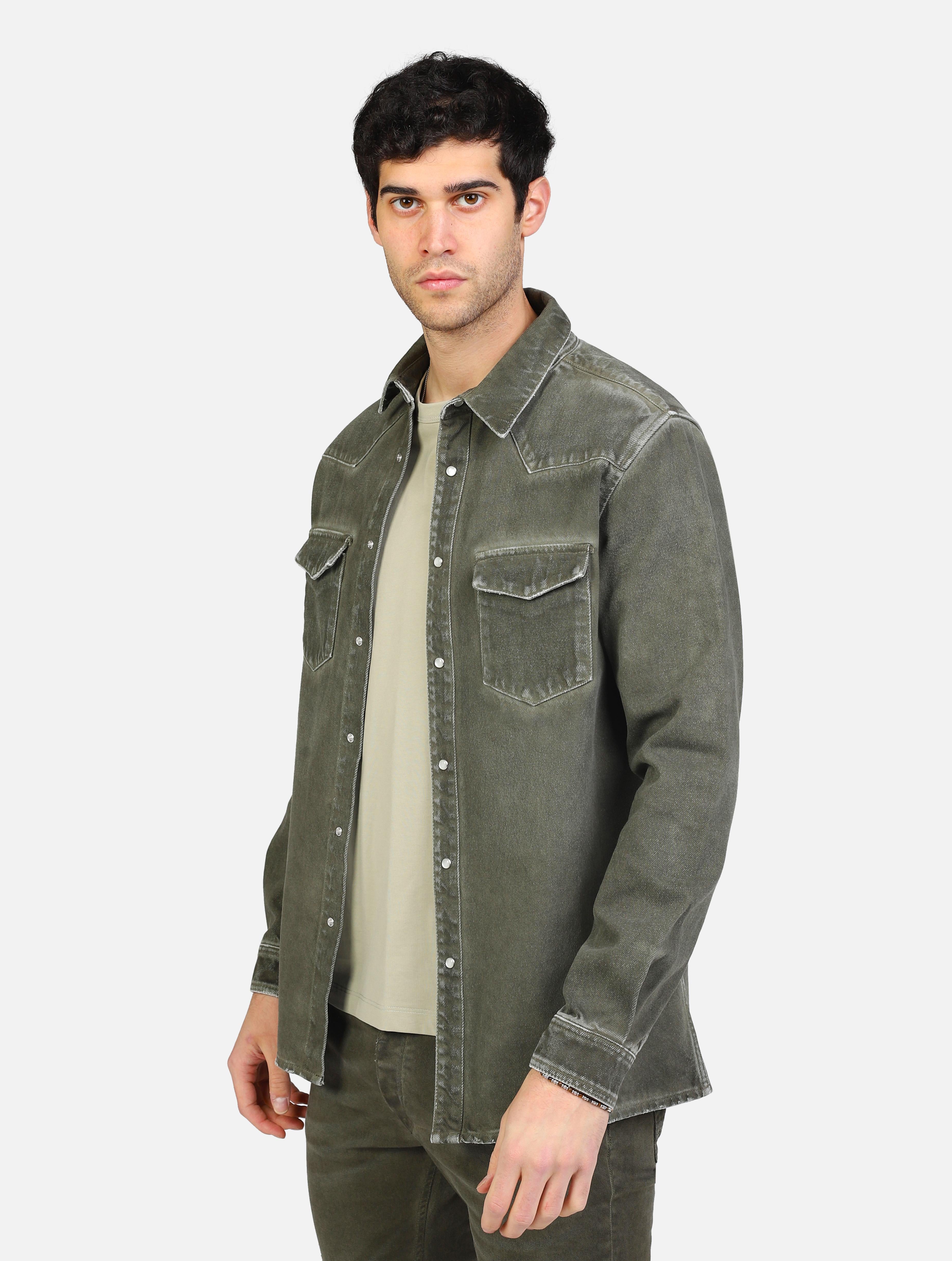 Art 12516191: giubbino jeans con doppio taschino e chiusura a bottoni verde uomo