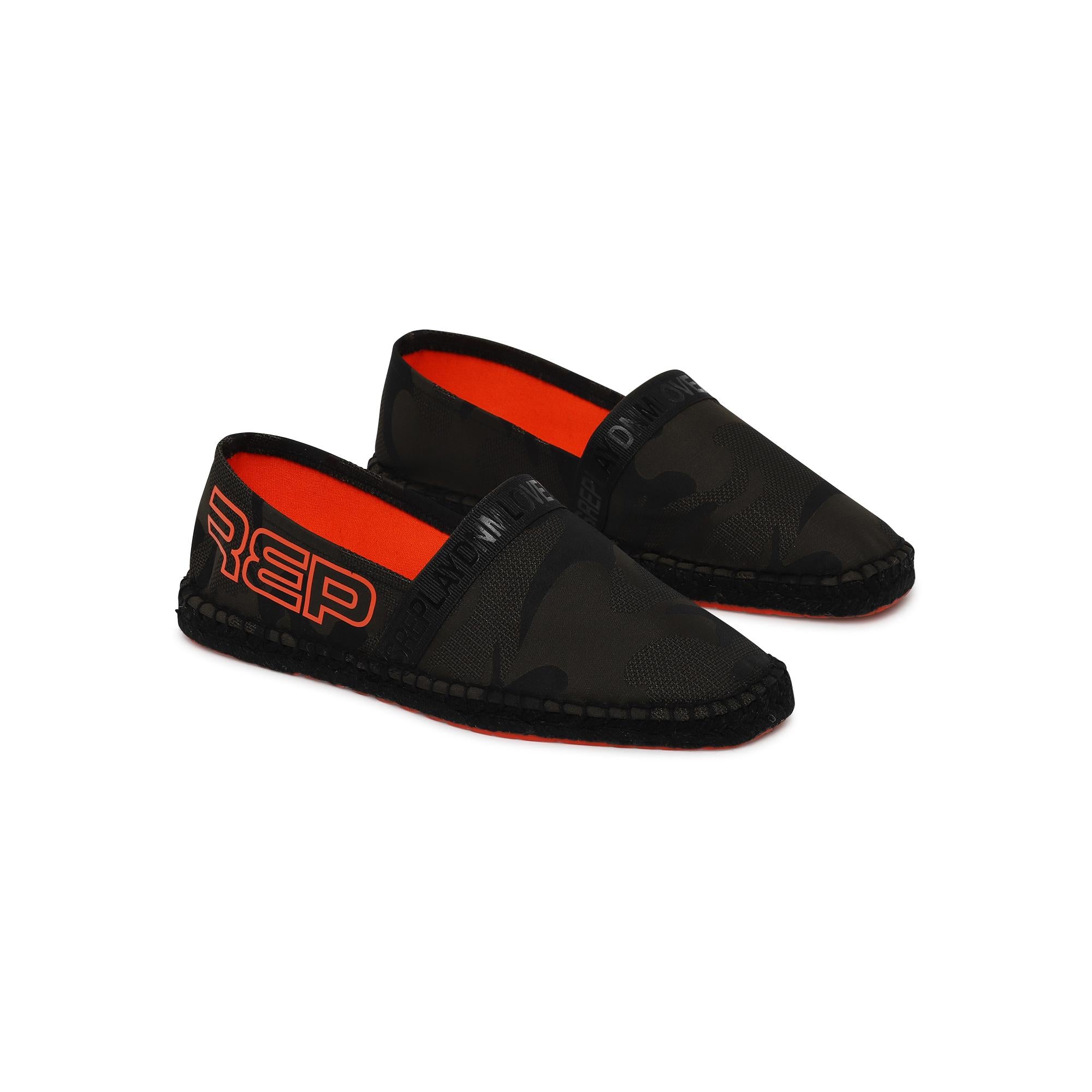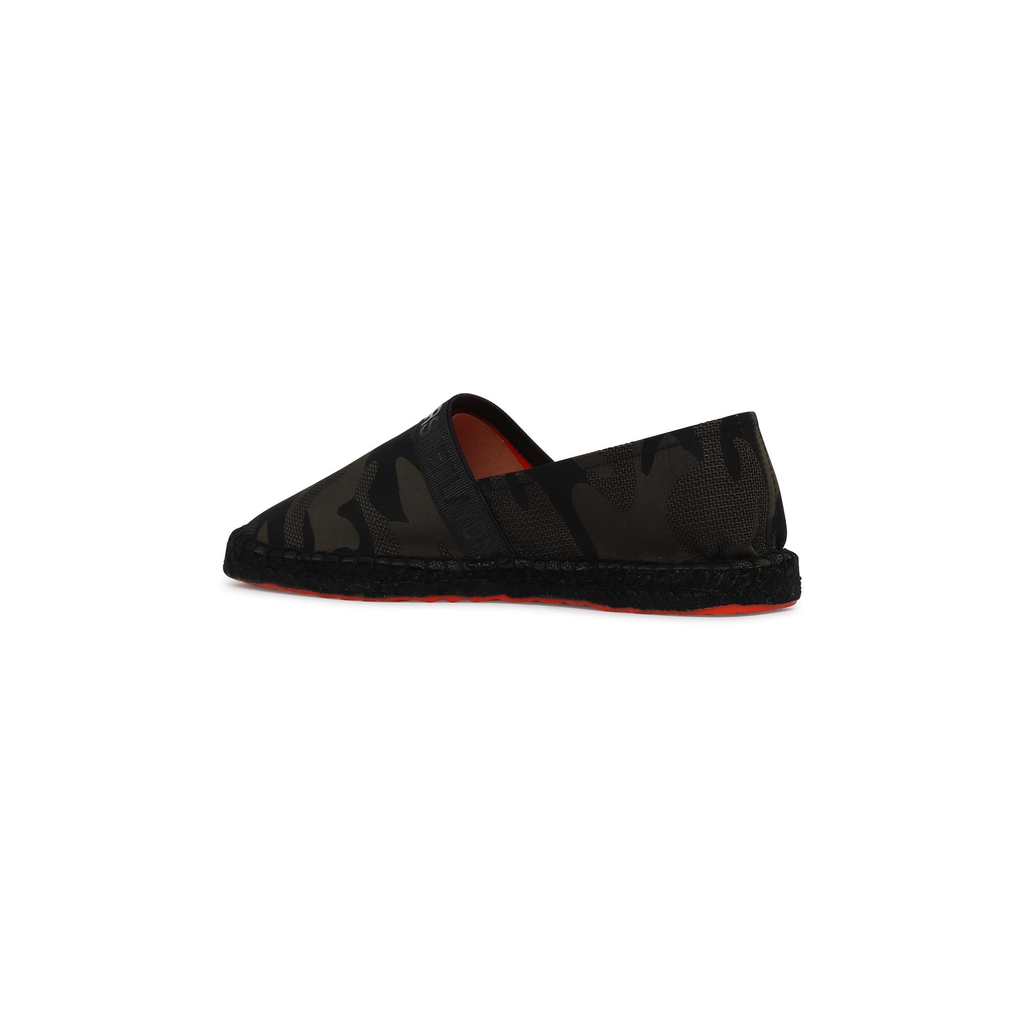 espadrilles slip-on da uomo cabo print. suola bassa in gomma con impunture a rilievo, tomaia in denim e maxi stampa logo sul retro.