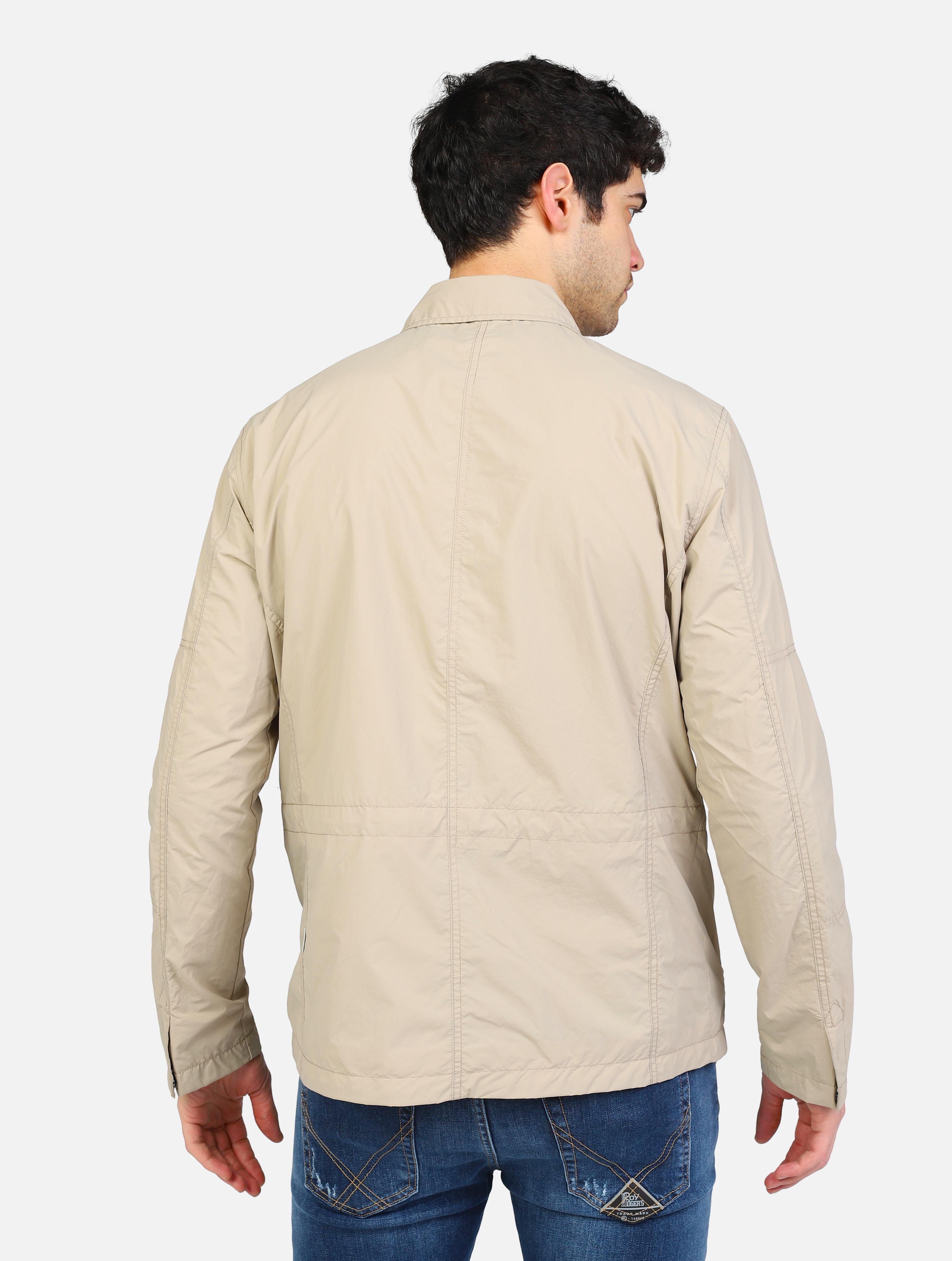 Art d32131m: giubbotto impermeabile in tessuto reciclabile con quattro tasche e chiusura zip beige uomo