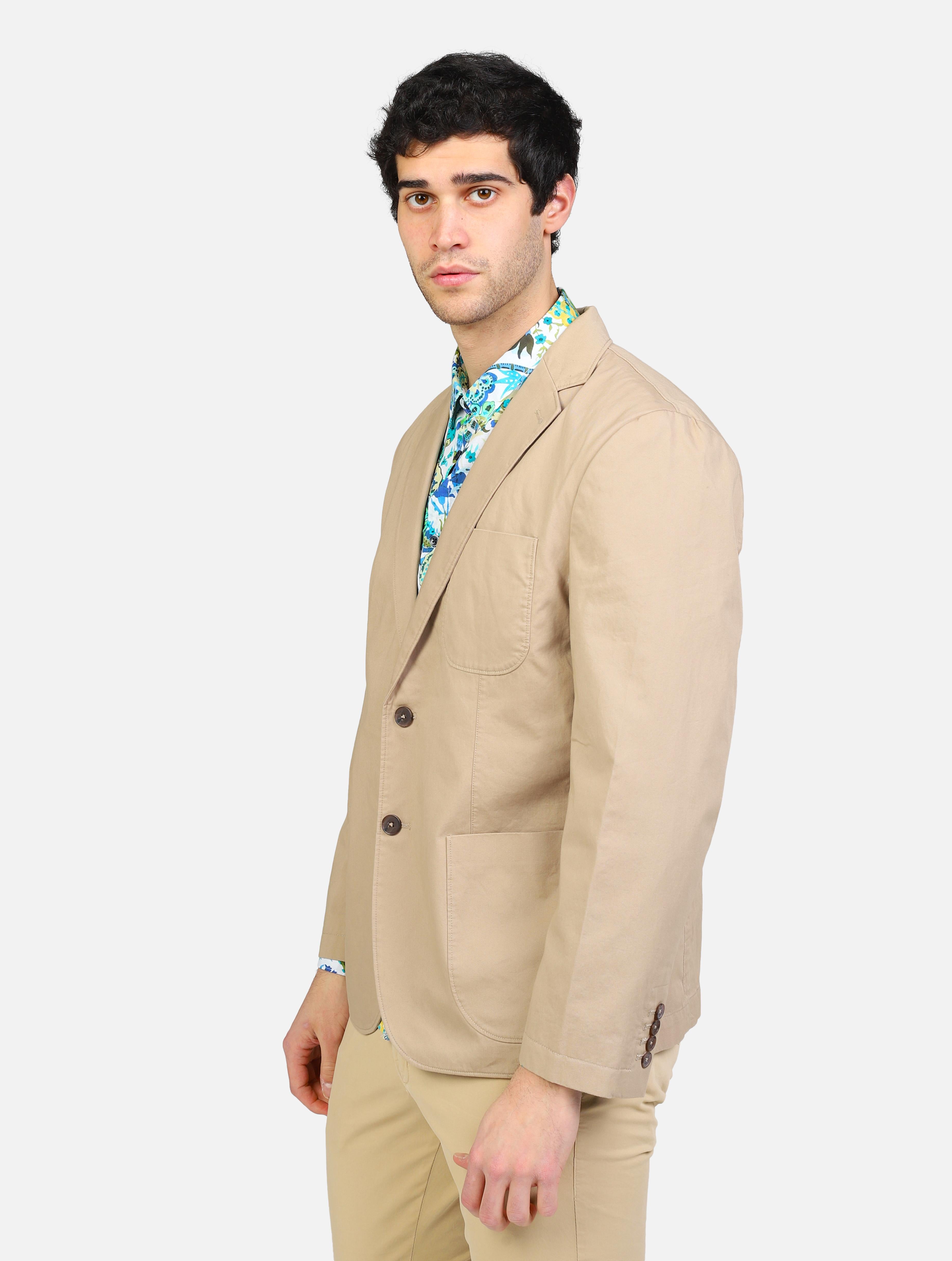 Art 16096399: giacca monopetto con chiusura a due bottoni, due tasche anteriori e taschino; regular fit beige uomo