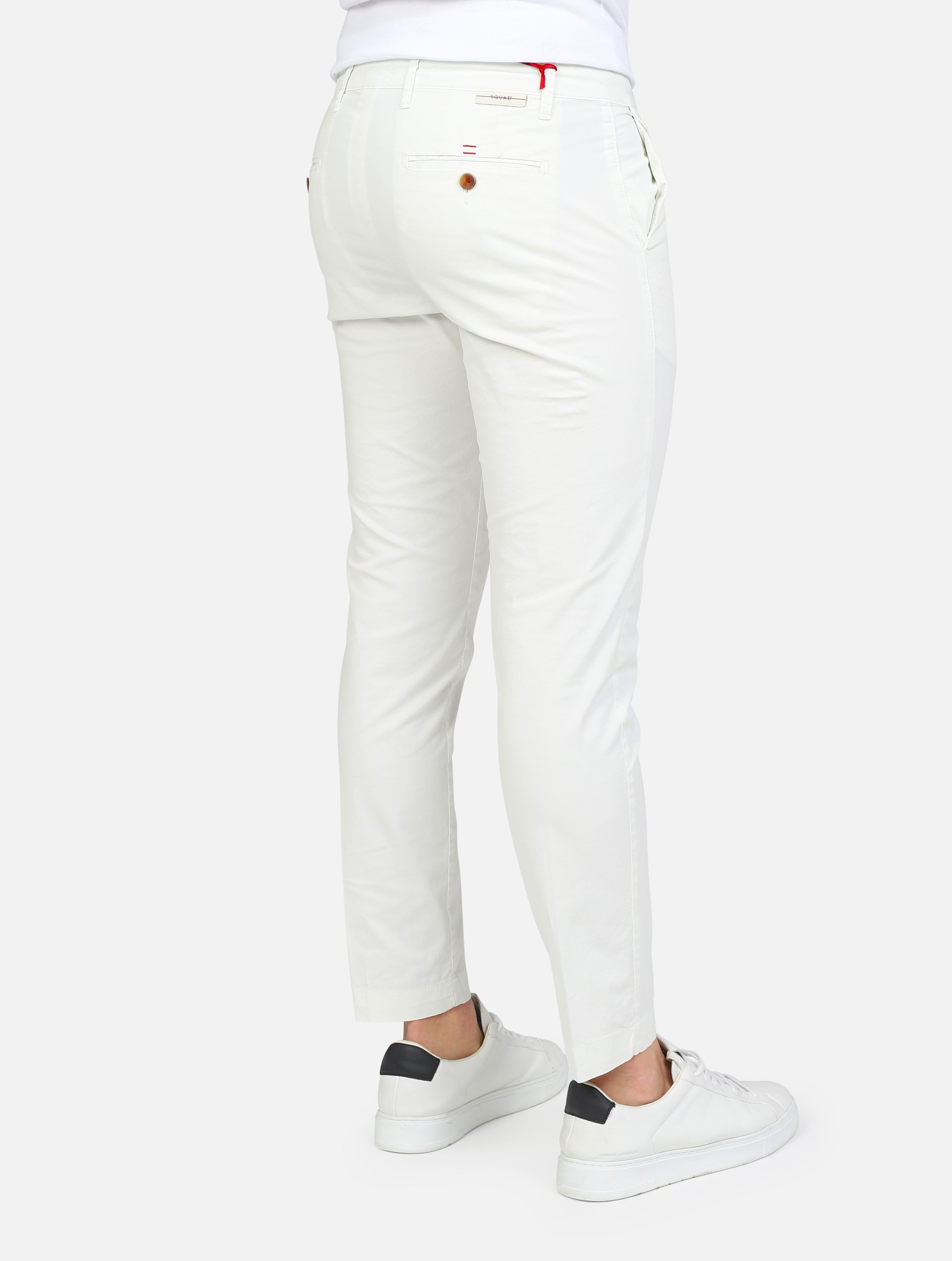 Art cile 225001: pantalone chino con tasche a taglio, taschino ricamato con bottone a fiore panna uomo