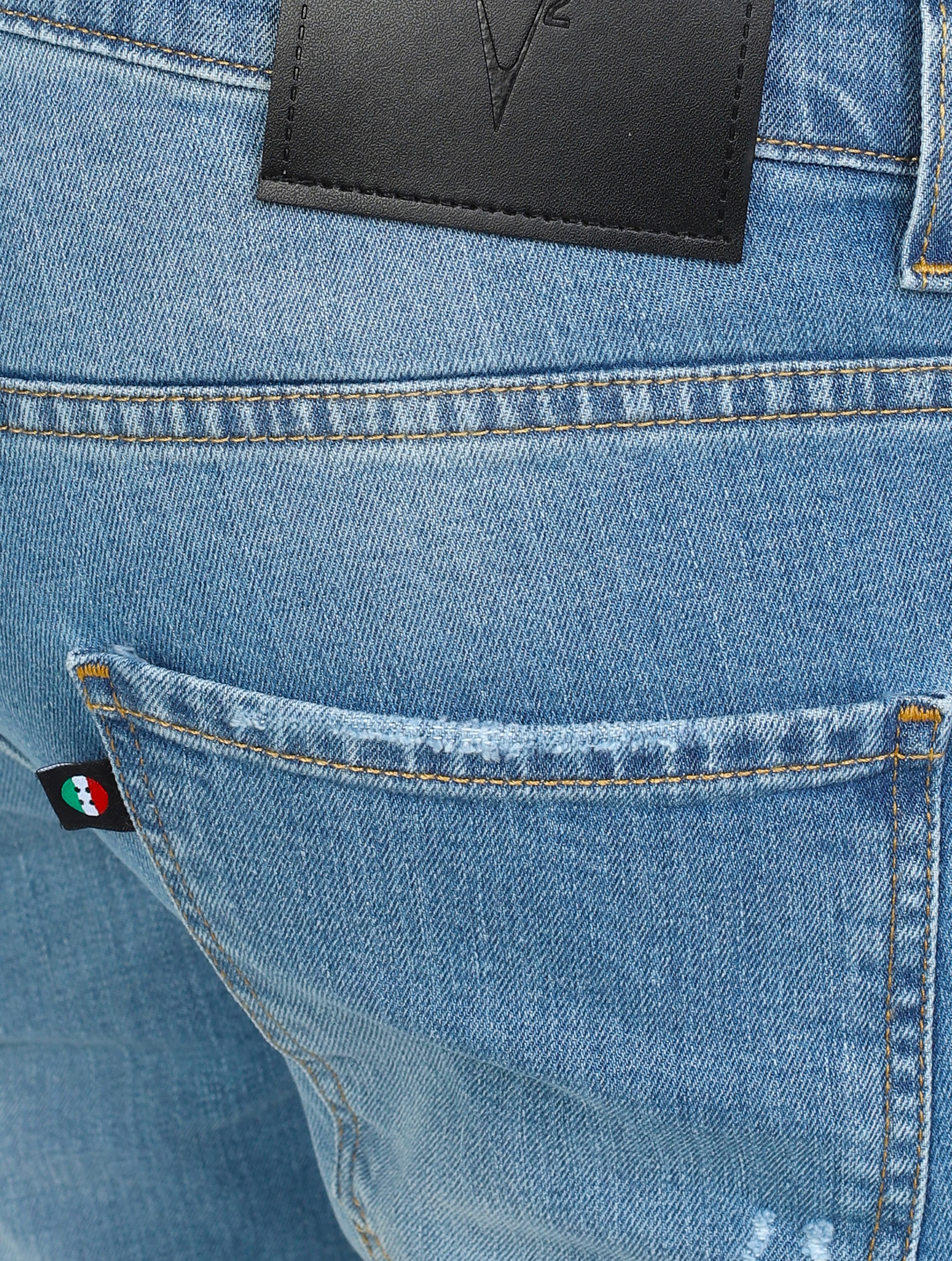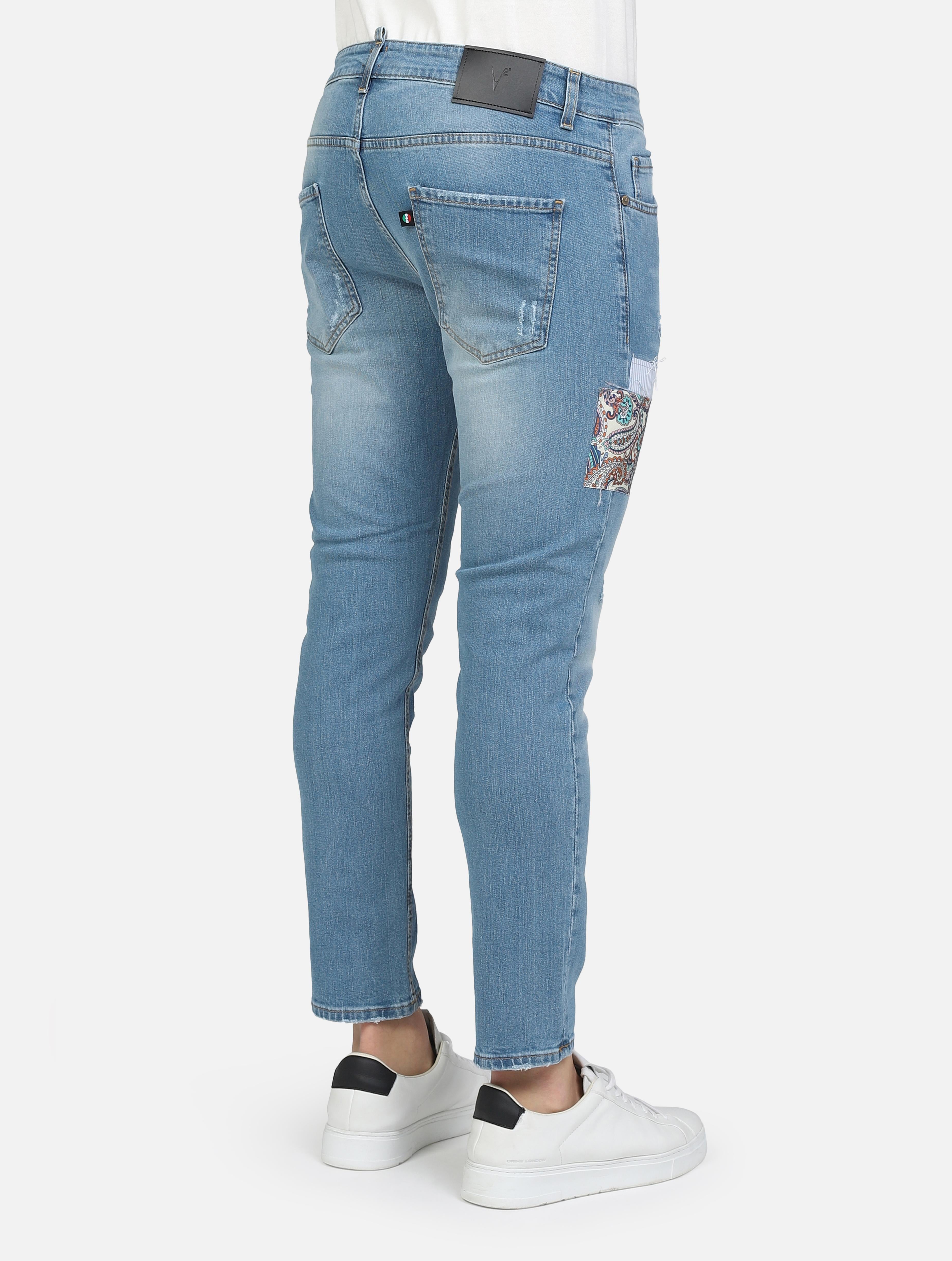 Art jtkaz: jeans tokyo con toppe ed abrasioni azzurro uomo