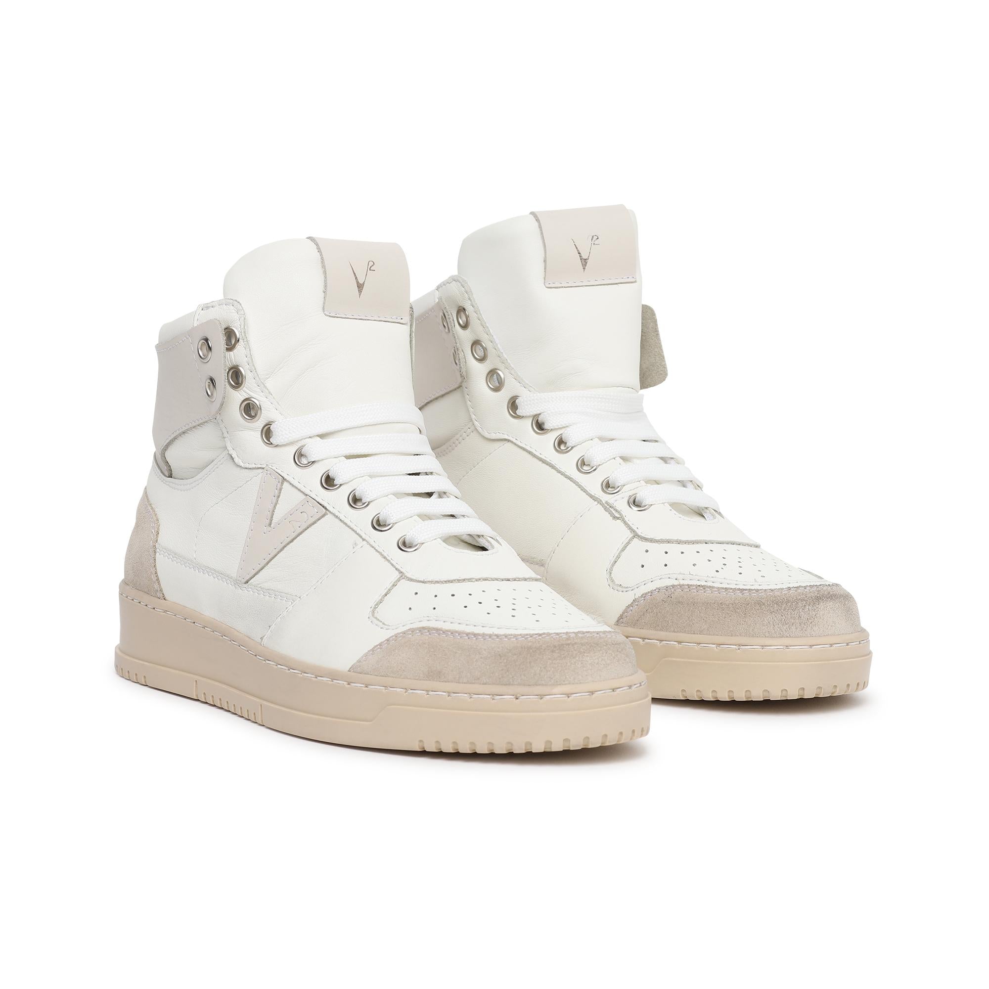 Sneakers high college in pellame nappa bianco e fondo gomma white uomo