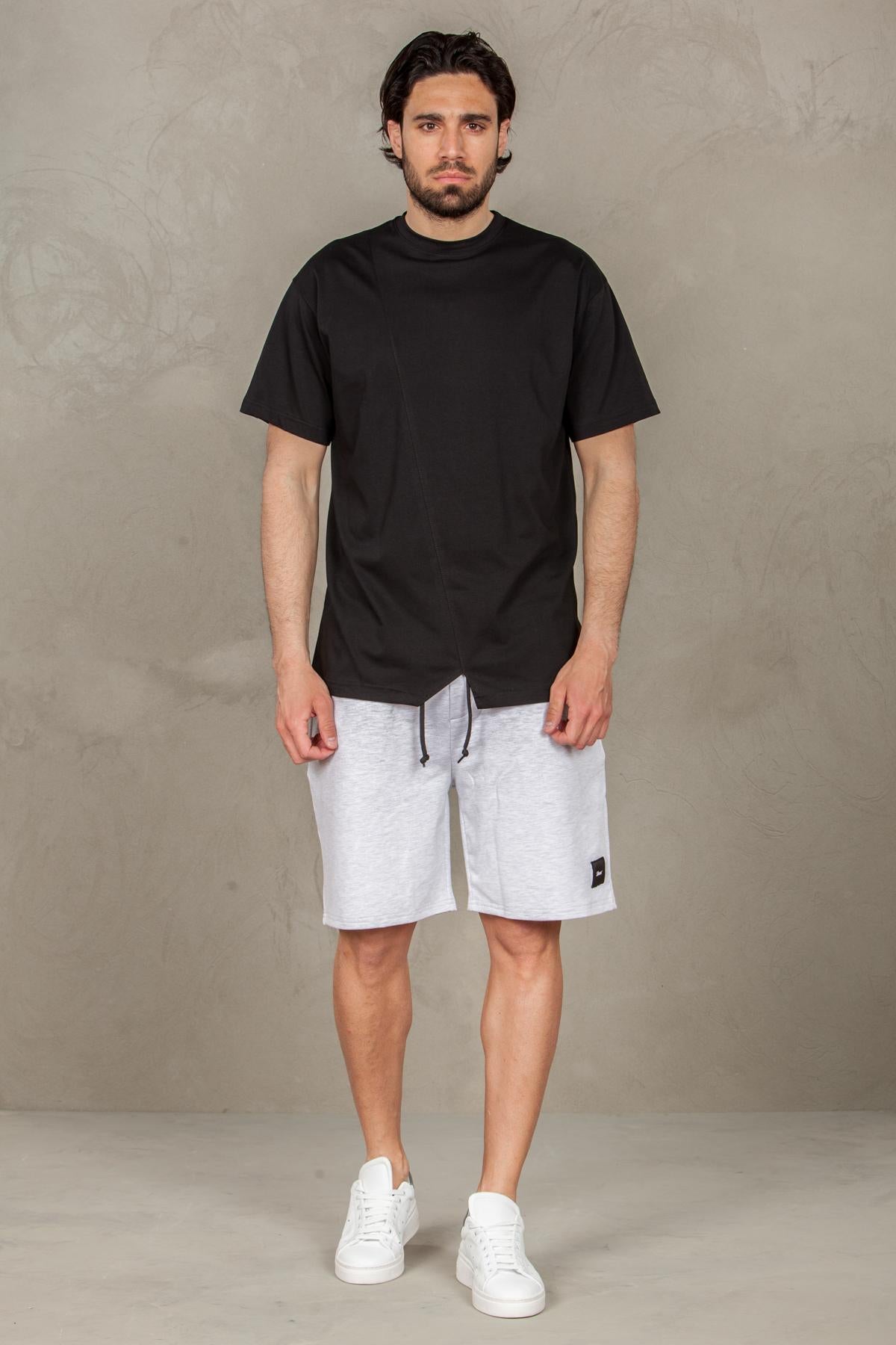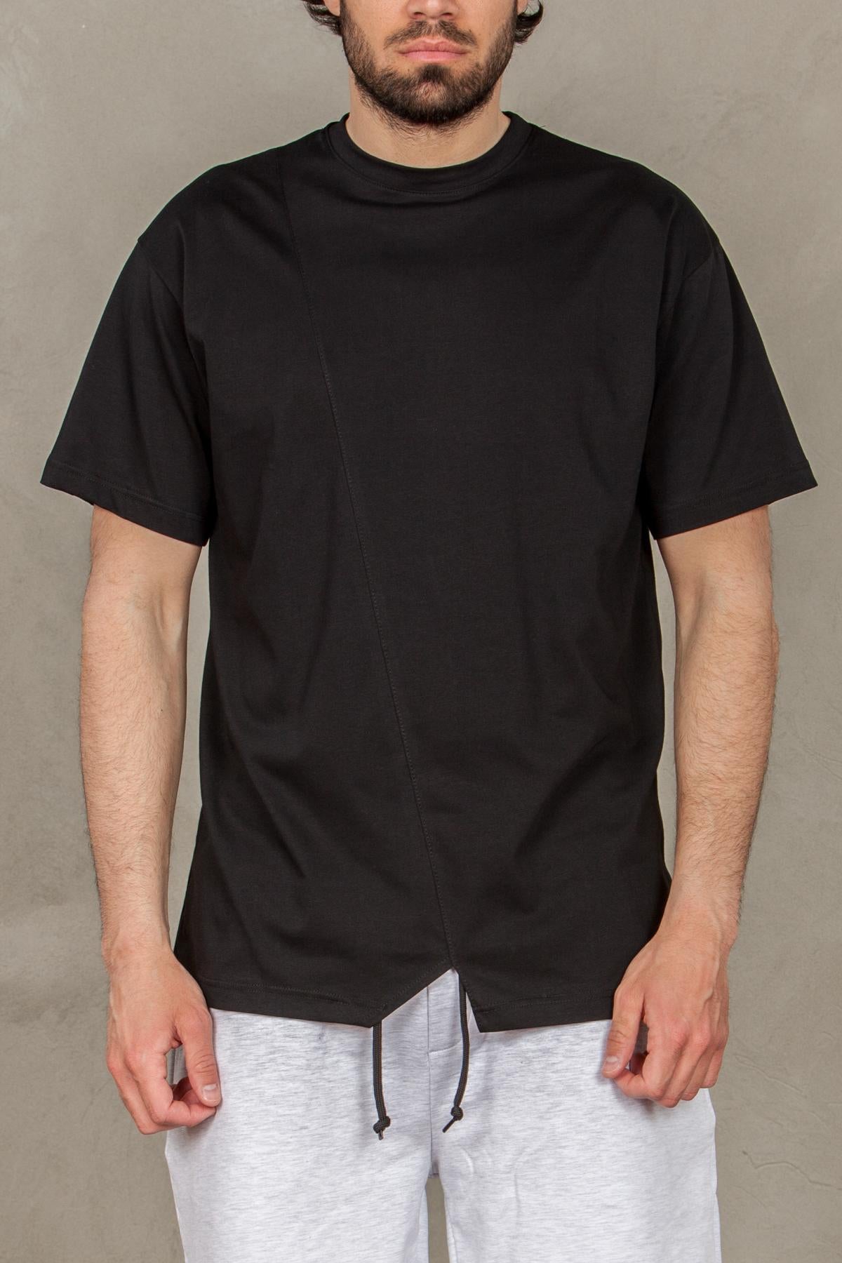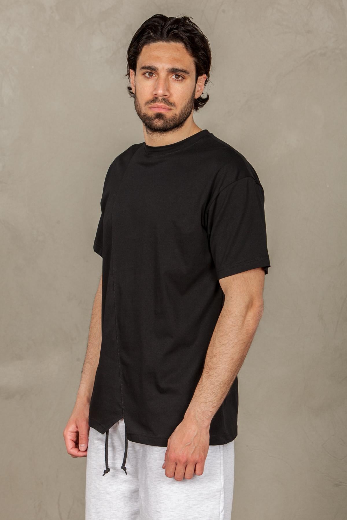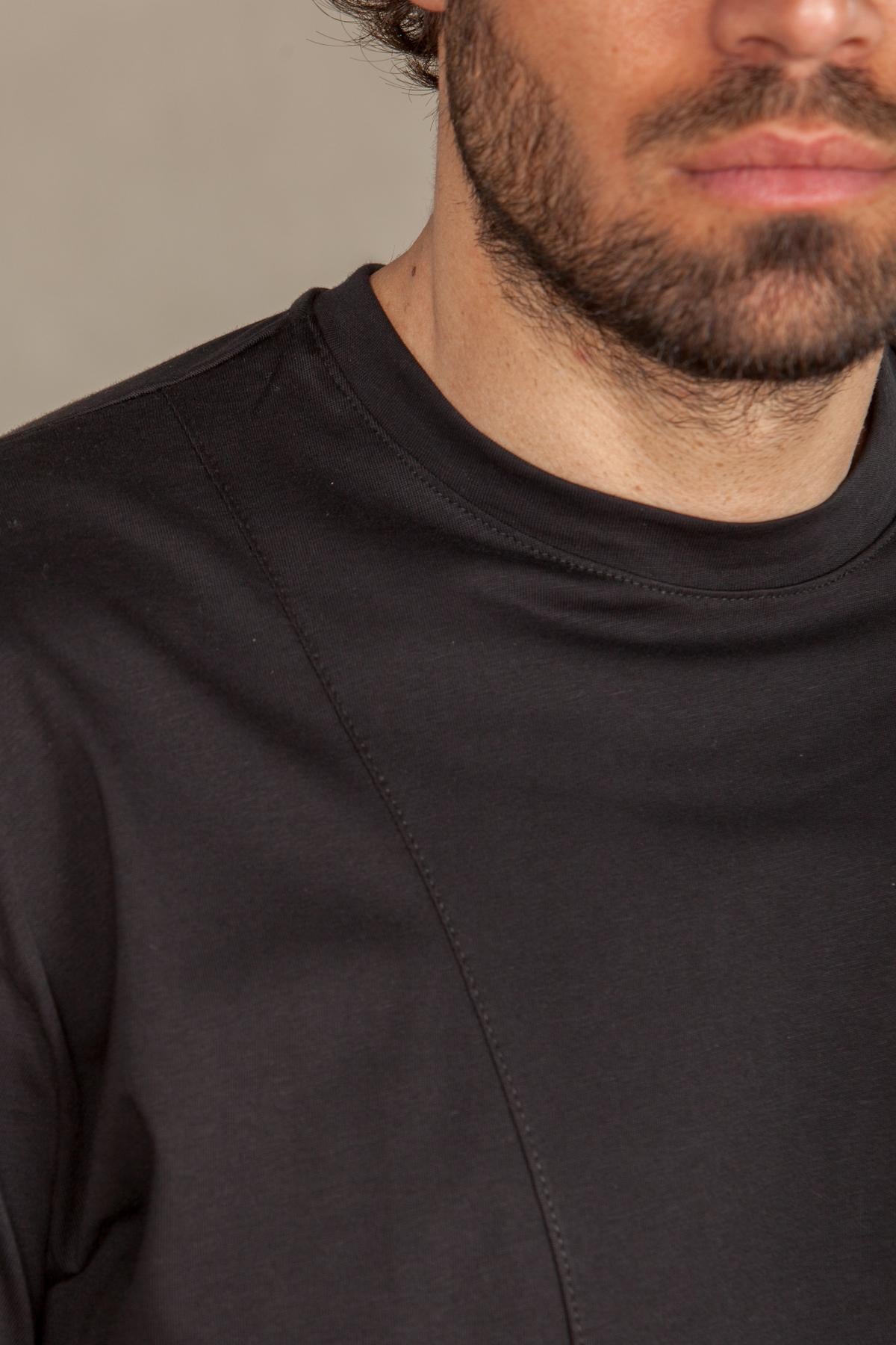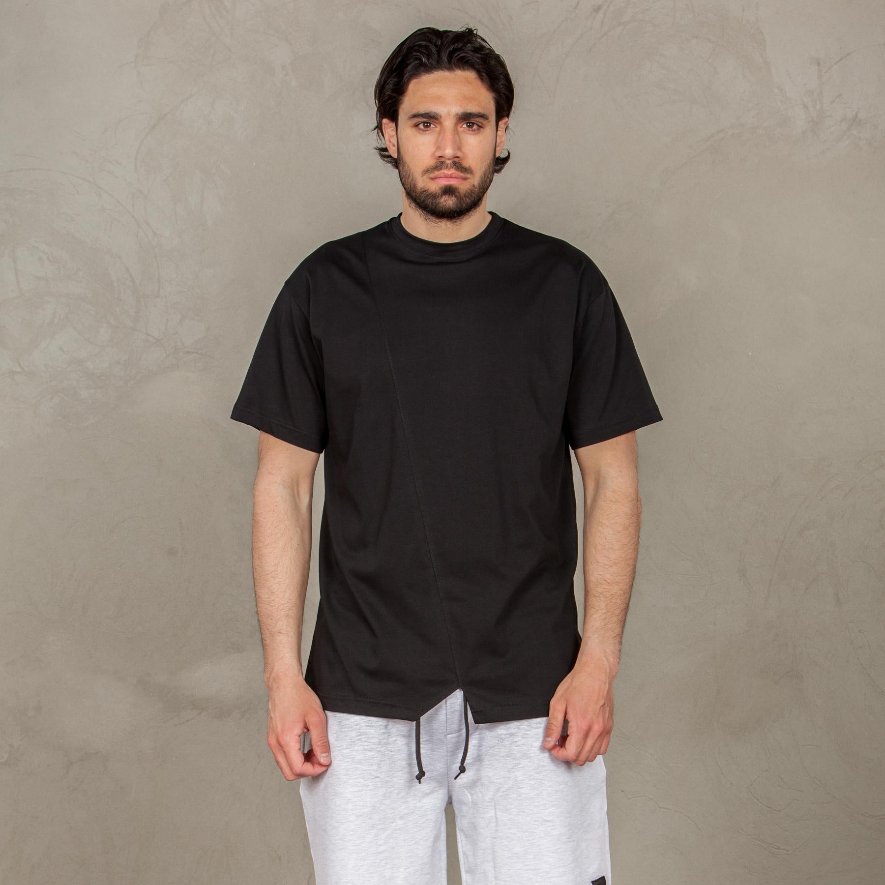 T-shirt paricollo con taglio trasversale asimmetrico - nero uomo