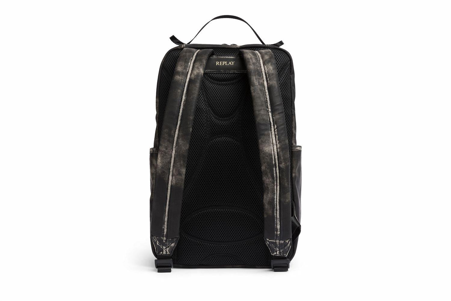 Zaino in PU spazzolato dal particolare effetto tie-dye used dotato di schienale logato in tessuto traspirante, manico superiore e spallacci regolabili. Il modello è dotato di una chiusura superiore con doppia zip e presenta uno scomparto frontale con cerniera impreziosito da una tasca con patta e fibbia metallica a scatto e dal lettering Replay in rilievo. L'accessorio è arricchito da due comode tasche laterali. Larghezza 30 cm x Altezza 47 cm x Profondità 17 cm.